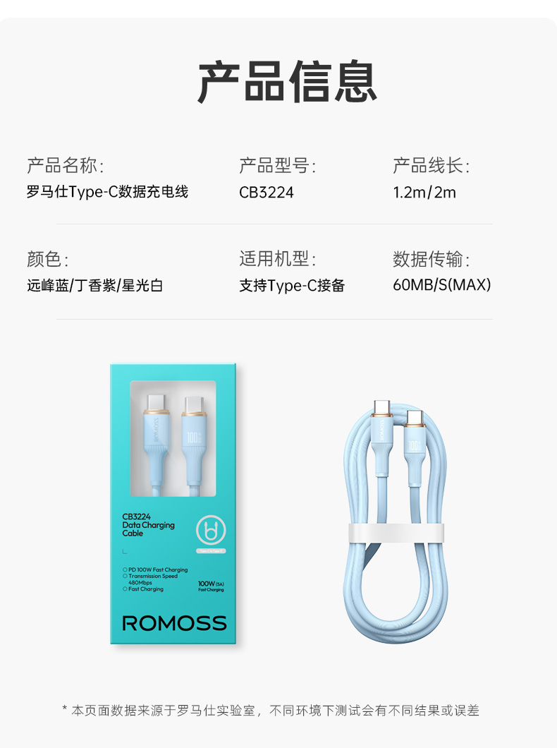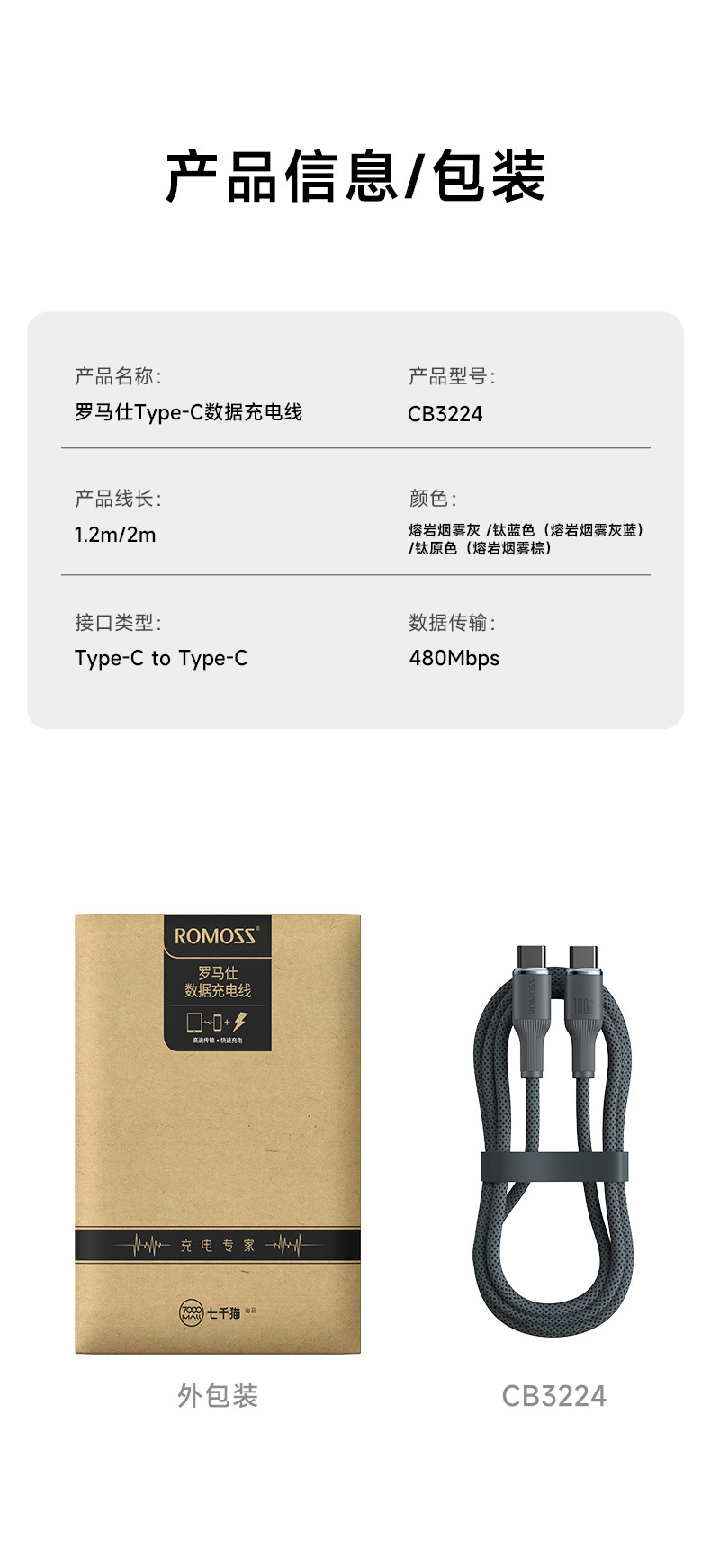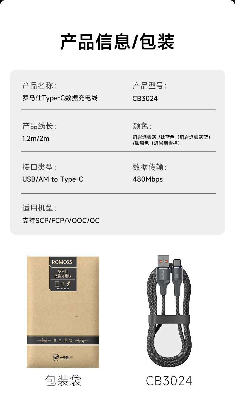 romoss 6a data cable tpyec charging cable for huawei mate60pro66w mobile phone super fast charge cable