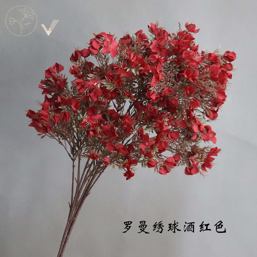仿真花酒红色牡丹玫瑰绣球萱草百合郁金香小喇叭花橡树叶人造花