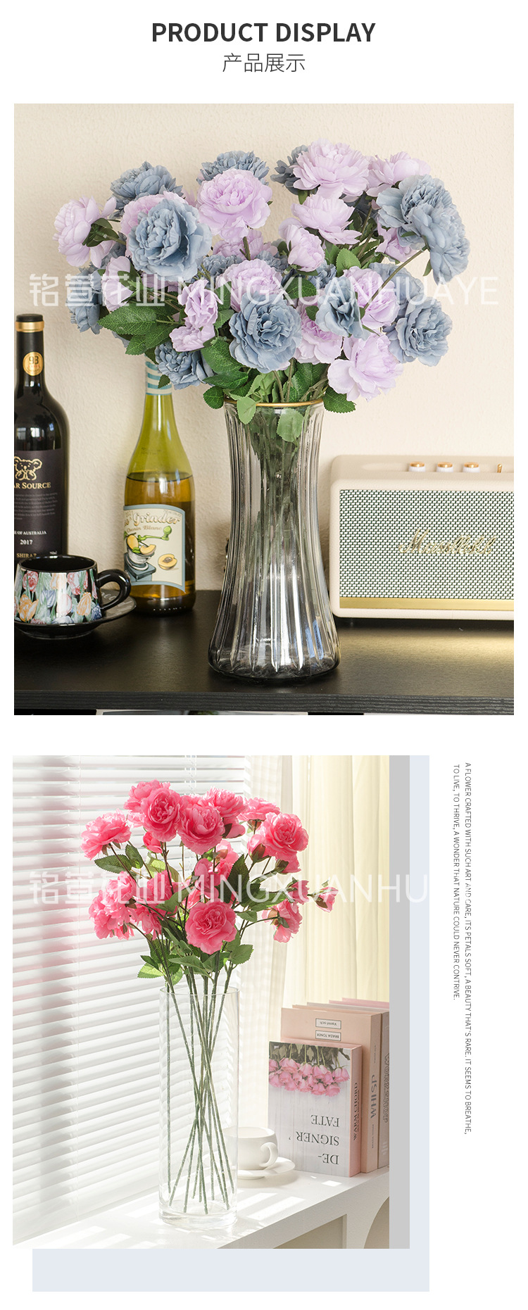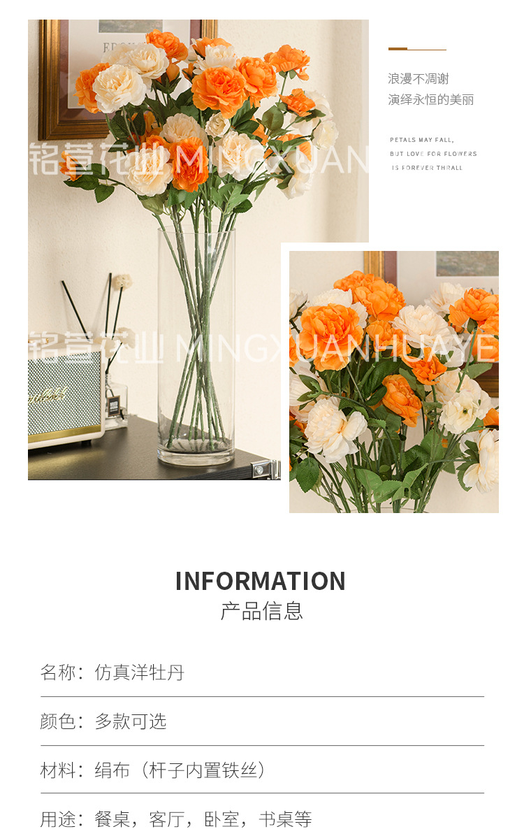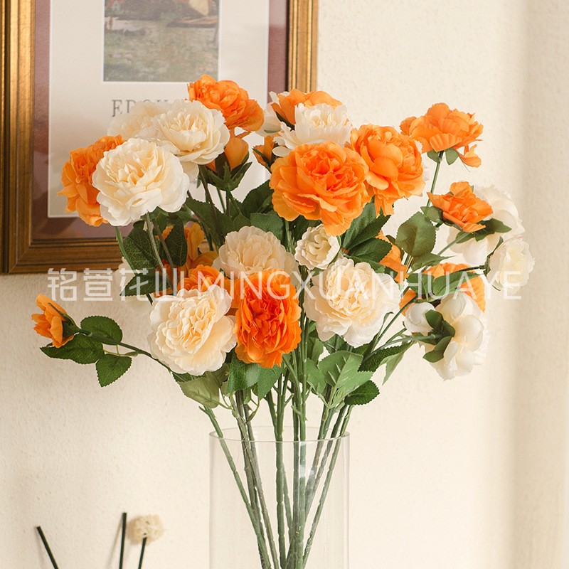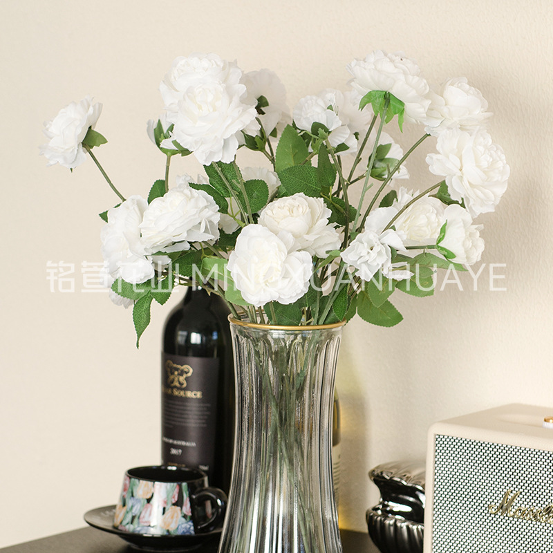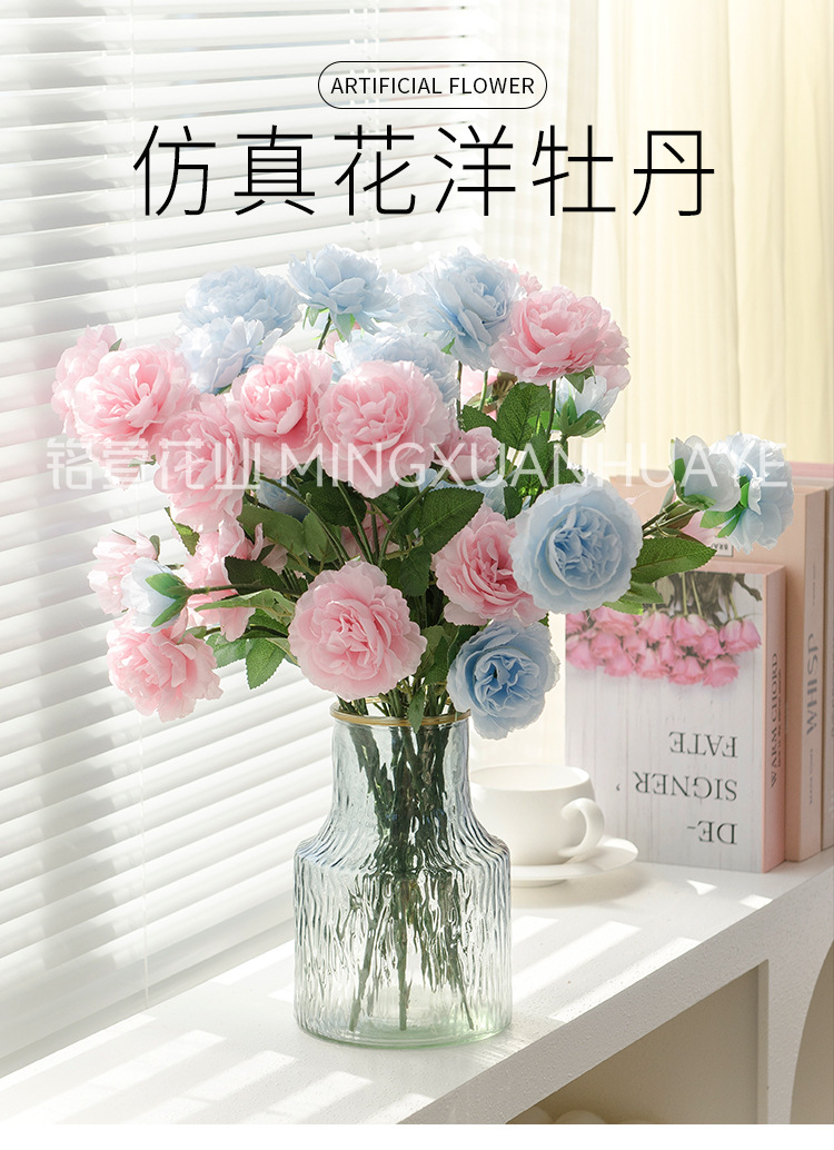 仿真花3头洋牡丹家居客厅插花人造假花婚庆礼堂装饰摄影道具批发