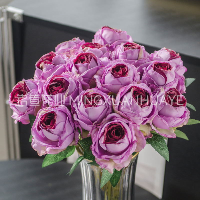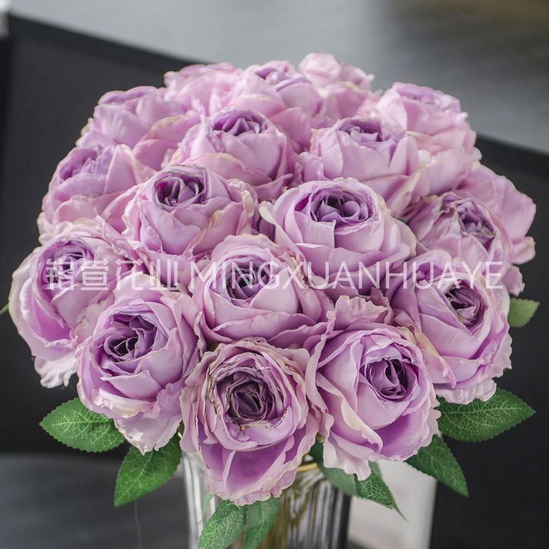 仿真花紫色绣球玫瑰人造花客厅插花摆件婚庆礼堂布置假花工厂批发