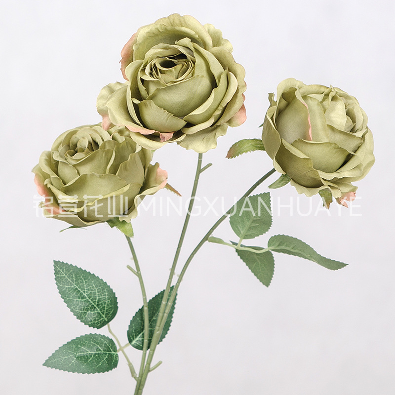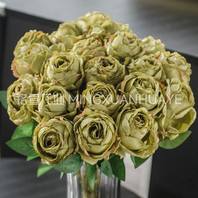 仿真花绿色焦边油画玫瑰红掌球菊满天星客厅插花摆件人造假花婚庆