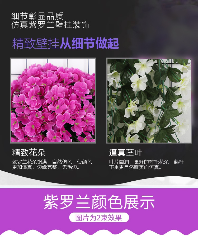 仿真紫罗兰壁挂吊兰大绣球假花塑料花绢花花藤藤条阳台婚庆装饰花