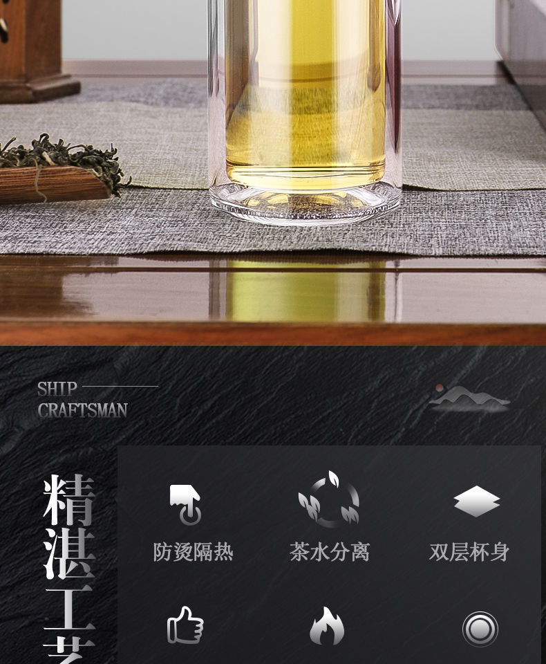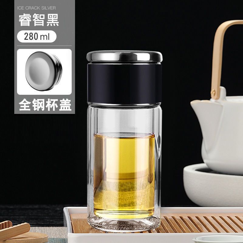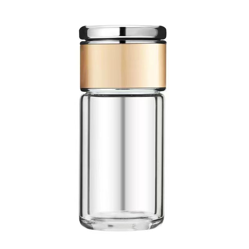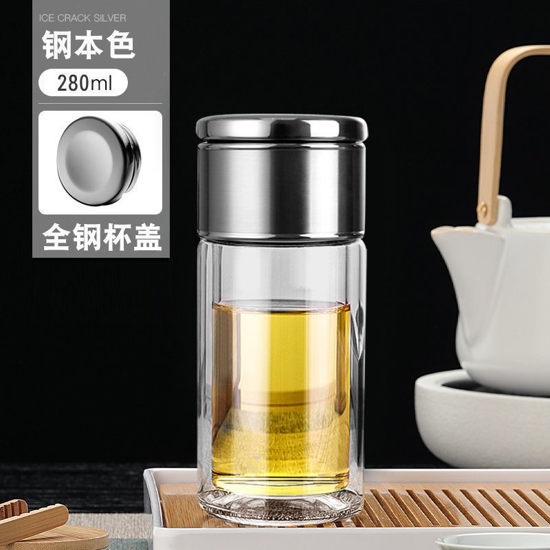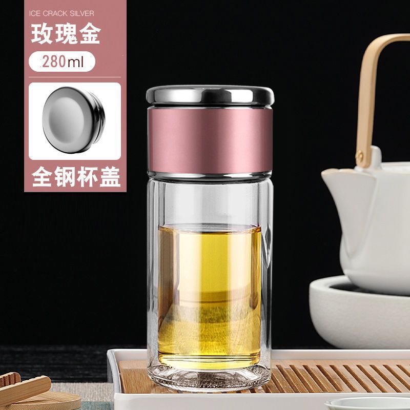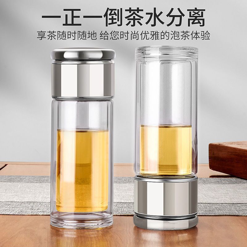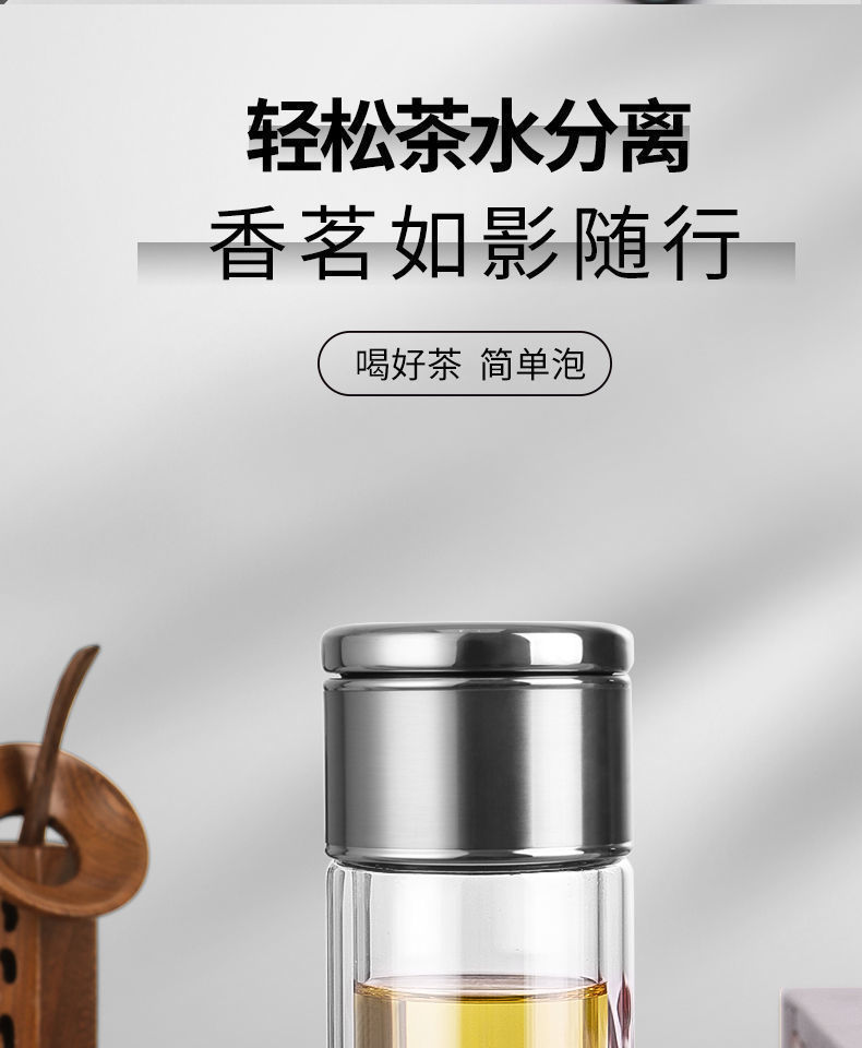 高端双层玻璃茶水分离杯隔热泡茶杯迷你男女士水杯随身简约花茶杯