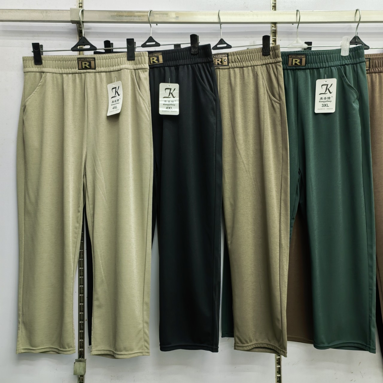 2025夏季薄款冰丝皱宽松百搭垂感哈伦裤女中老年八分款妈妈休闲裤