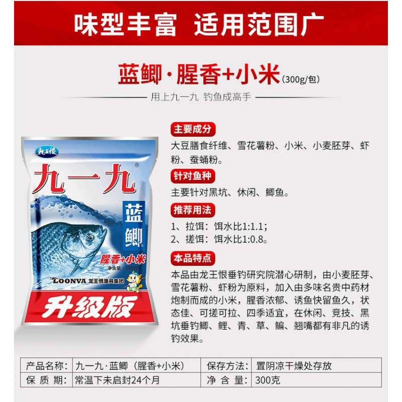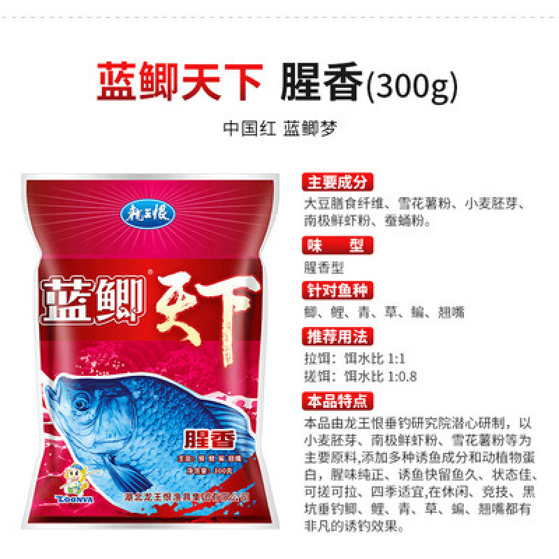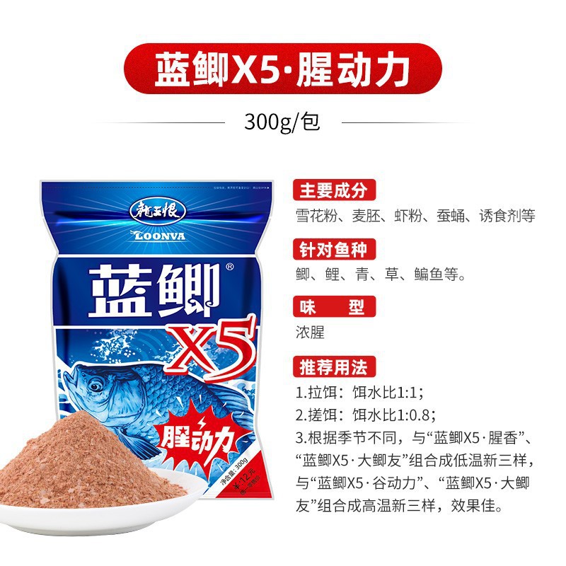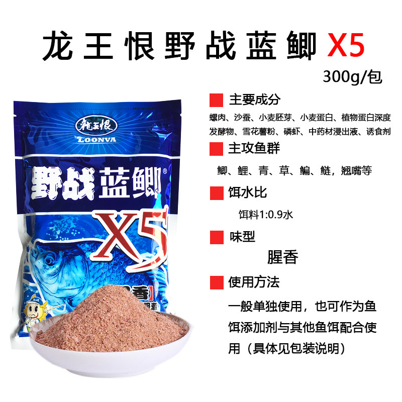 龙王恨鱼饵 野战蓝鲫300g金版野战浓腥饵料升级版蓝鲫X5白粉蓝3