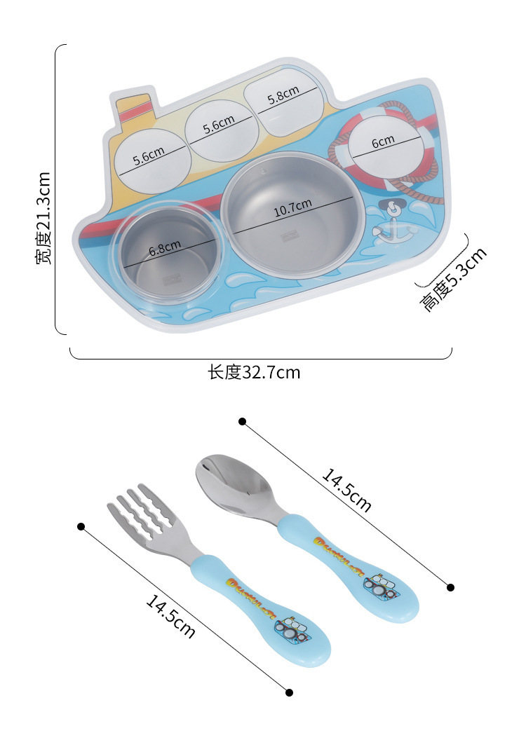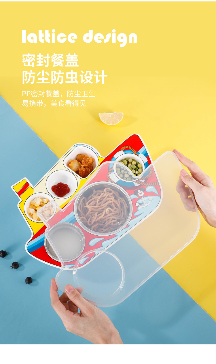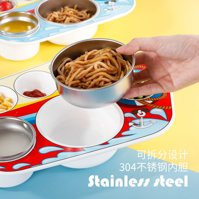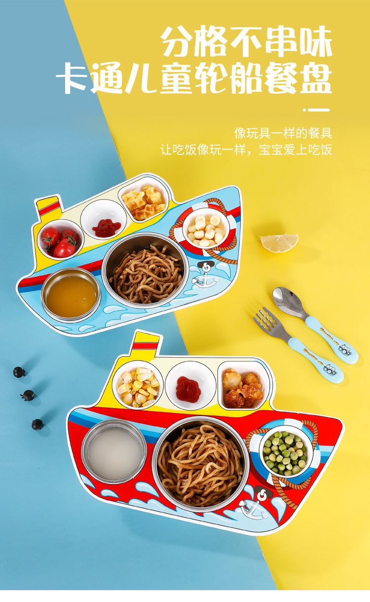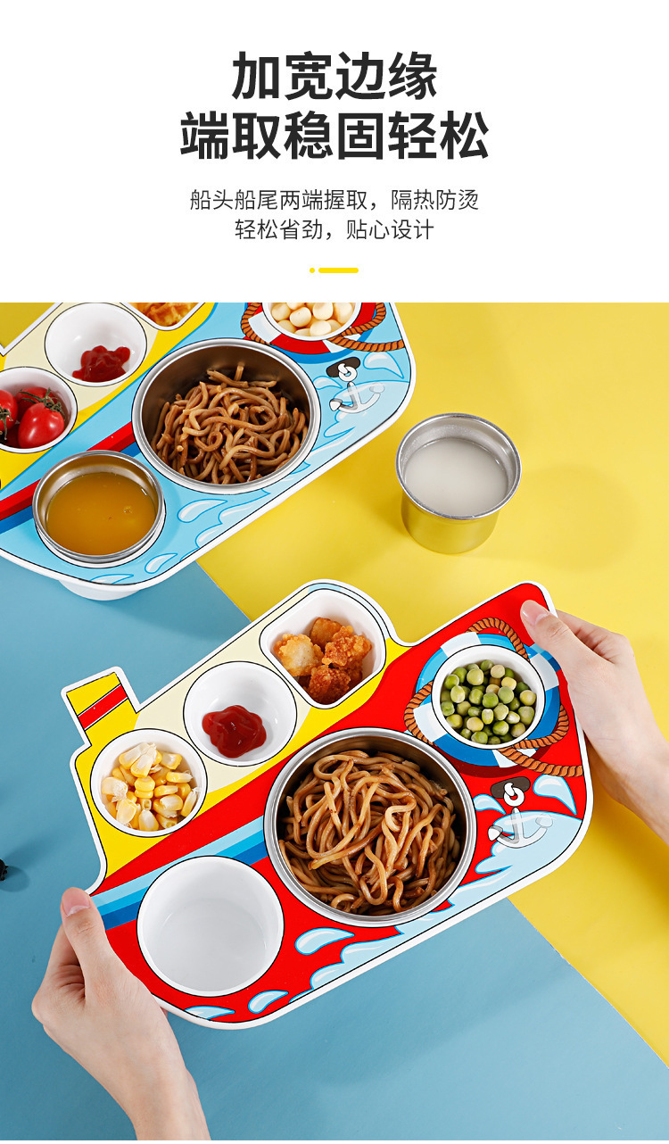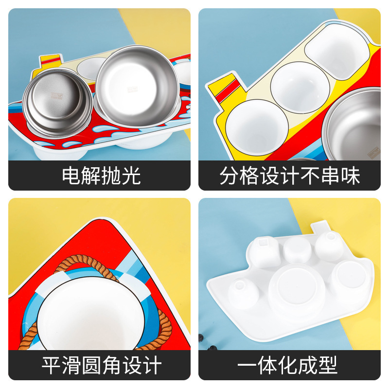 304不锈钢儿童轮船餐盘餐盒餐具抗摔分格带盖可拆洗研磨辅食用
