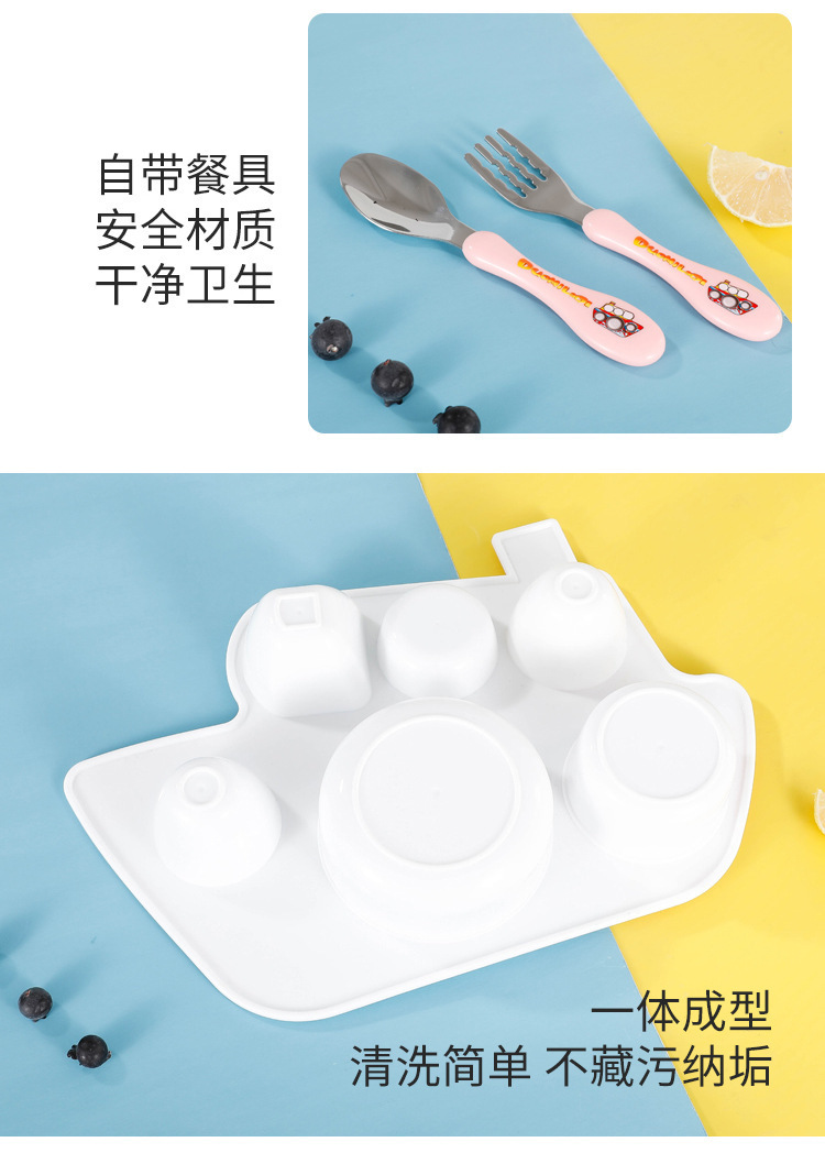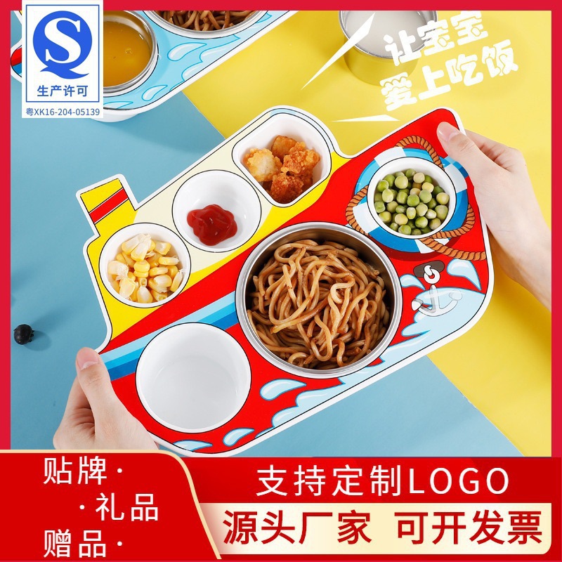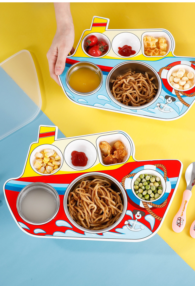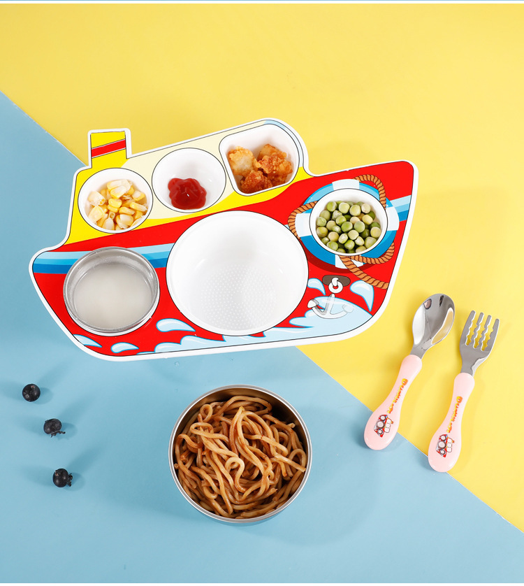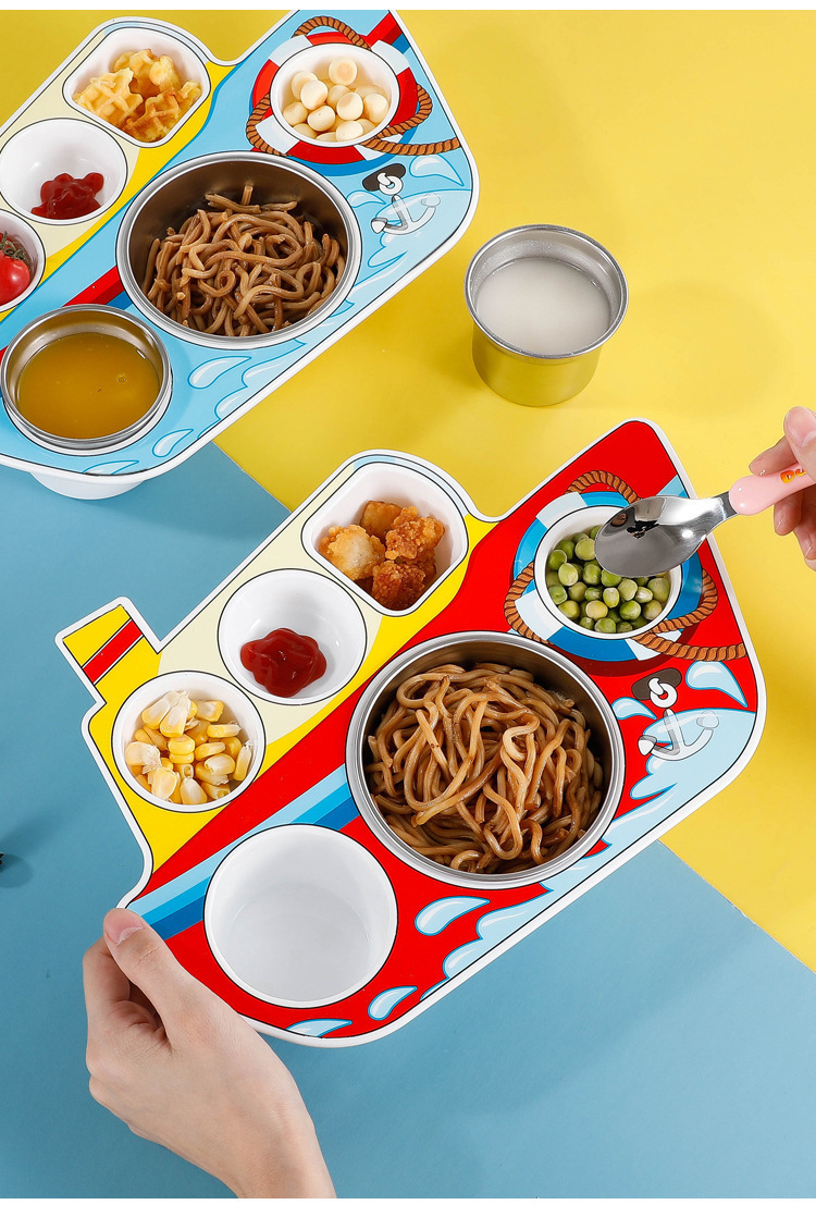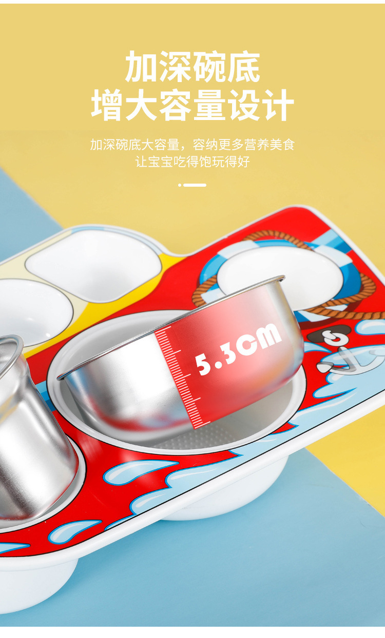 304不锈钢儿童轮船餐盘餐盒餐具抗摔分格带盖可拆洗研磨辅食用