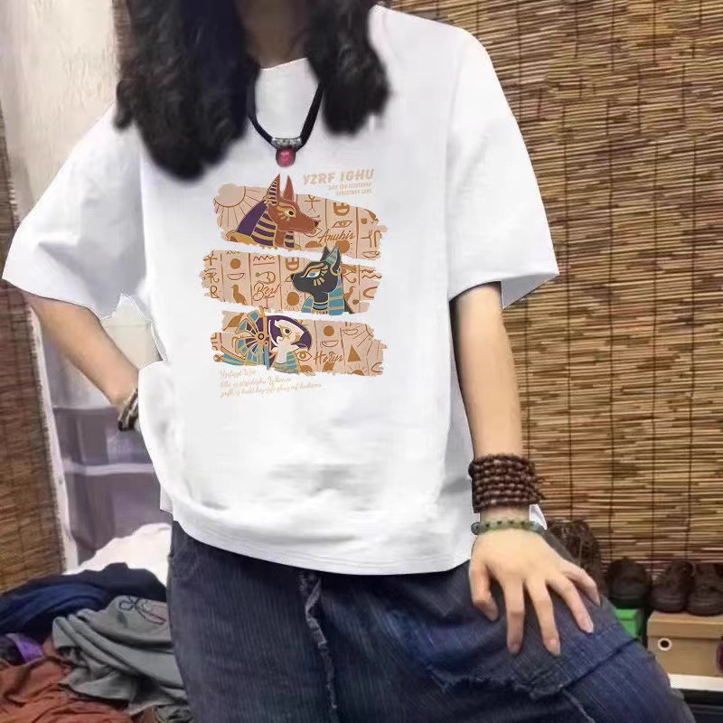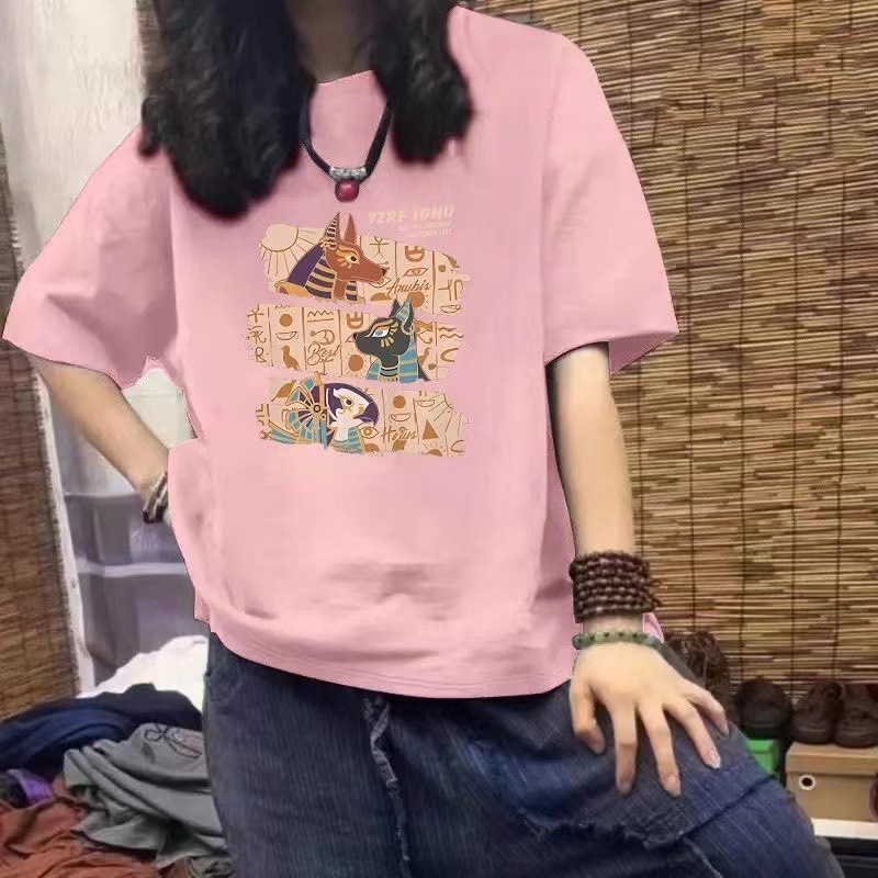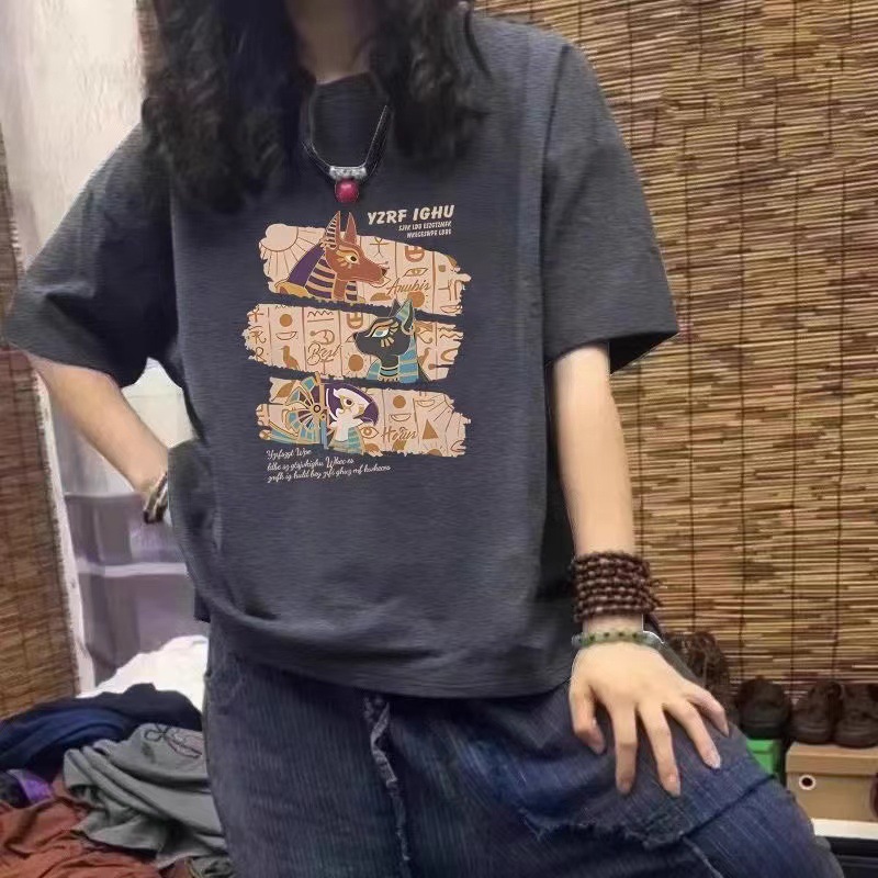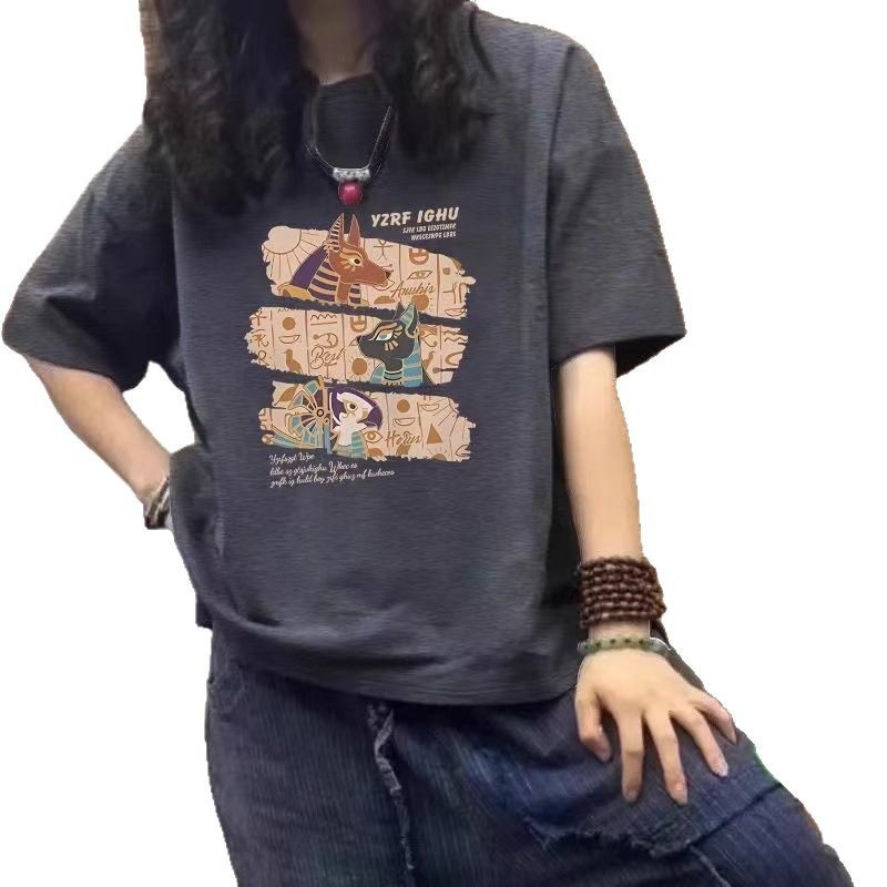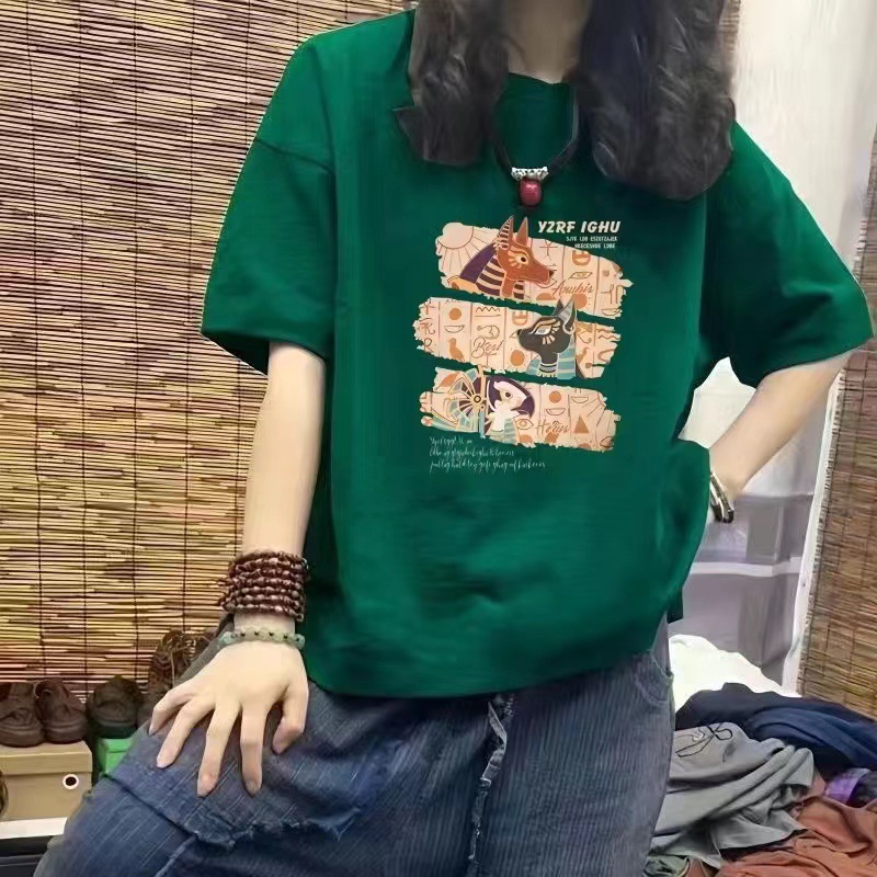 2025年新款纯棉短袖t恤女夏季落肩潮牌大码女装宽松休闲半袖上衣