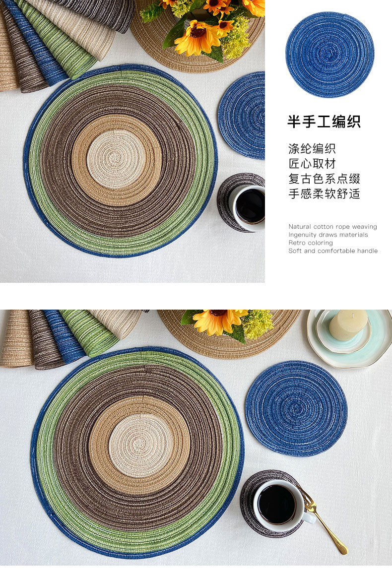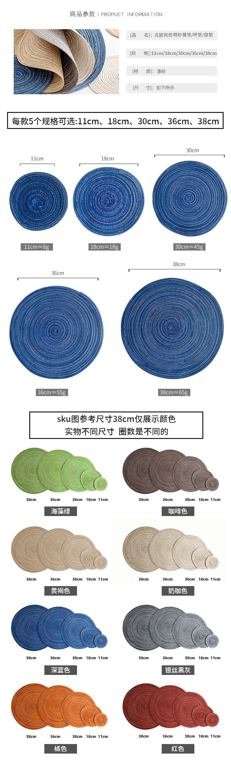北欧风仿棉纱餐垫圆形苎麻编织杯垫隔热盘垫装饰道具垫家用防烫垫