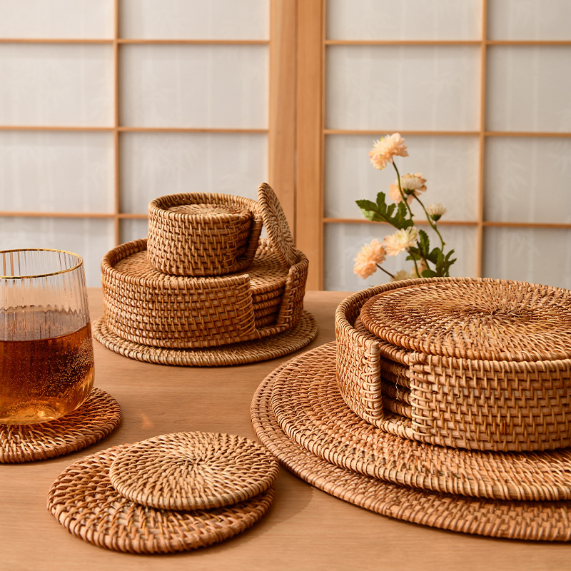 藤编杯垫手工编织砂锅隔热杯茶具垫茶杯垫餐桌垫碗垫一件代发