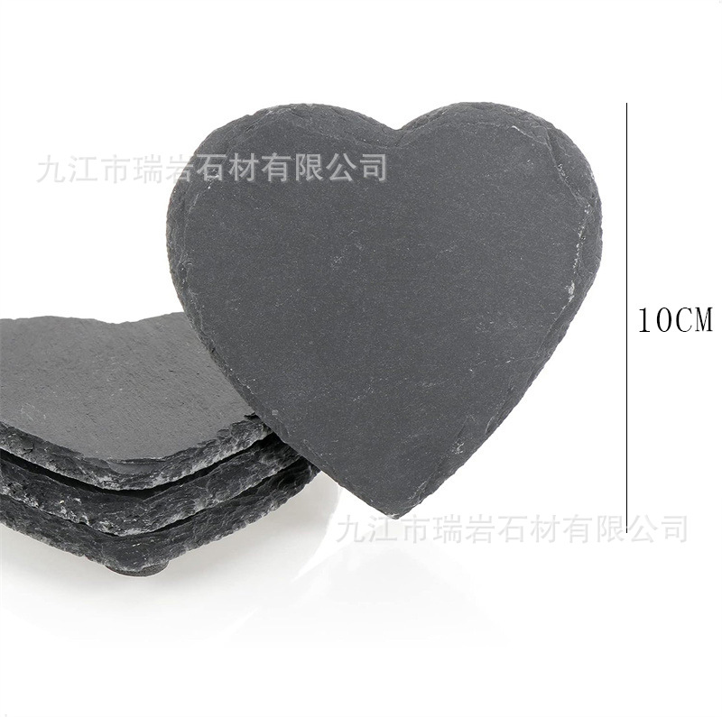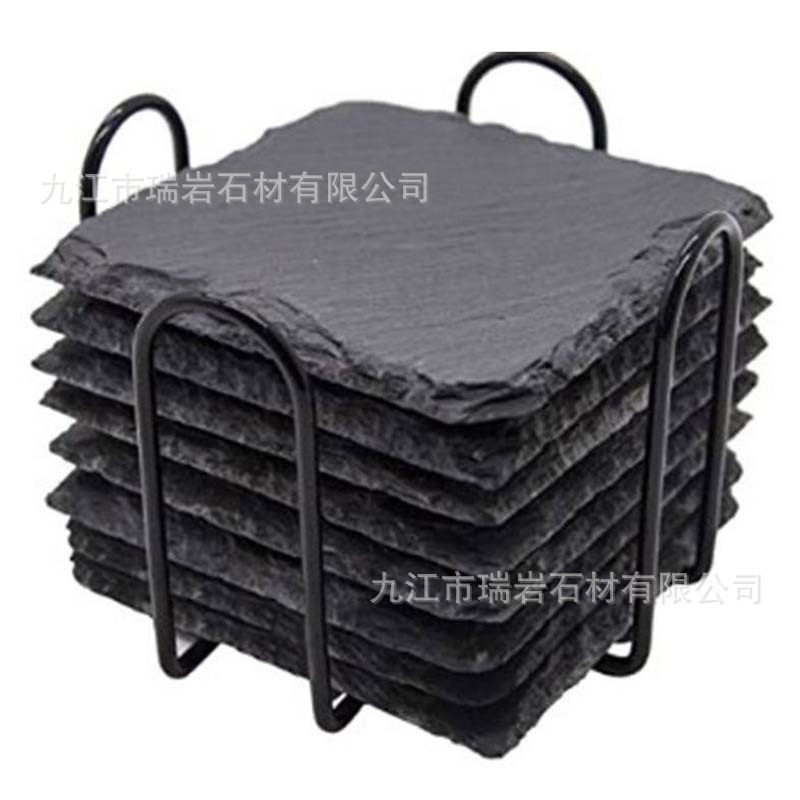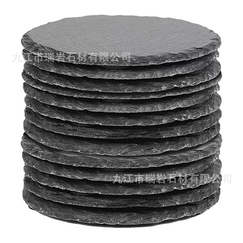 批发黑色板岩杯垫酒吧威士忌天然石板杯垫隔热石头杯垫茶杯垫跨境
