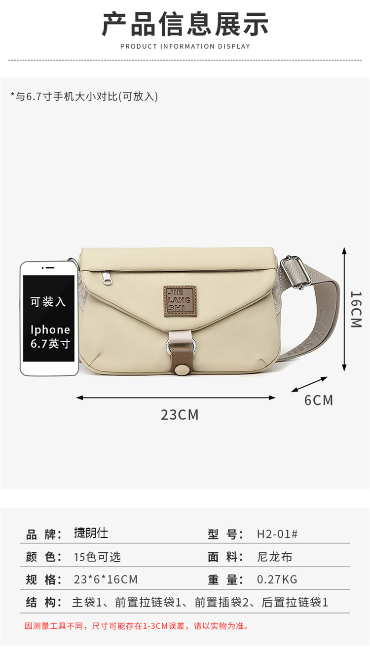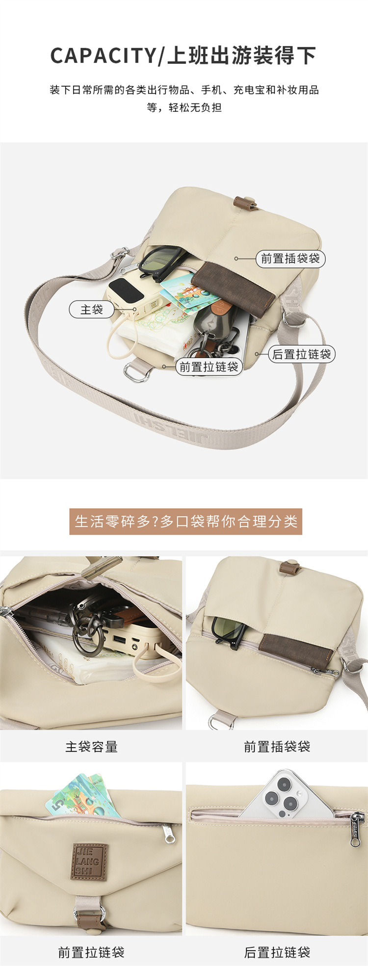 新款尼龙布休闲时尚单肩包轻便斜挎包简约时尚逛街多功能胸包女