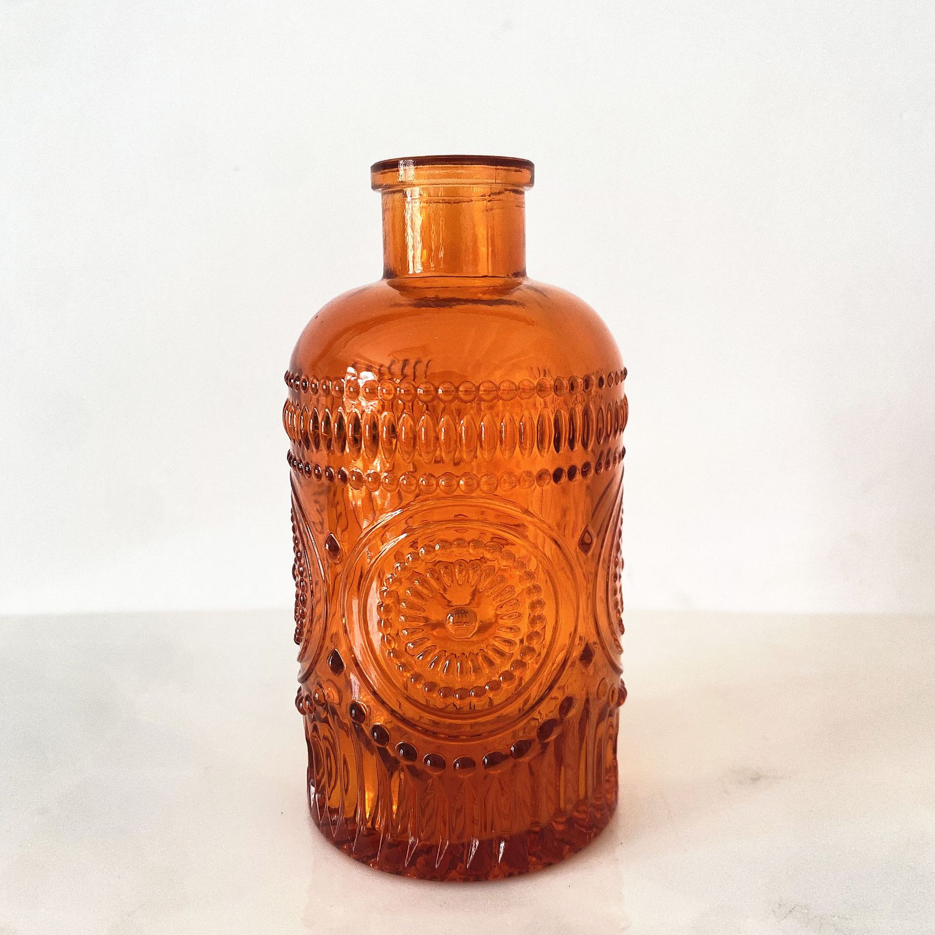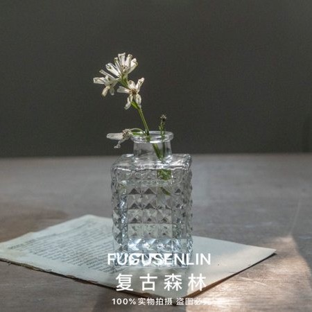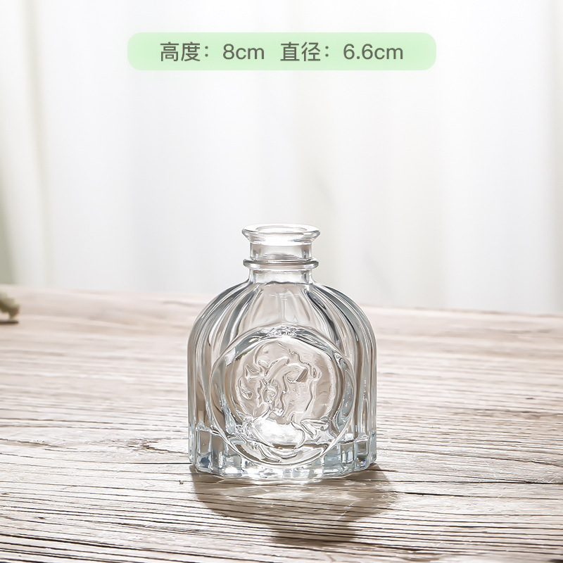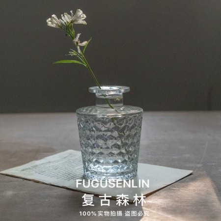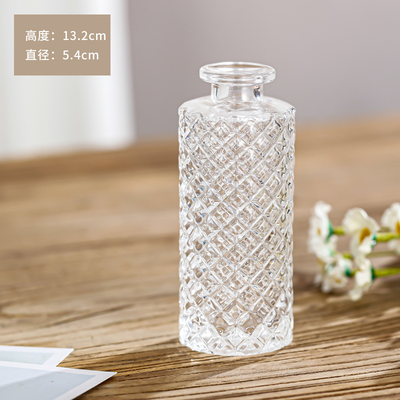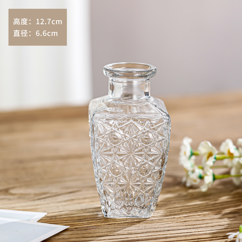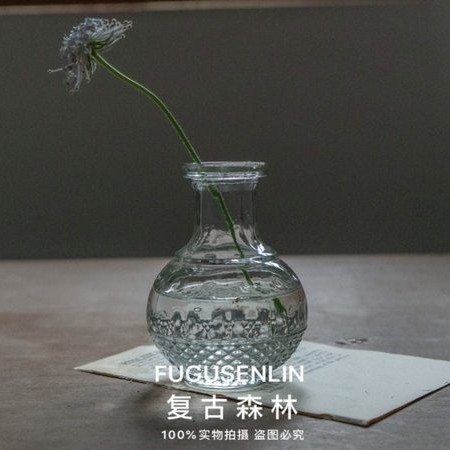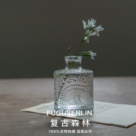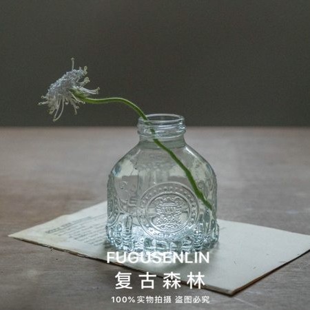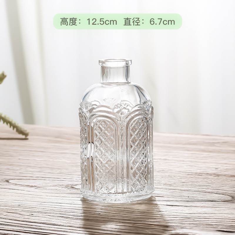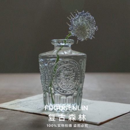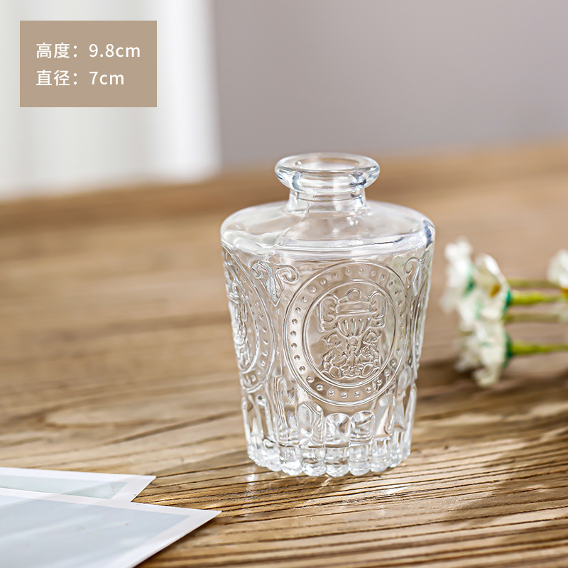 法式复古玻璃小花瓶浮雕欧式小口径迷你花瓶干鲜花插花花器水培植
