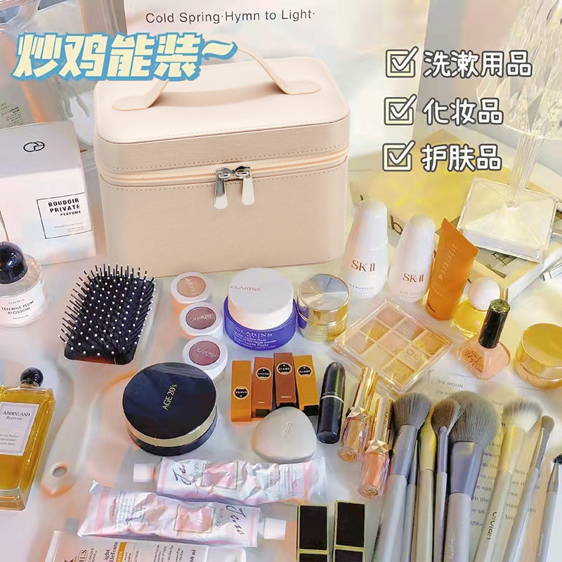 2024新款ins风化妆包便携旅行手提洗漱跟妆化妆箱简约化妆收纳包