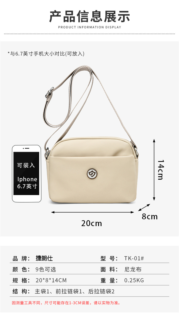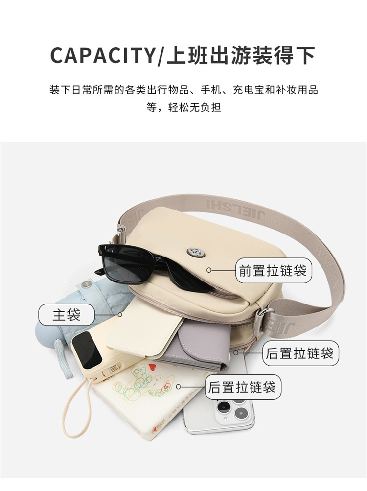 斜挎包新款单肩包纯色百搭尼龙布包轻便多层大容量女士手机包