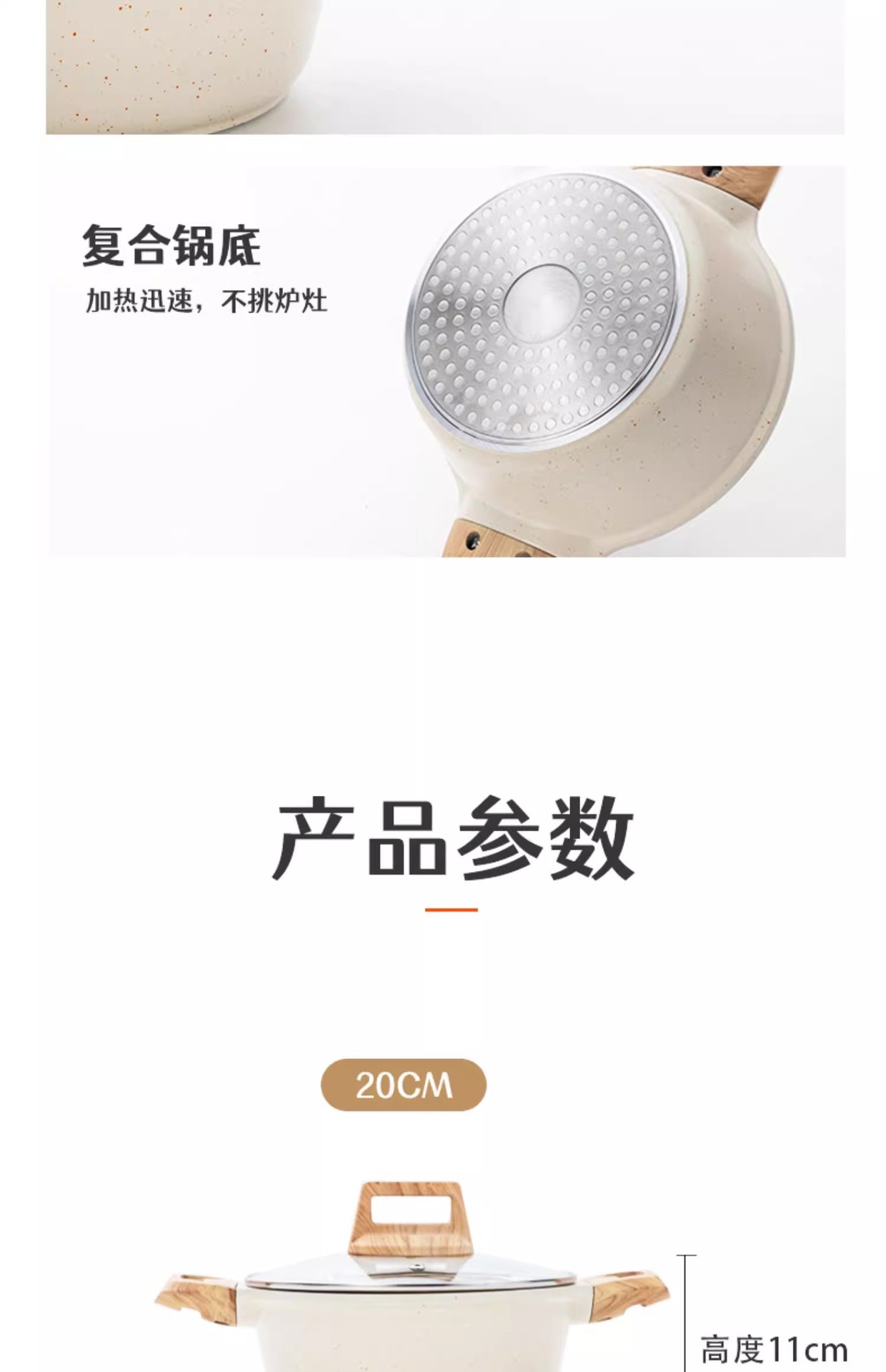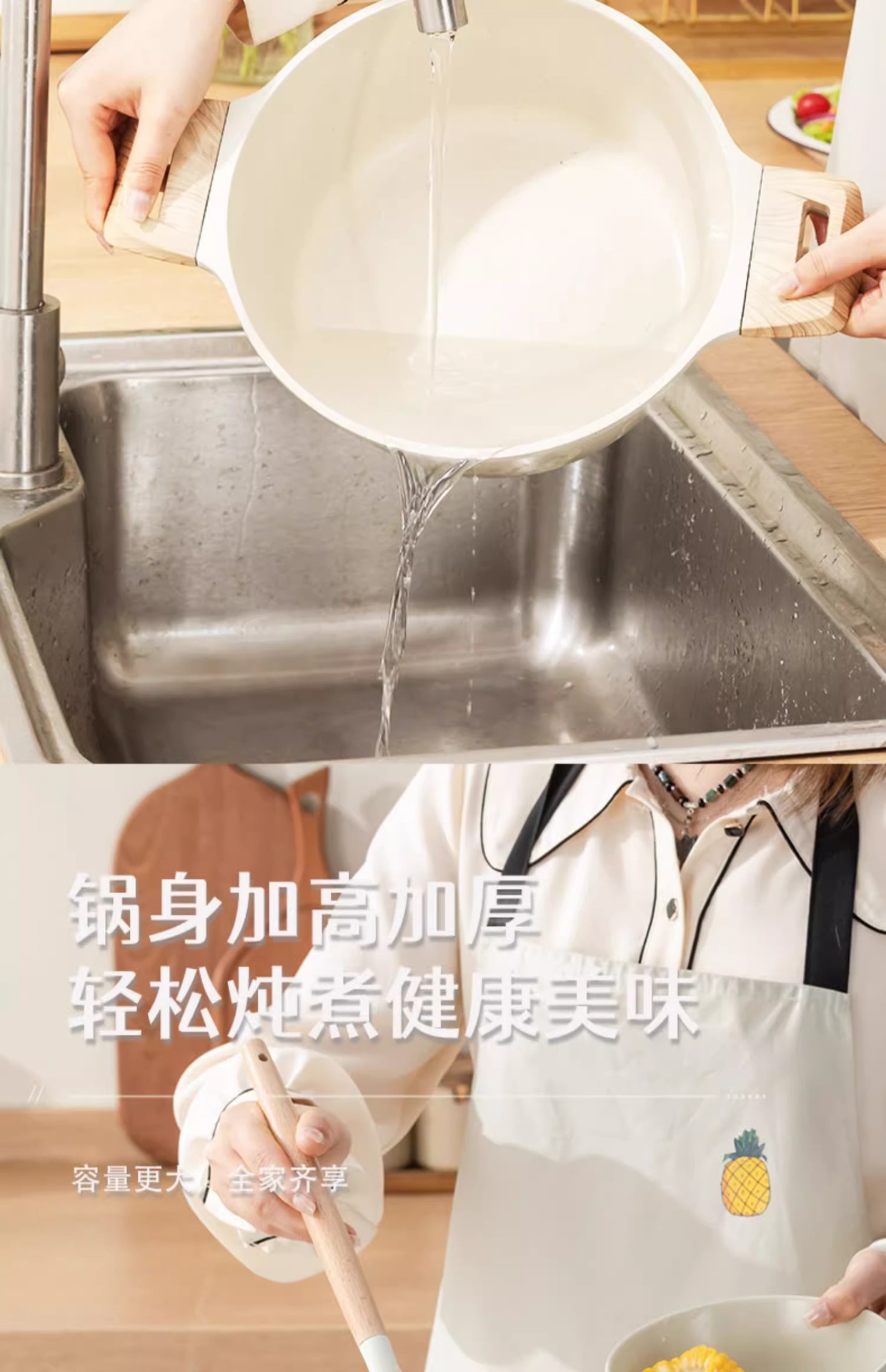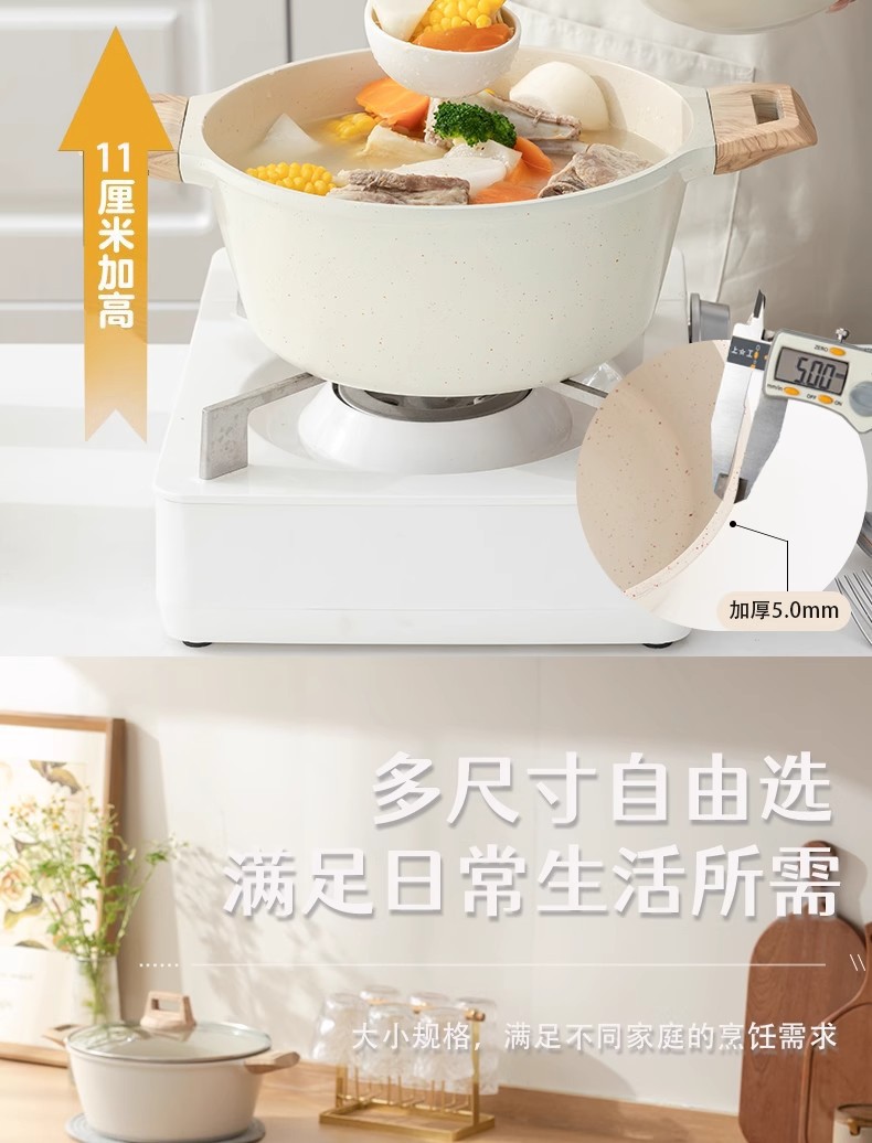 铝压铸一体麦饭石汤锅家用复底汤锅蒸煮锅炖锅煮粥煮面锅灶电通用