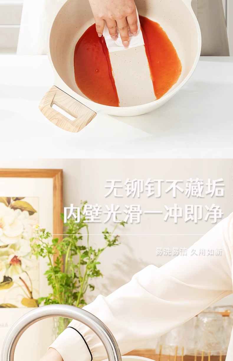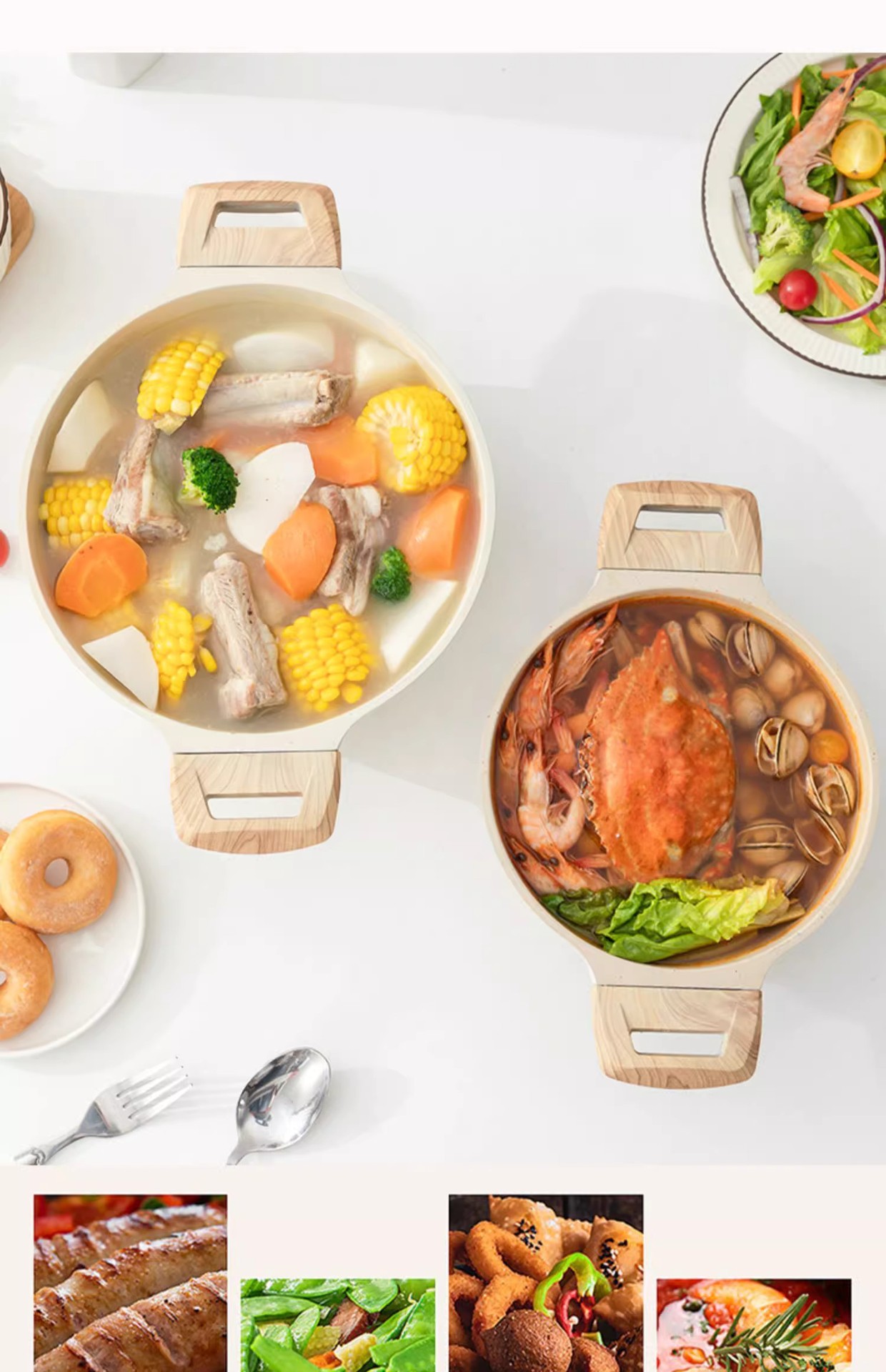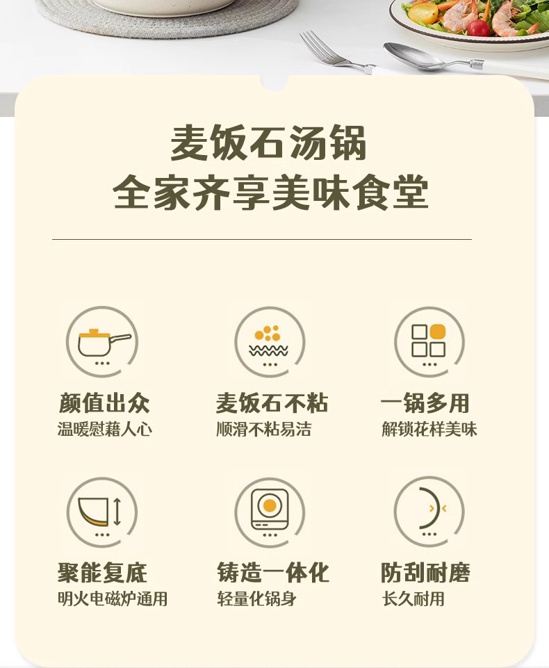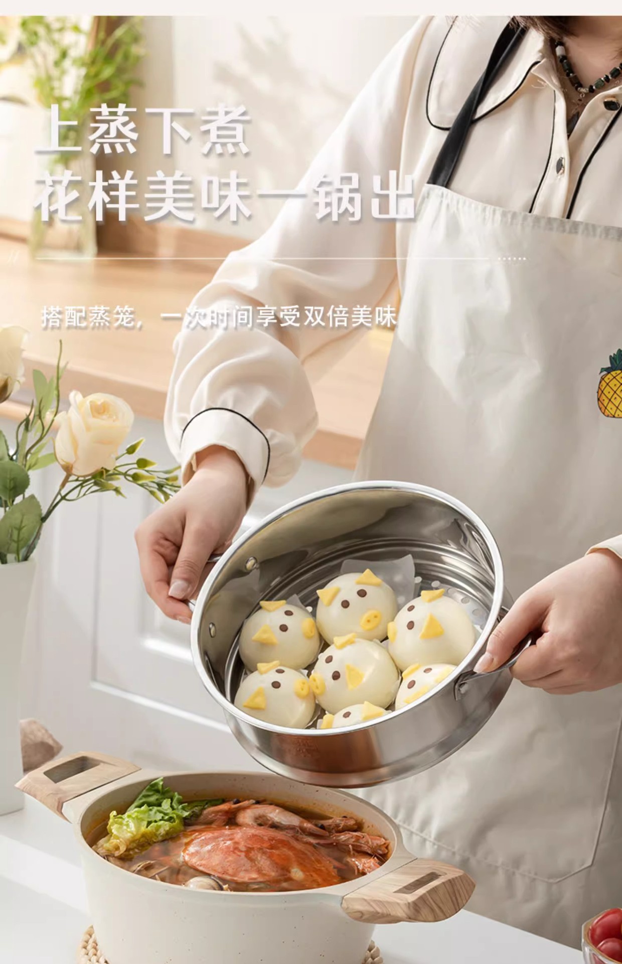 铝压铸一体麦饭石汤锅家用复底汤锅蒸煮锅炖锅煮粥煮面锅灶电通用