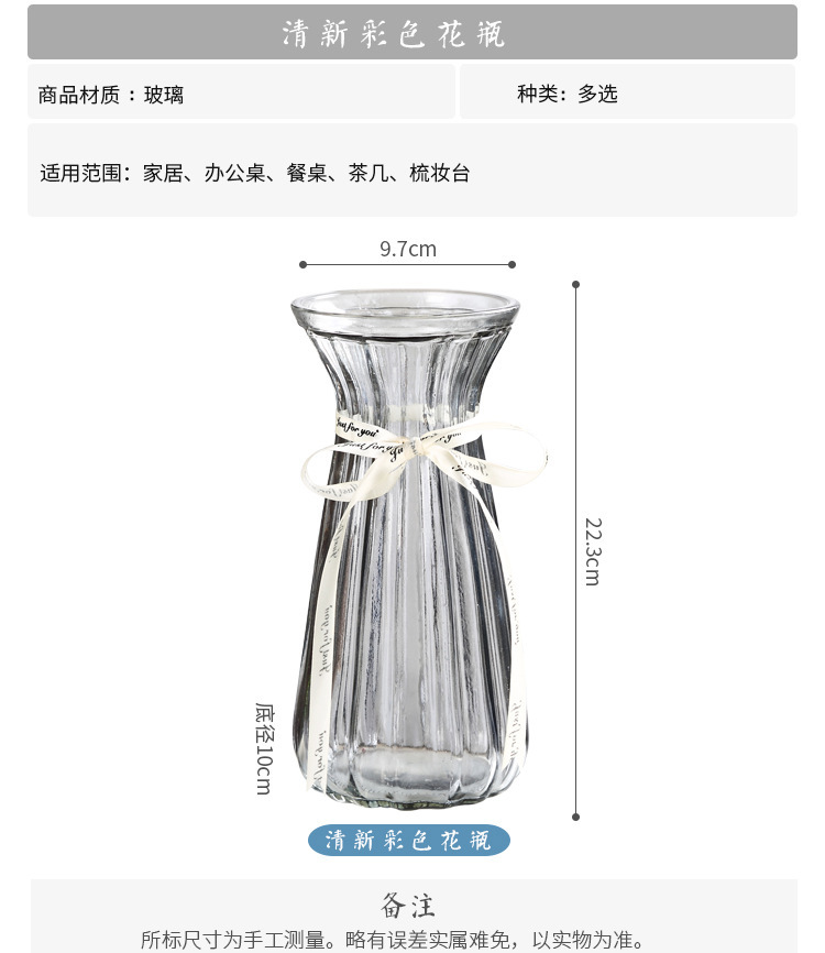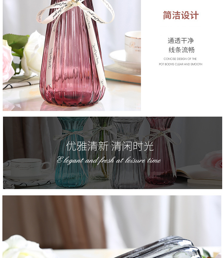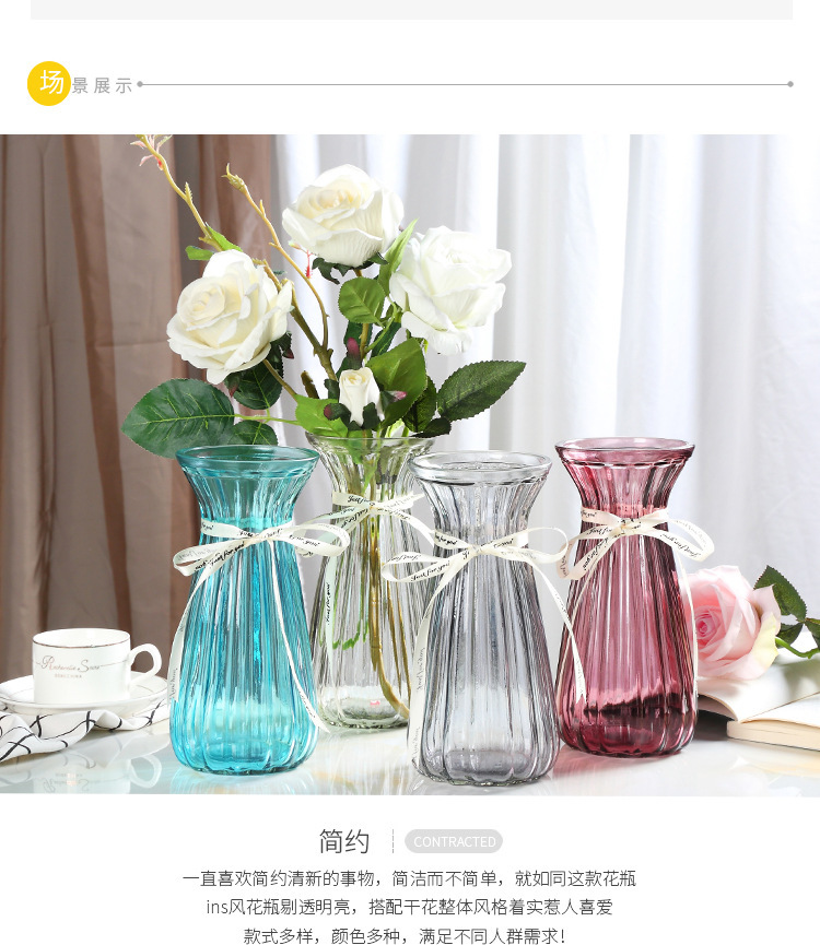 包邮欧式创意水培透明彩色束腰玻璃花瓶百合玫瑰鲜花干花ins摆件