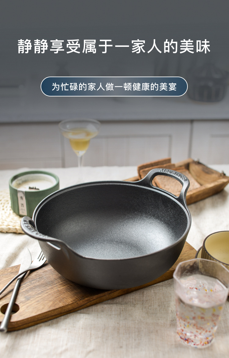 铸铁元宝锅加厚双耳炖锅汤锅家用小炒锅油炸锅无涂层不粘平底锅