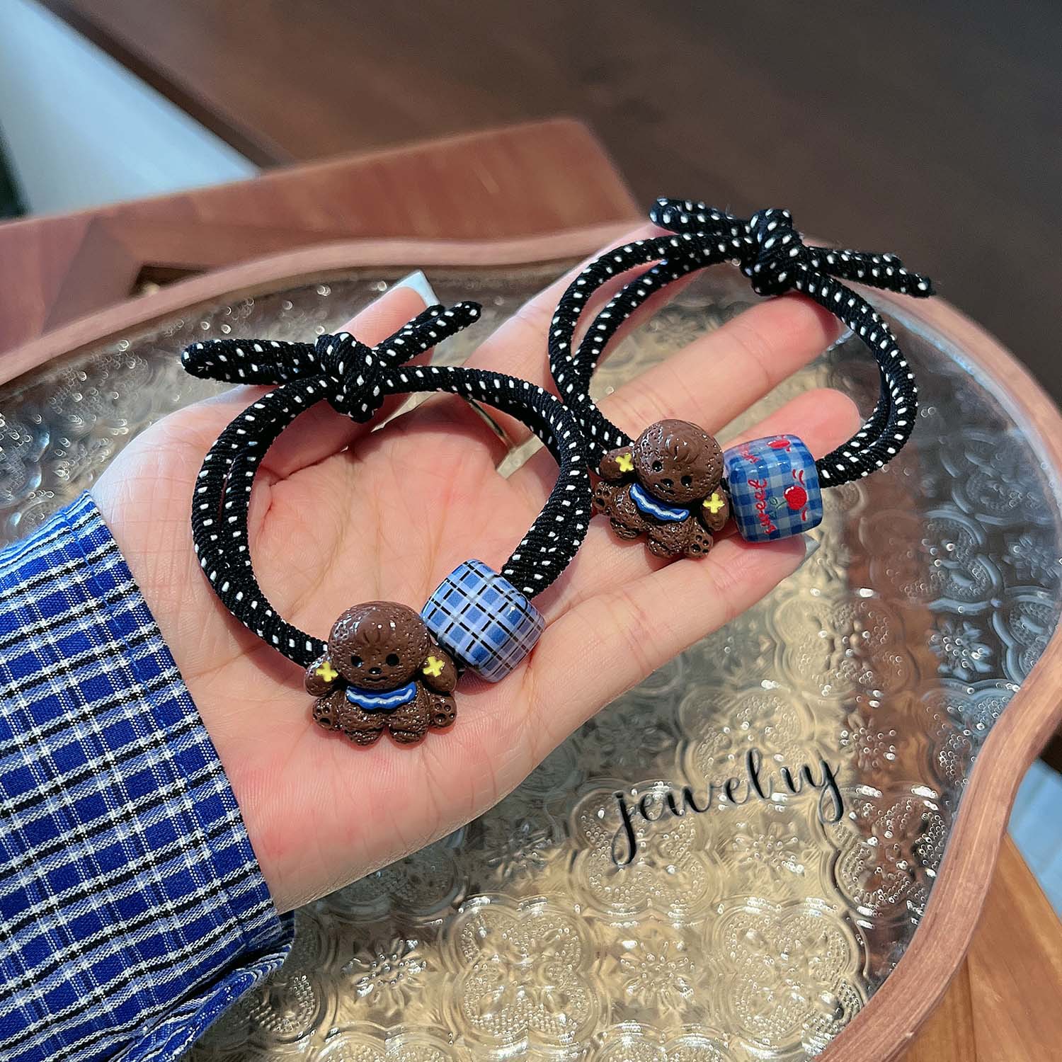 美拉德色可爱M系卡通 蝴蝶结皮筋氛围感发圈头绳绑丸子头马尾发绳