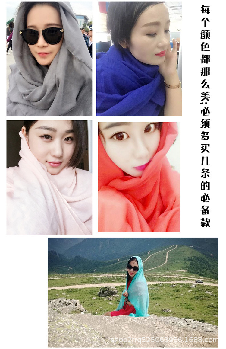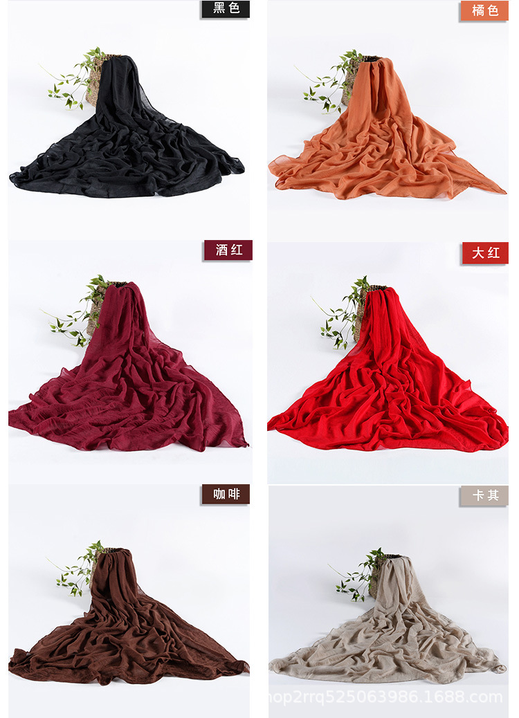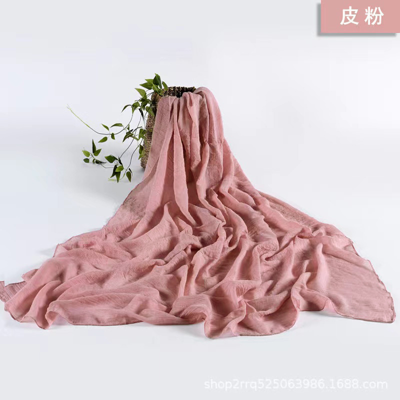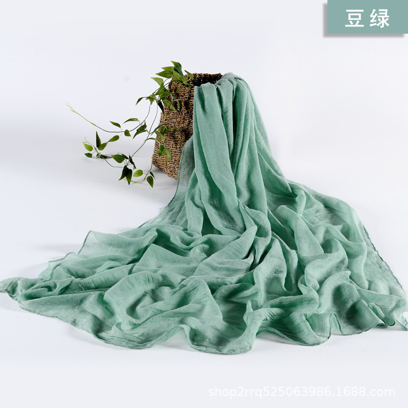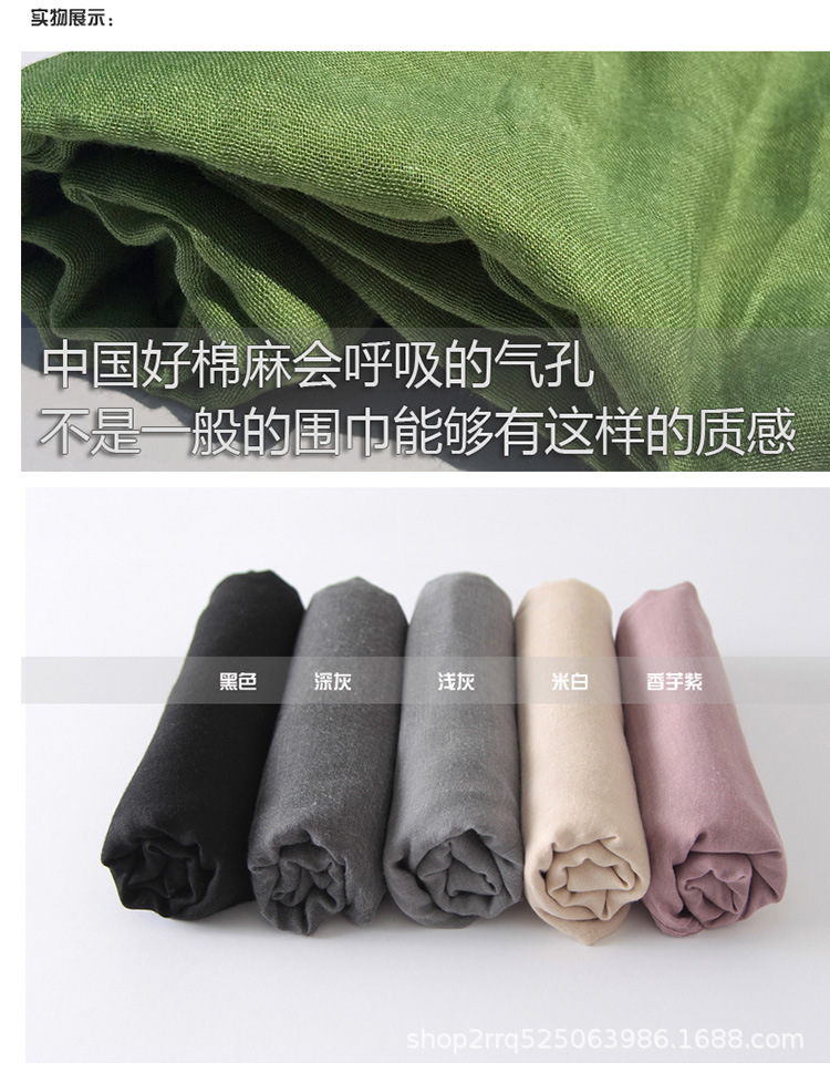 纯色棉麻围巾女 春夏旅游度假防晒披肩软糯薄款包头巾长款丝巾潮