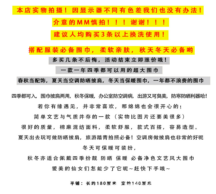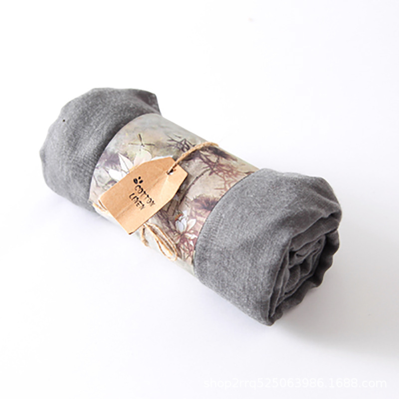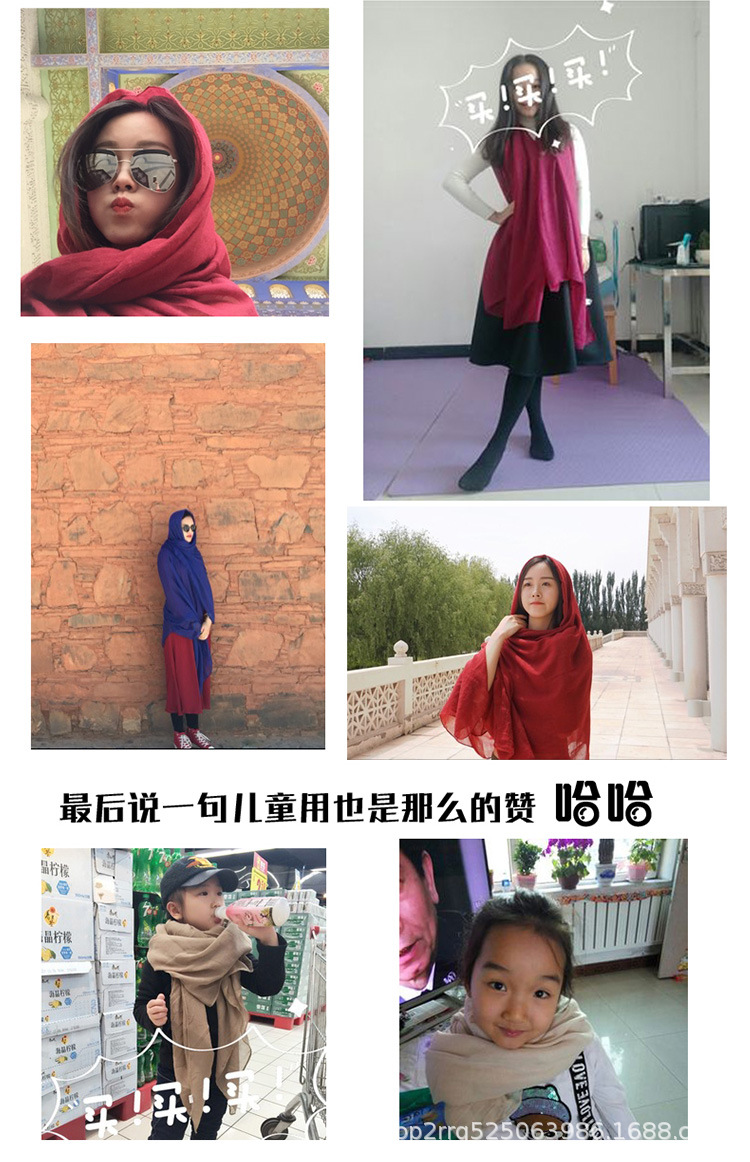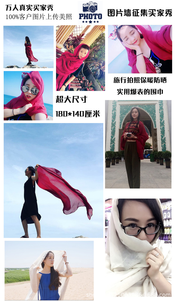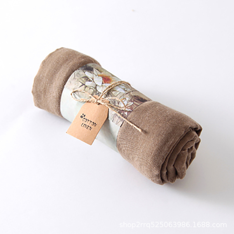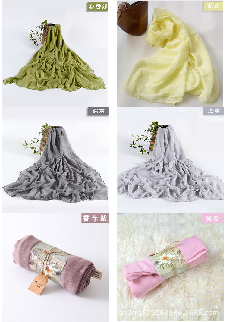 纯色棉麻围巾女 春夏旅游度假防晒披肩软糯薄款包头巾长款丝巾潮