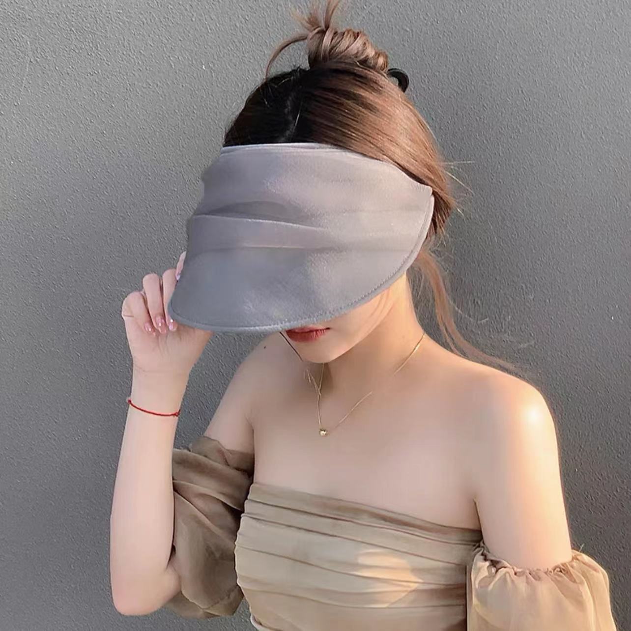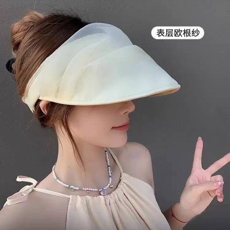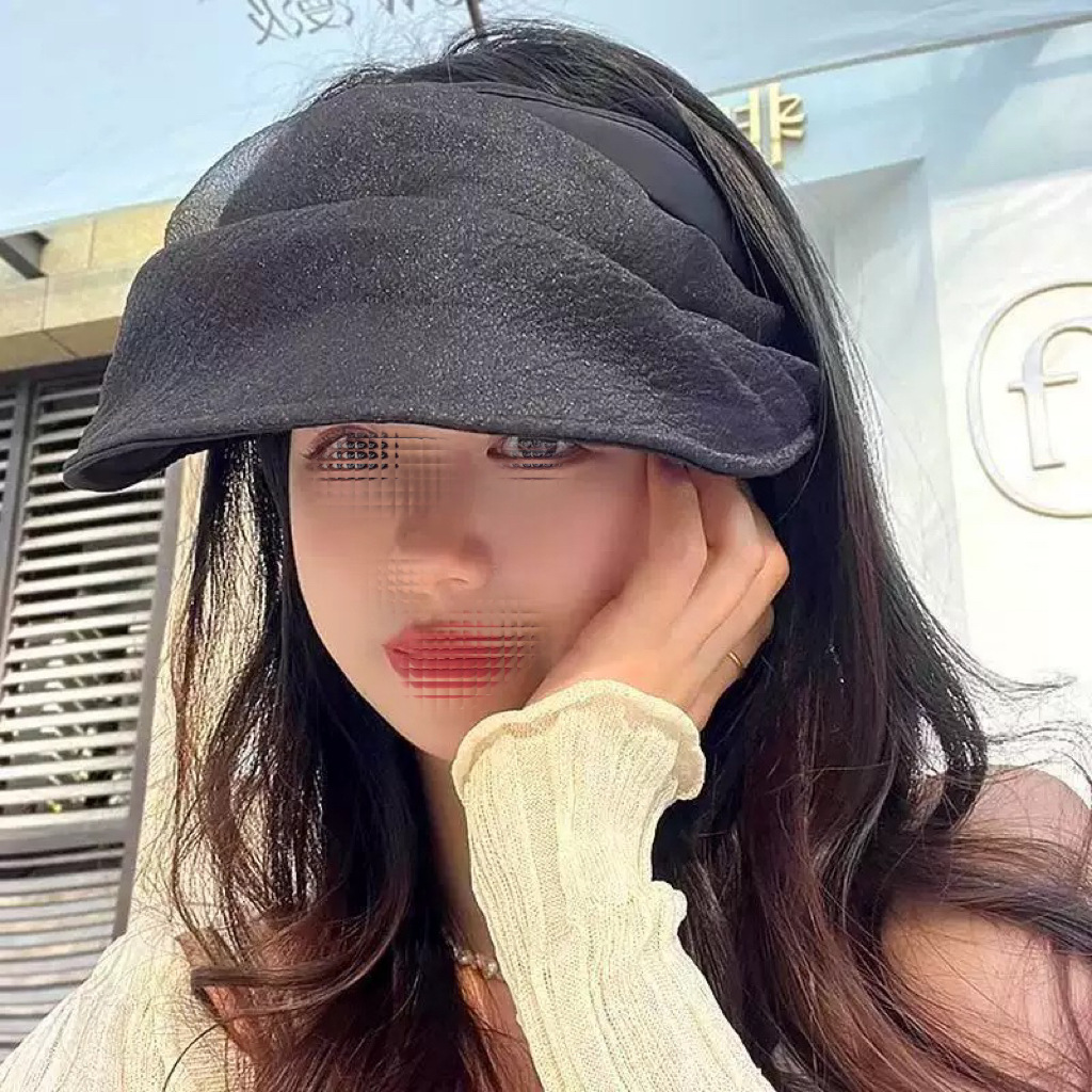 网纱空顶防晒帽女夏季新款可折叠发箍遮阳帽遮脸防紫外线太阳帽子