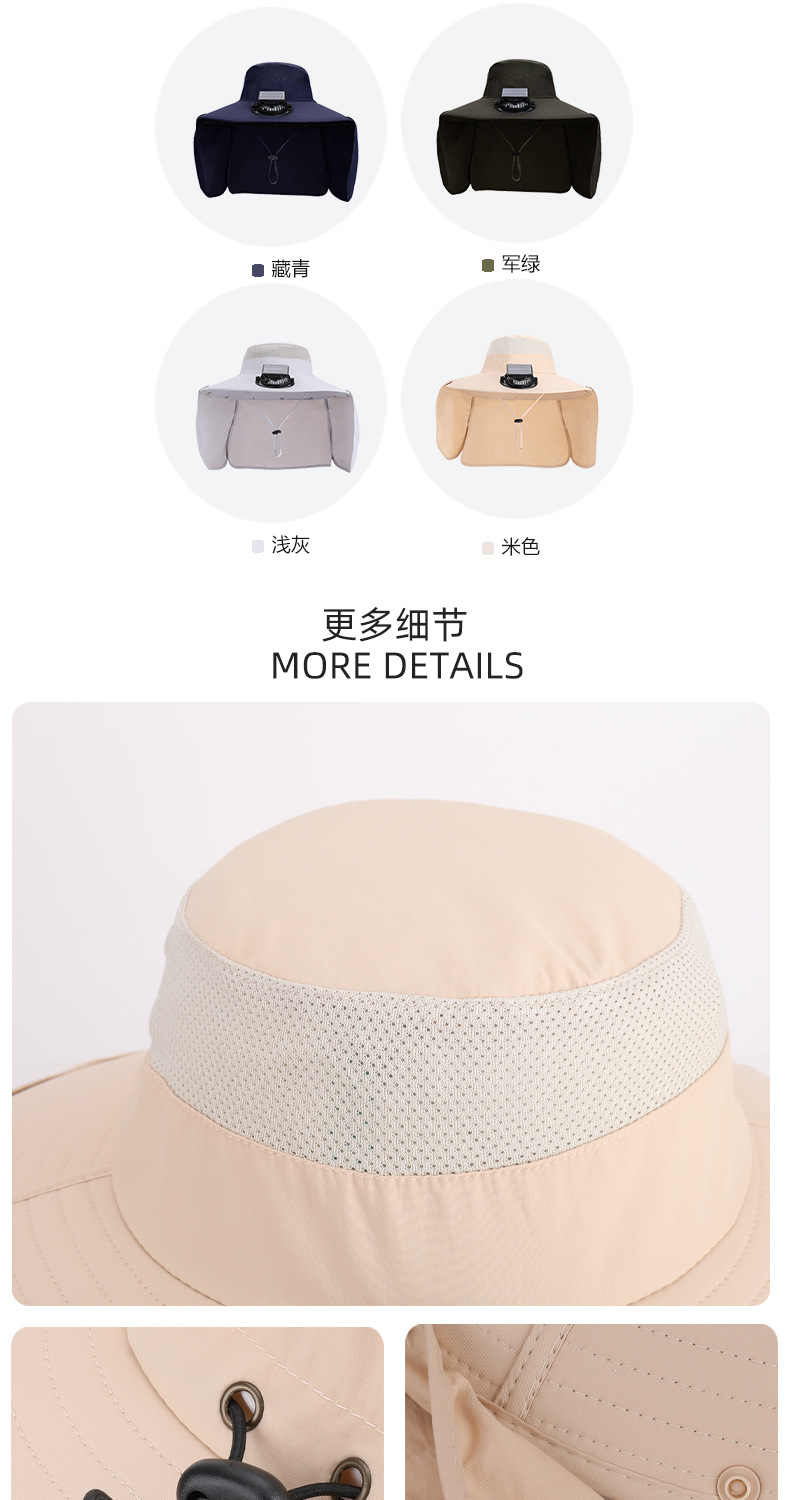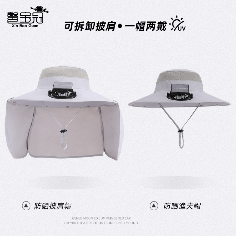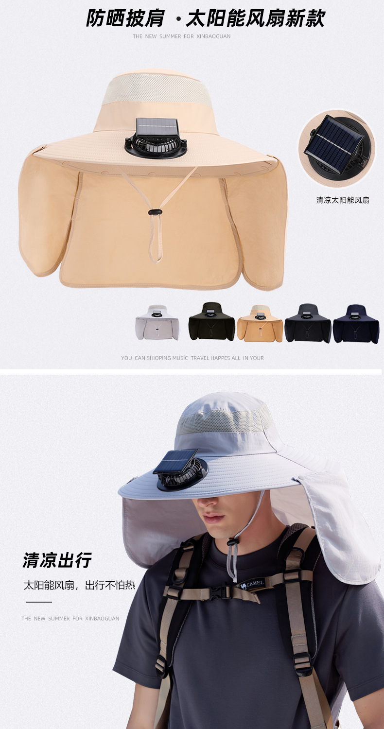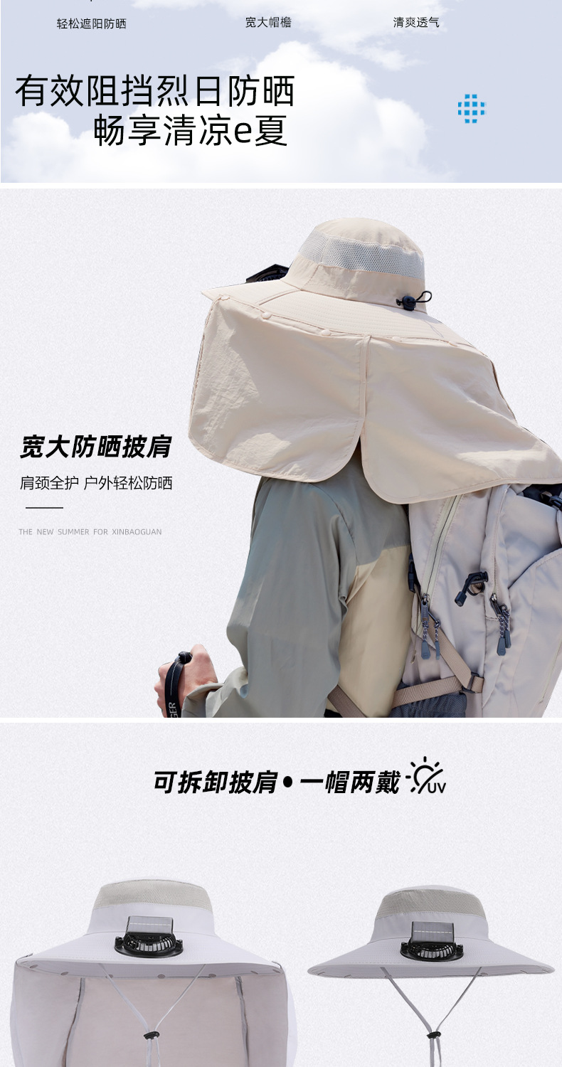 夏季户外钓鱼登山遮阳帽披肩护颈防晒渔夫帽超大檐太阳能风扇帽子