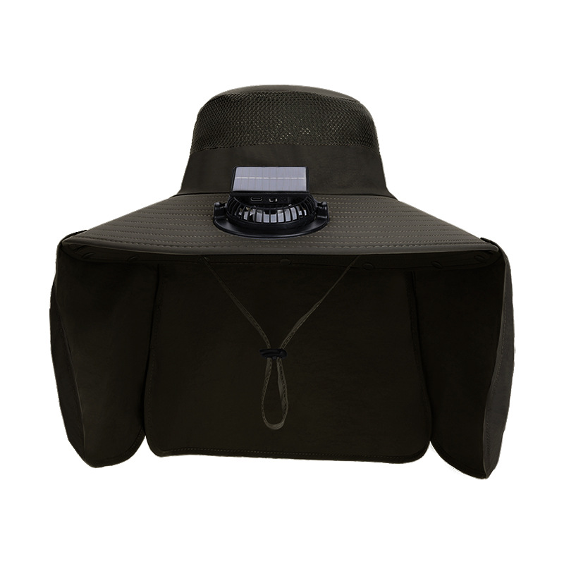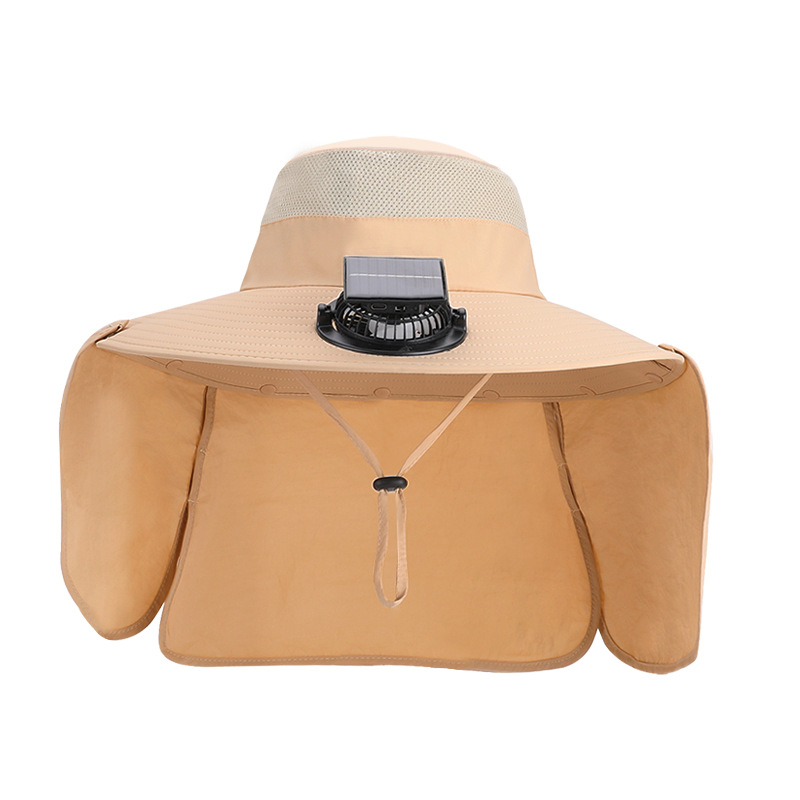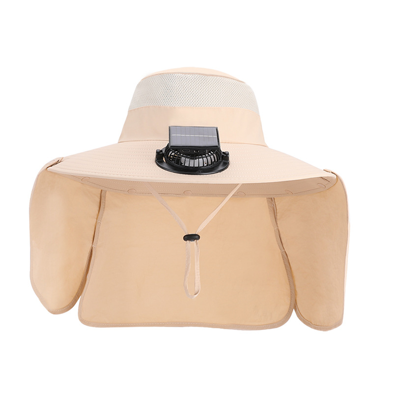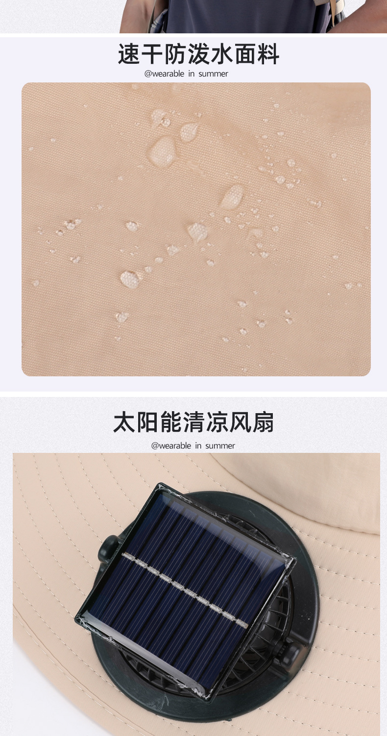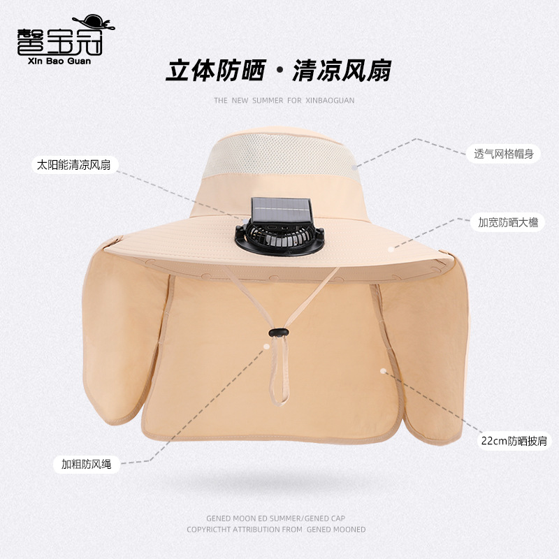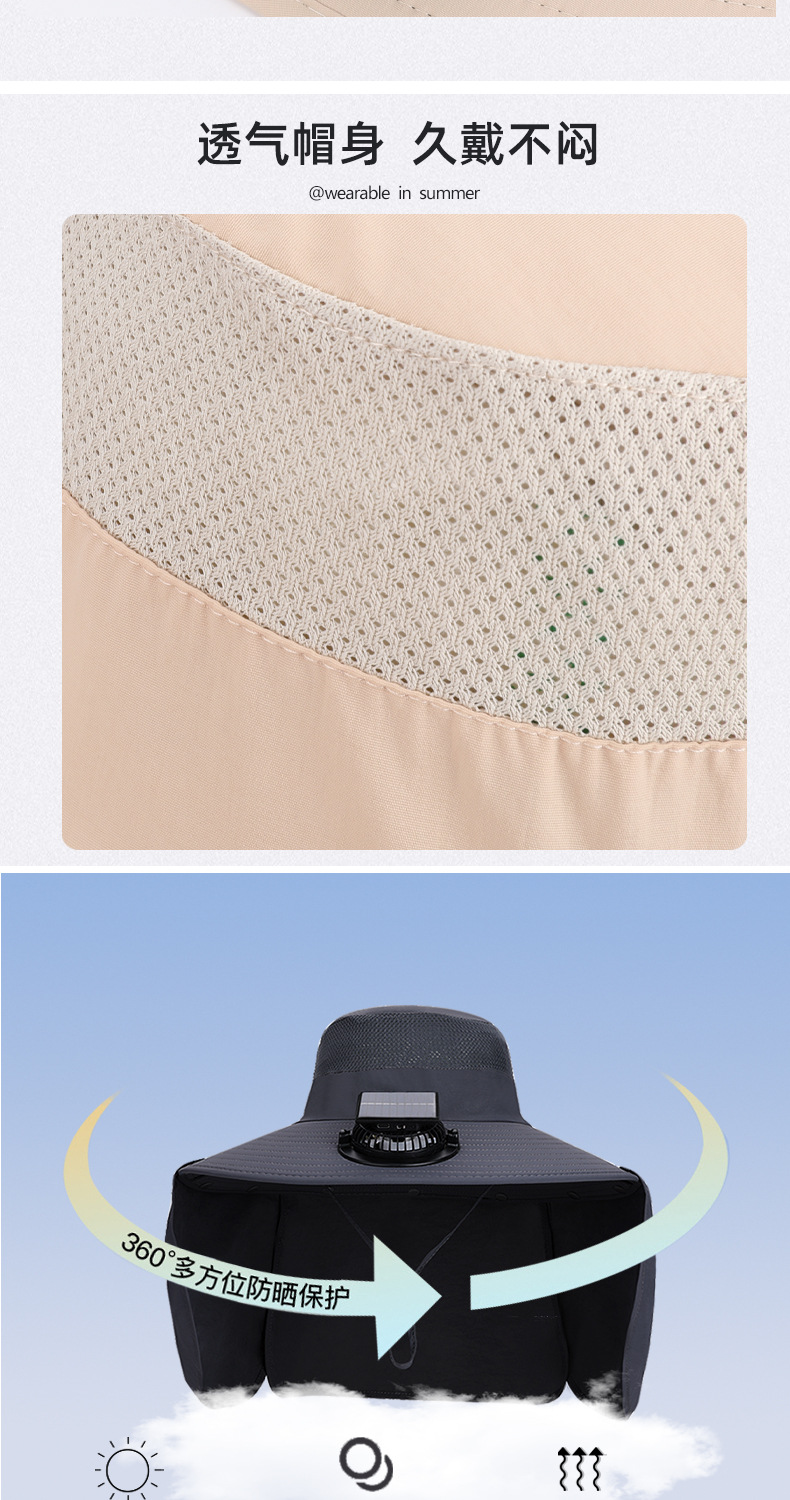 夏季户外钓鱼登山遮阳帽披肩护颈防晒渔夫帽超大檐太阳能风扇帽子