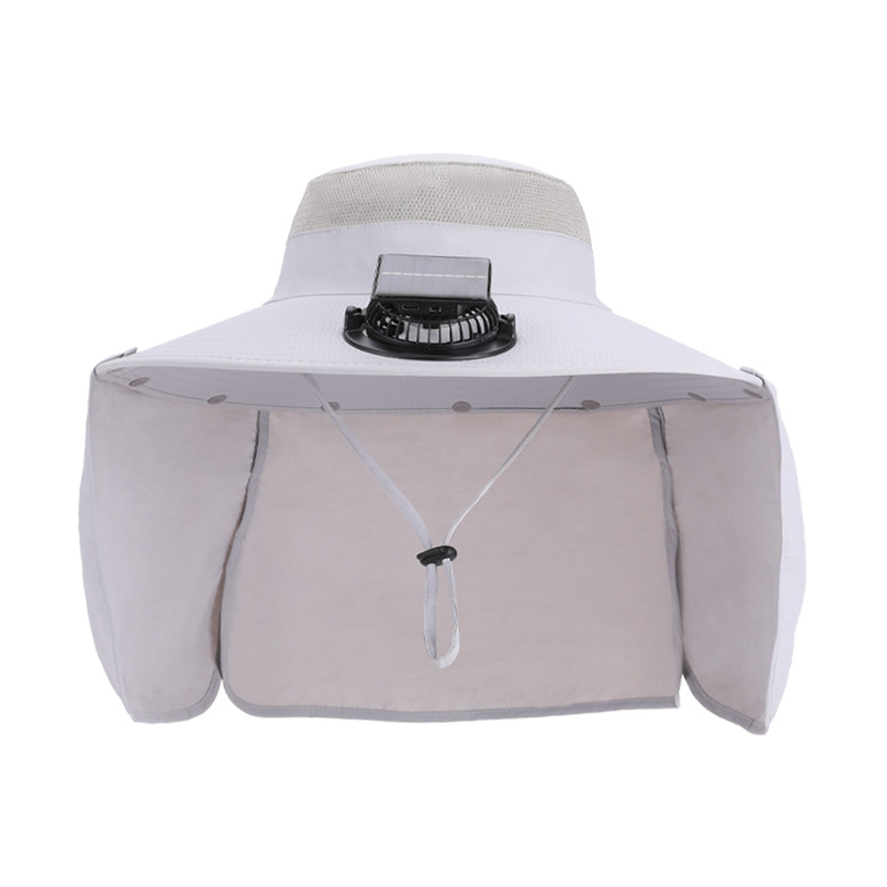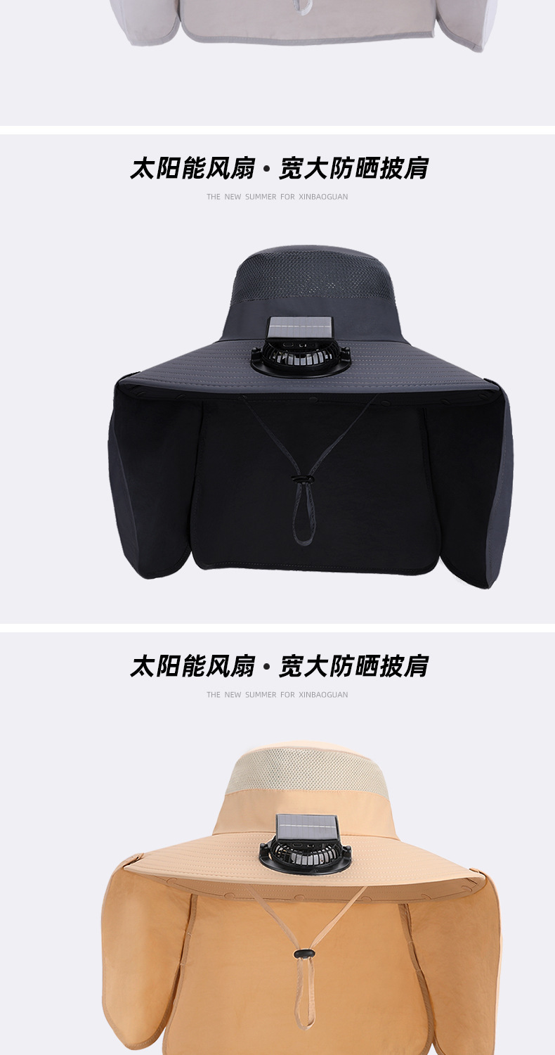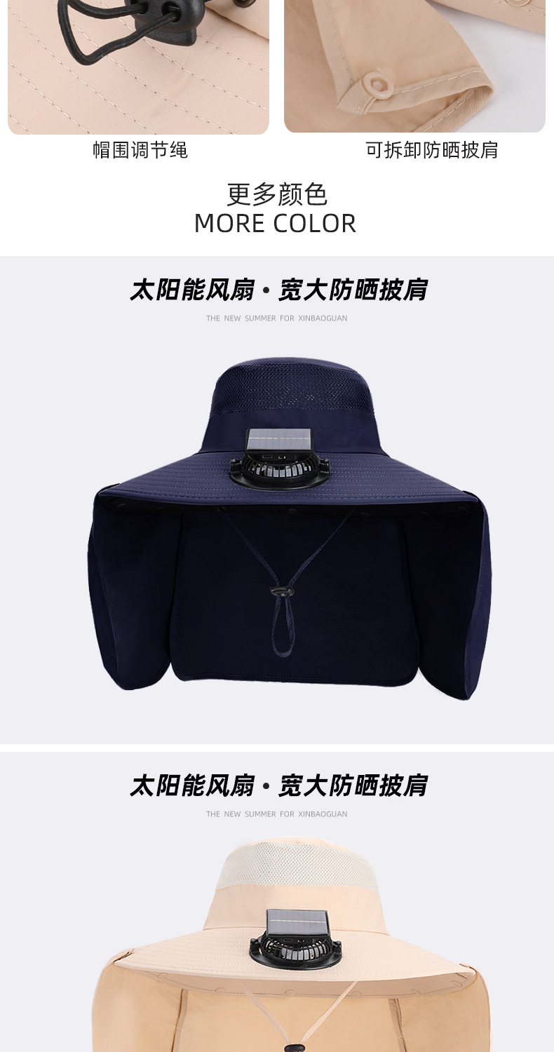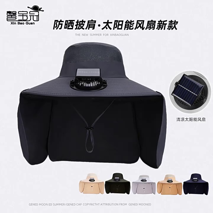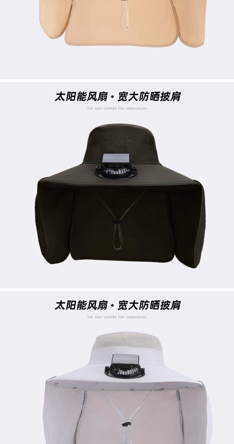 夏季户外钓鱼登山遮阳帽披肩护颈防晒渔夫帽超大檐太阳能风扇帽子