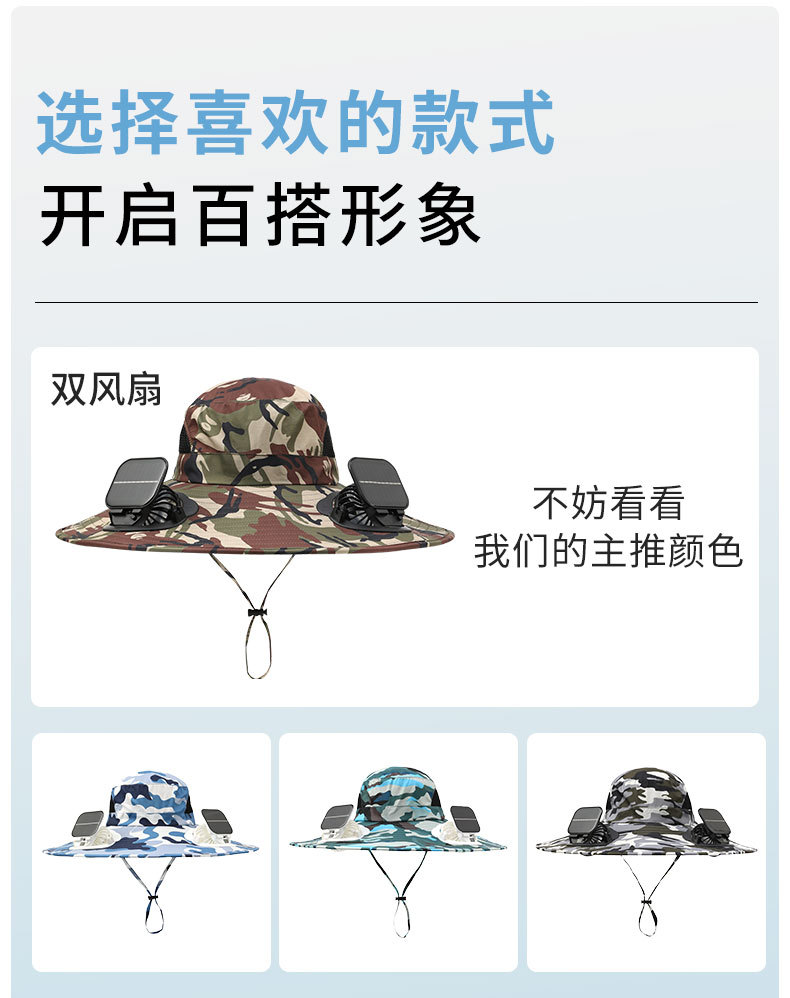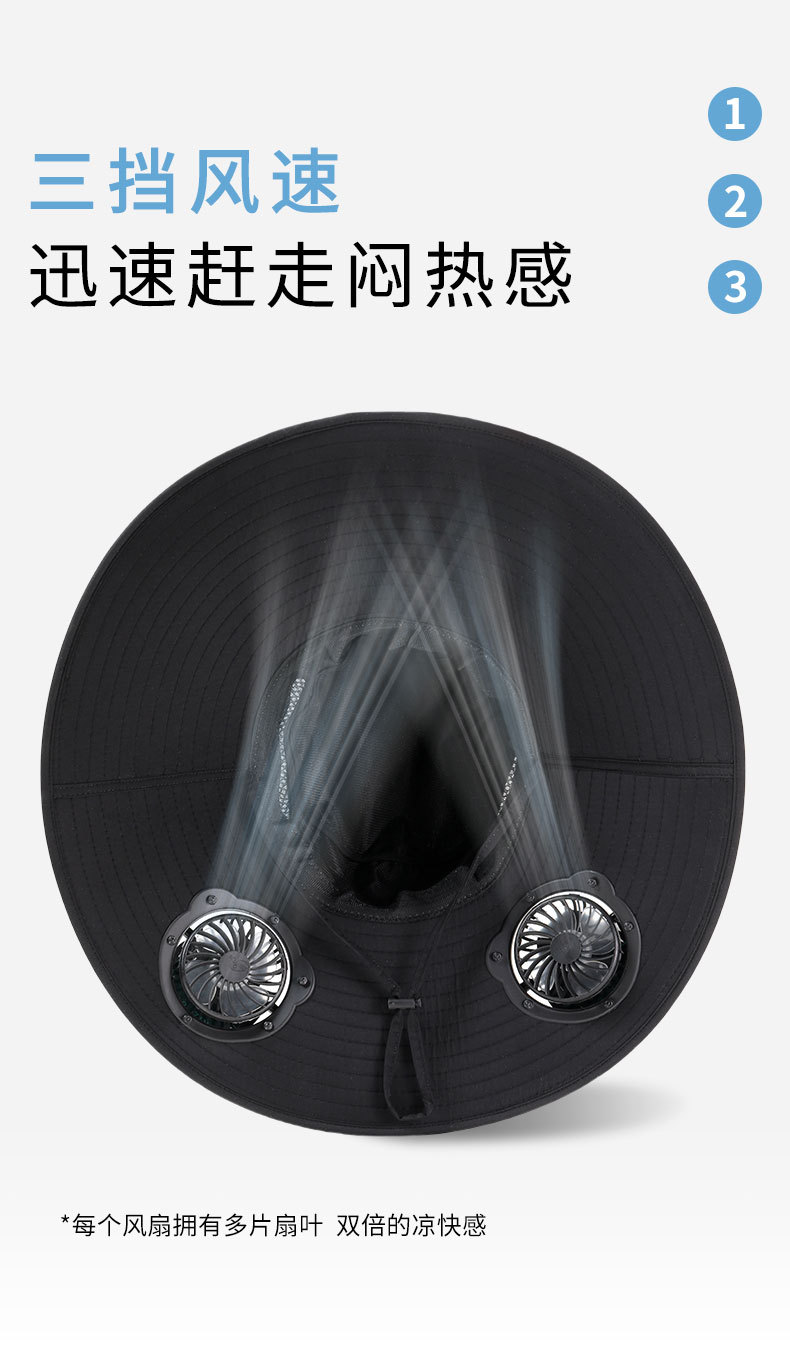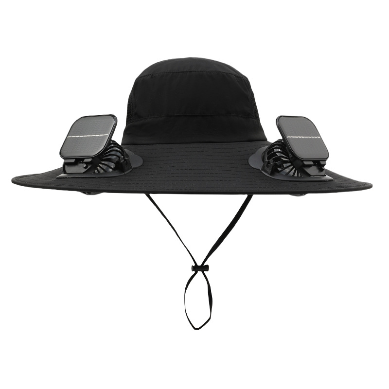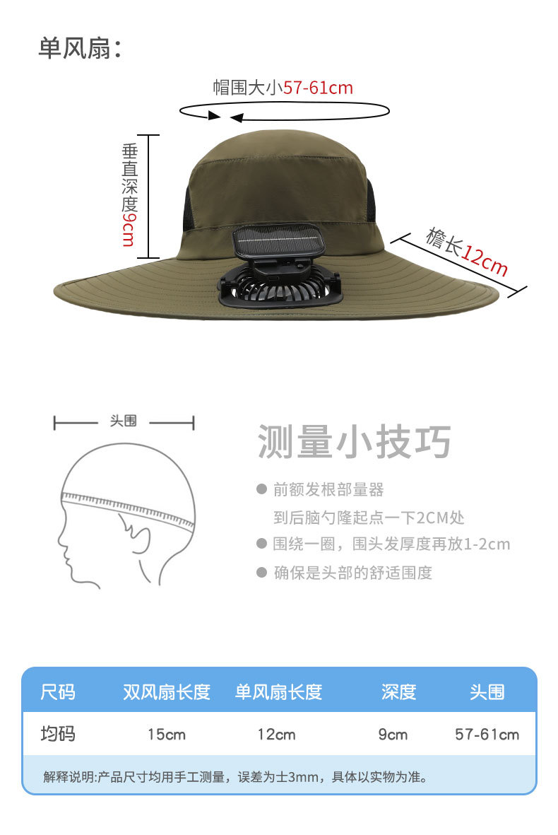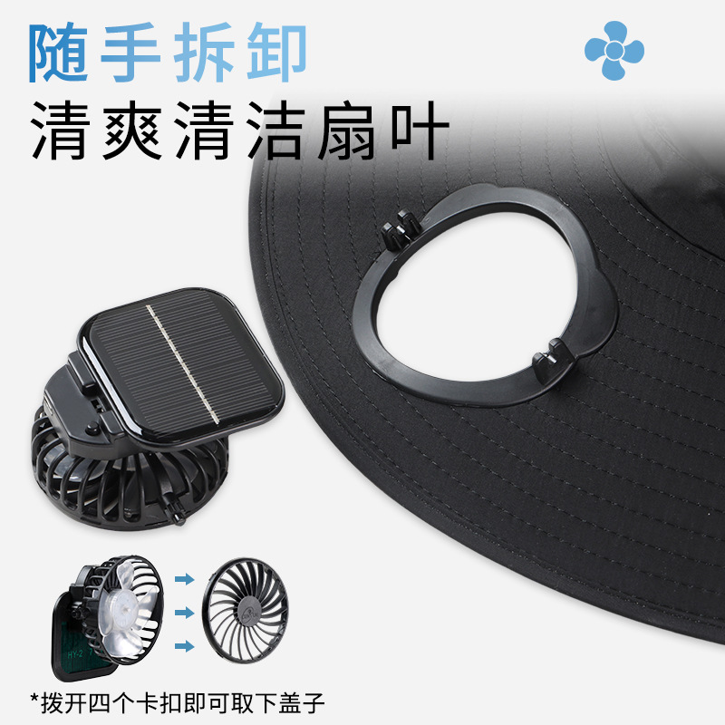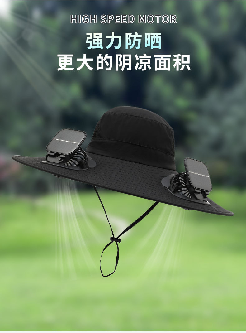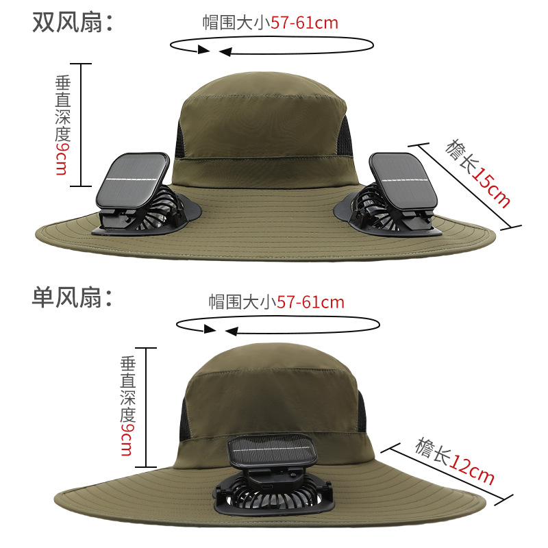 男款大檐铁丝15cm太阳能充电双风扇帽夏季成人防晒户外透气遮阳帽