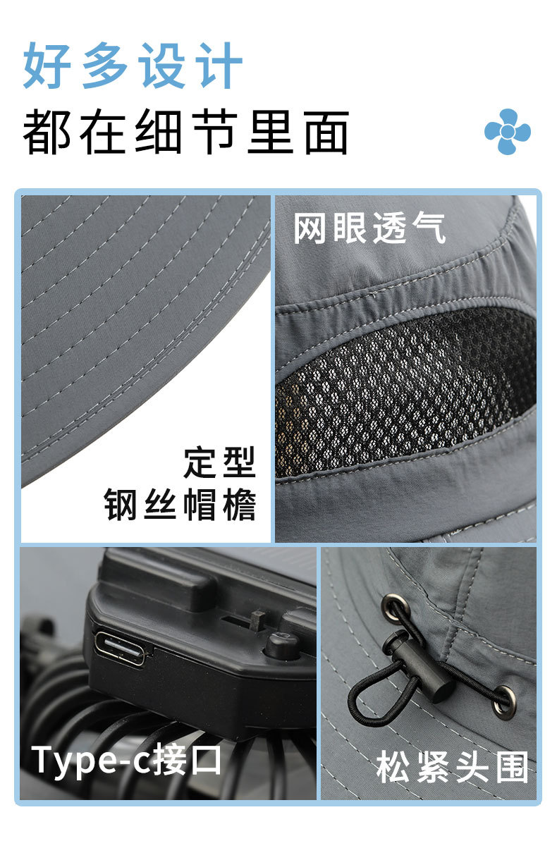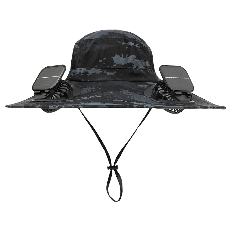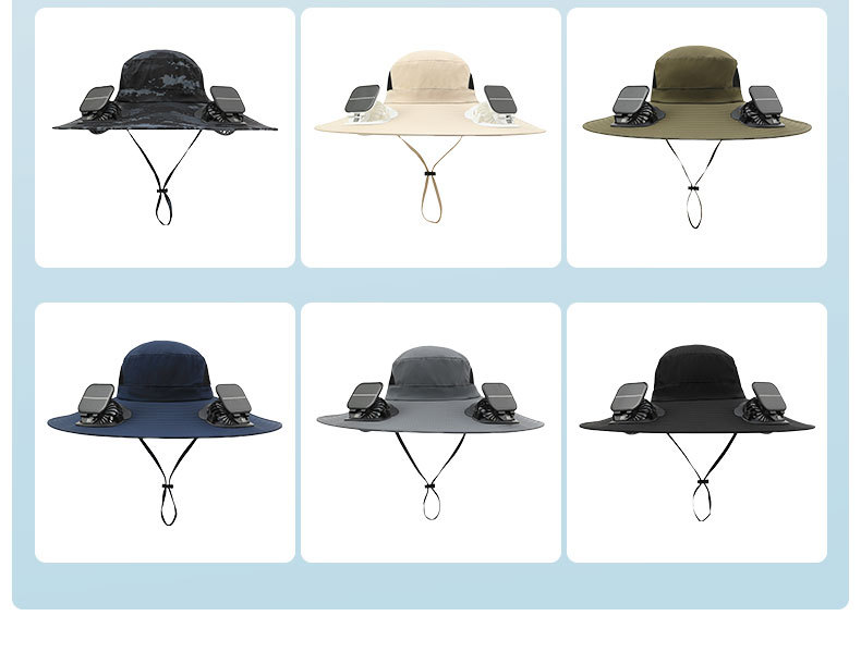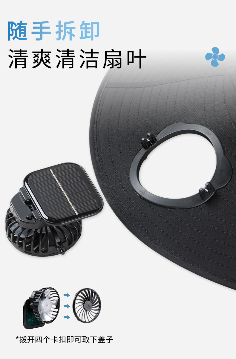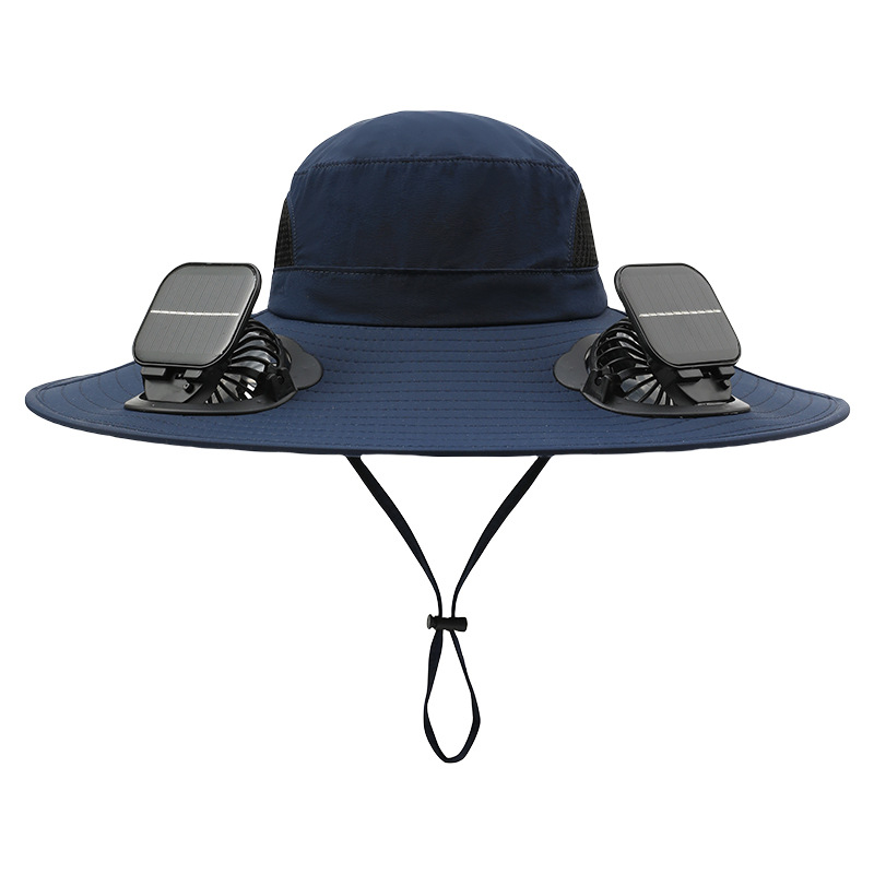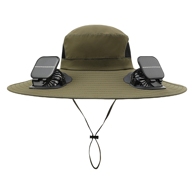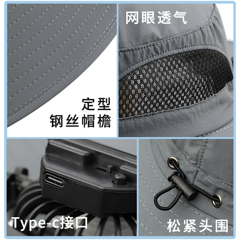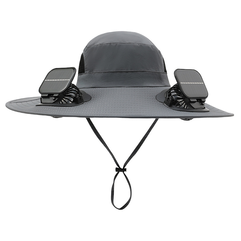 男款大檐铁丝15cm太阳能充电双风扇帽夏季成人防晒户外透气遮阳帽
