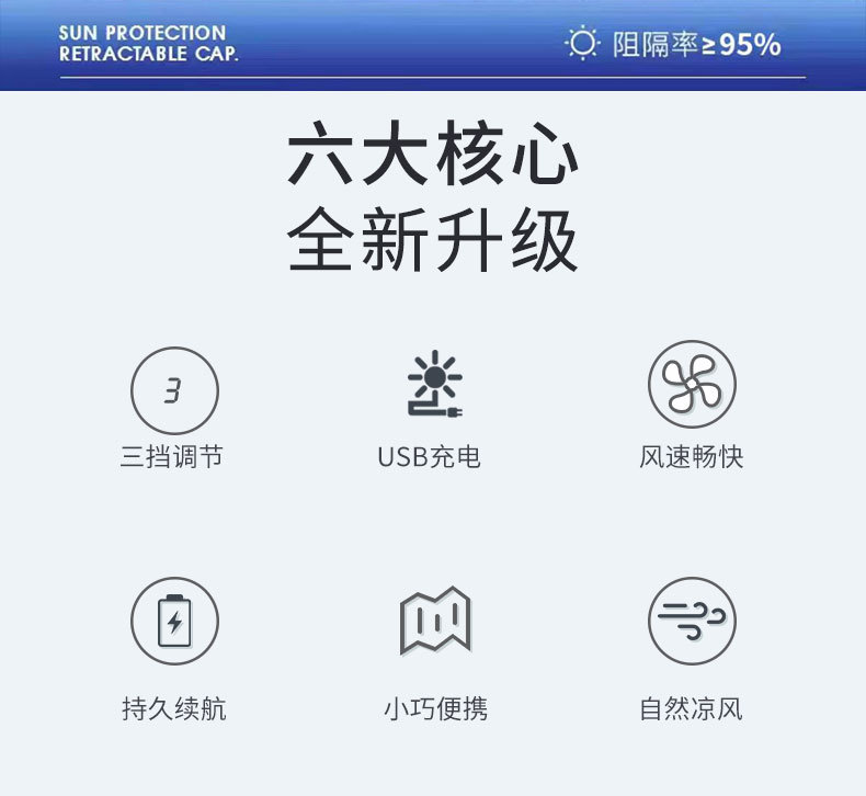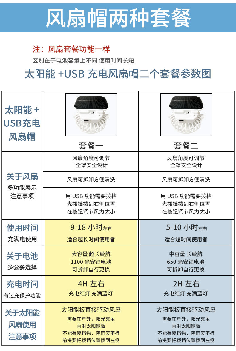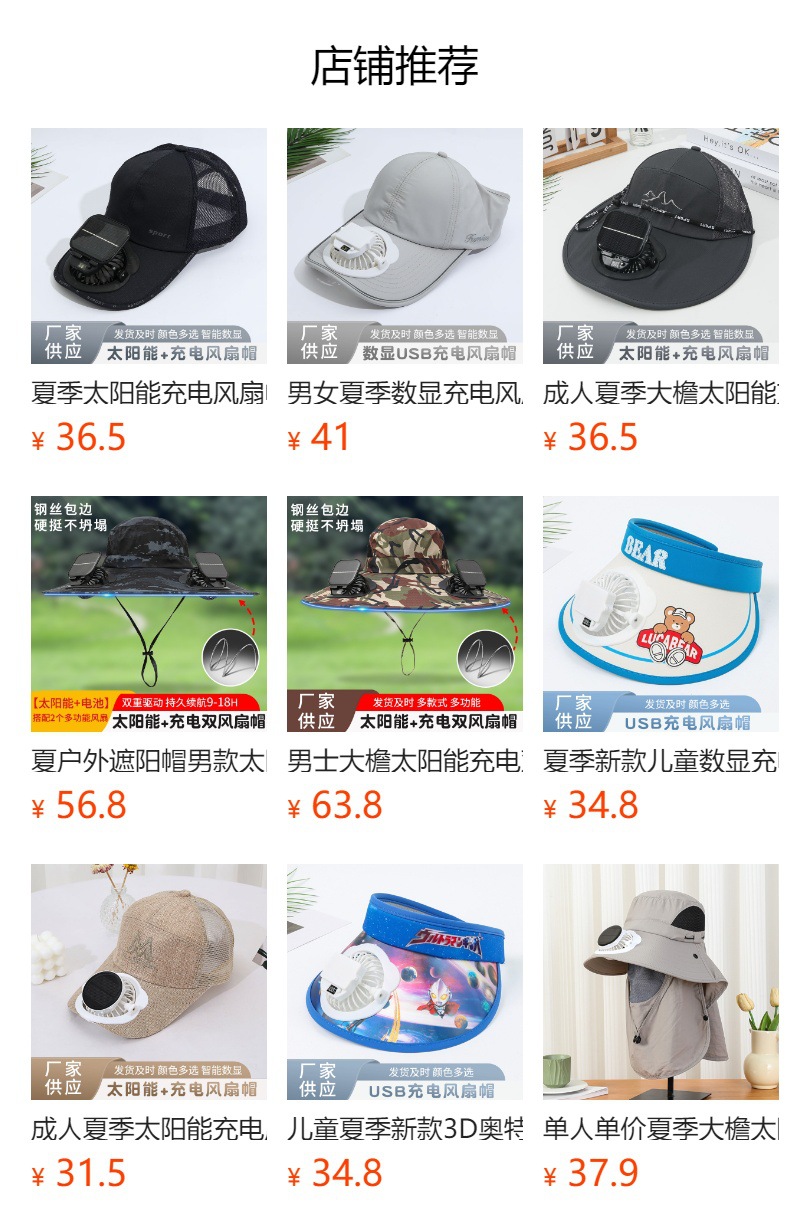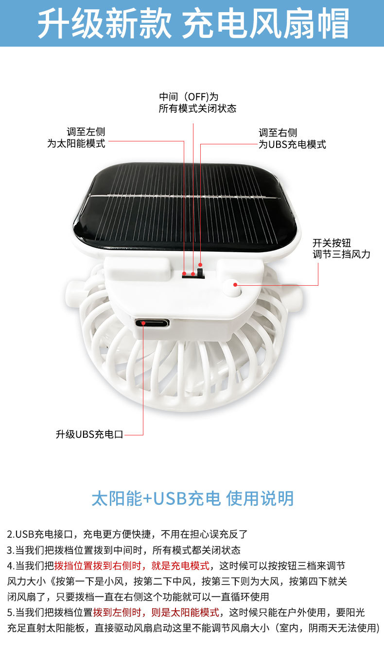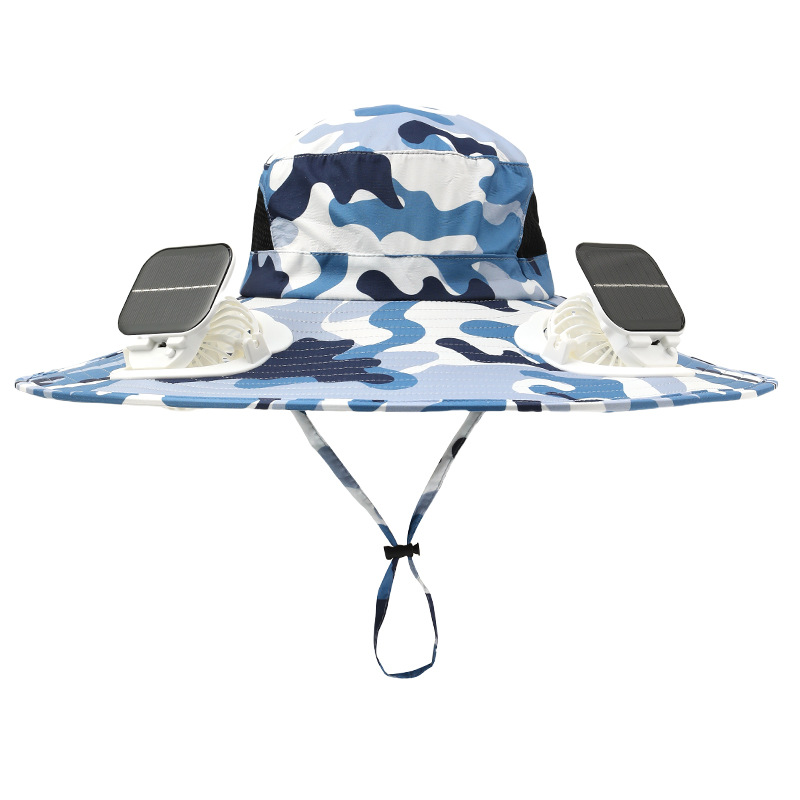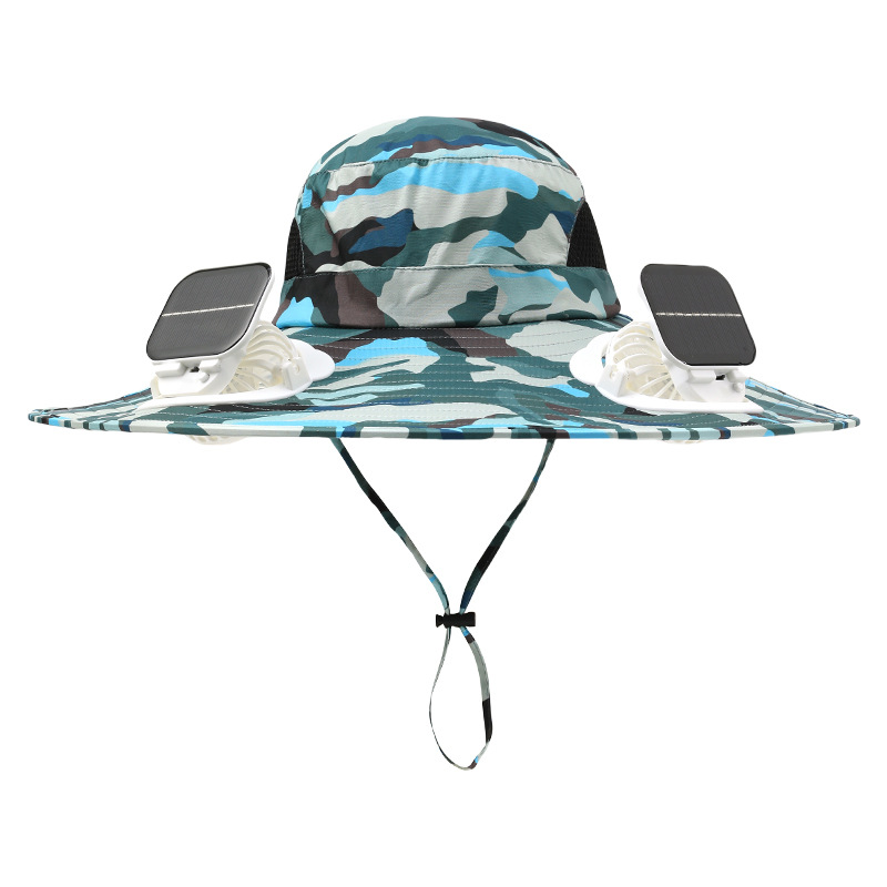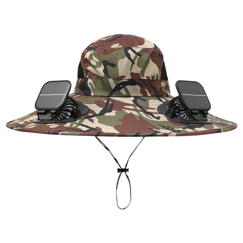 男款大檐铁丝15cm太阳能充电双风扇帽夏季成人防晒户外透气遮阳帽