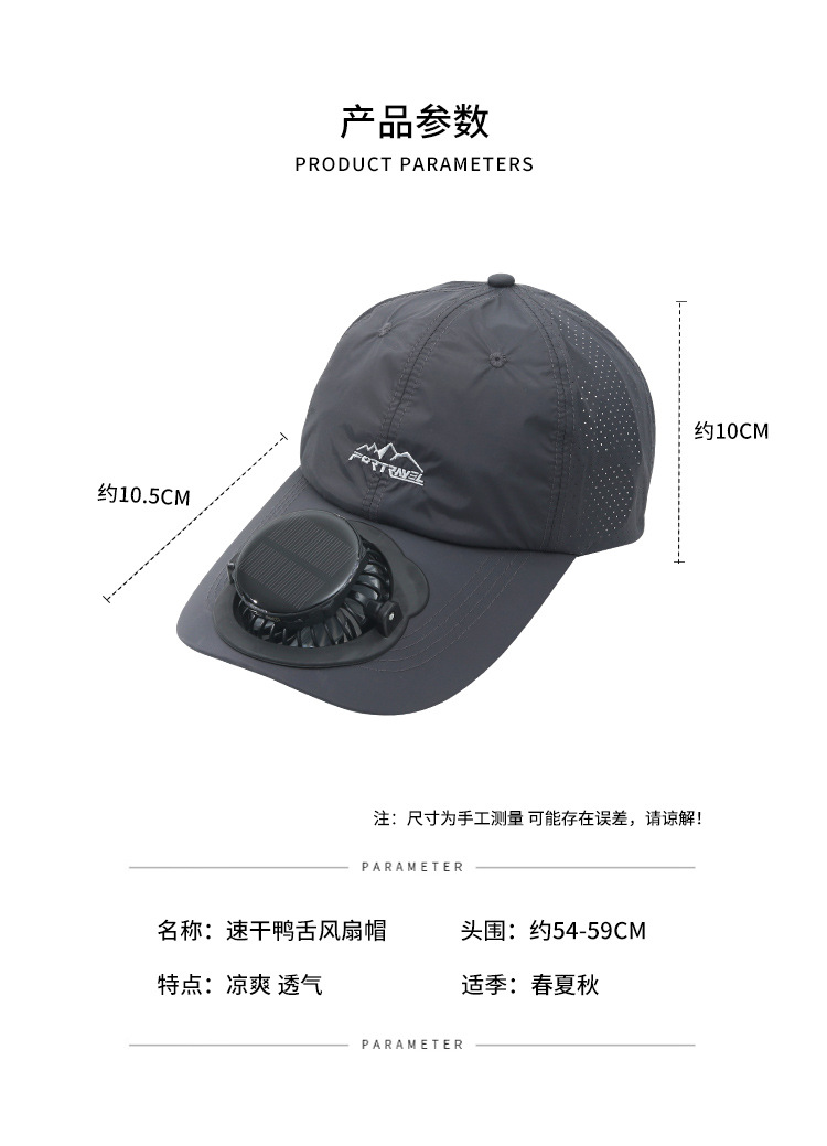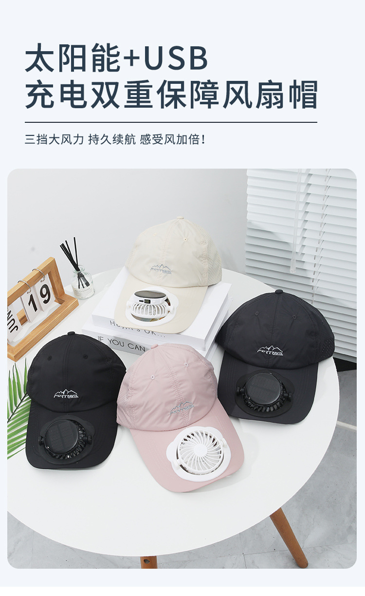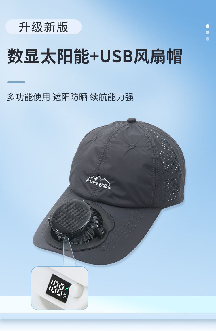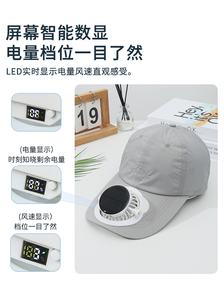 夏季太阳能充电数显风扇外出夏季速干遮阳防晒宽大透气檐帽鸭舌帽
