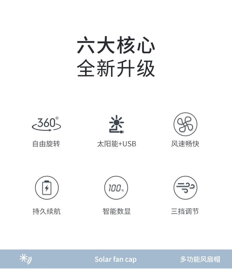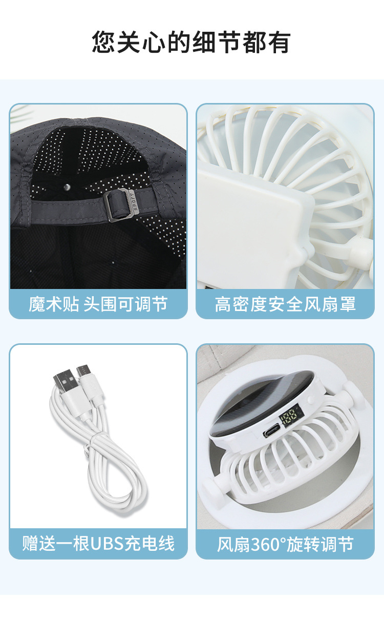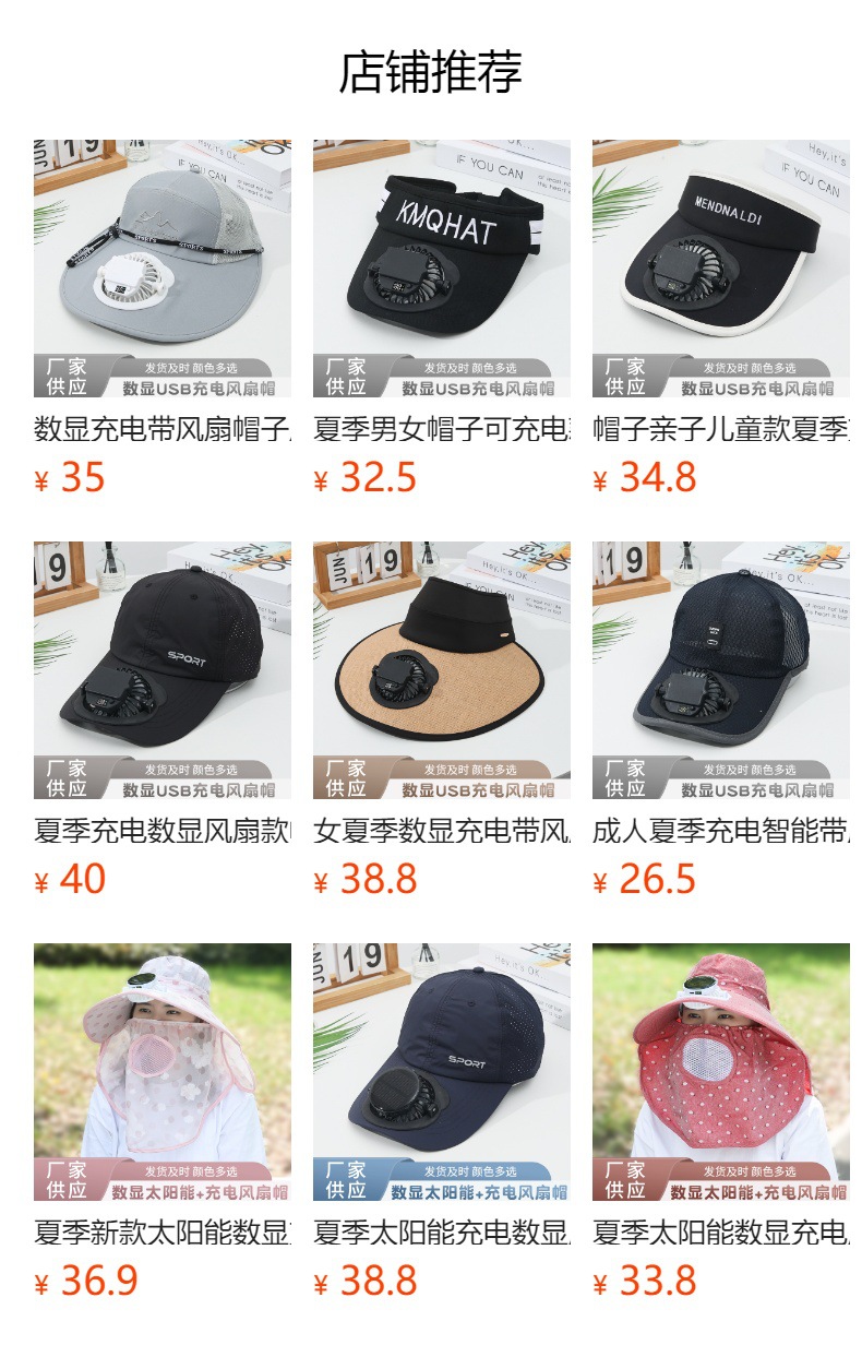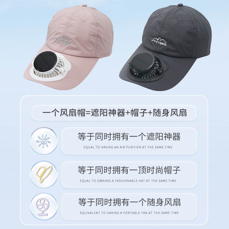夏季太阳能充电数显风扇外出夏季速干遮阳防晒宽大透气檐帽鸭舌帽