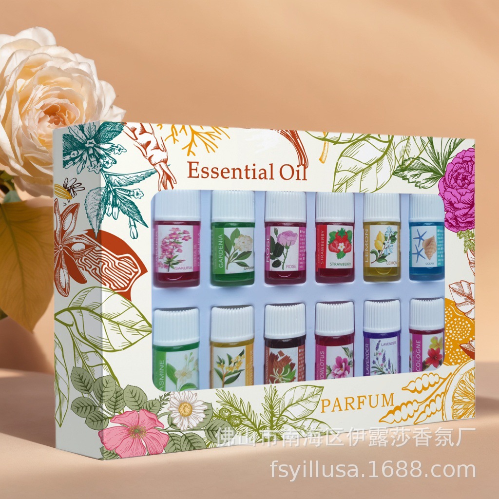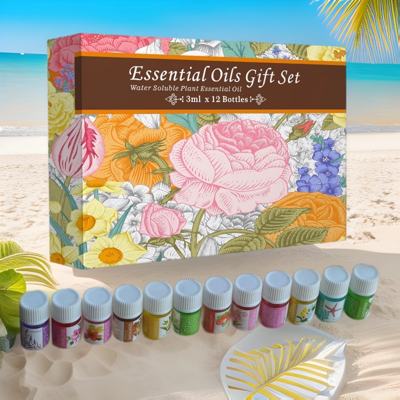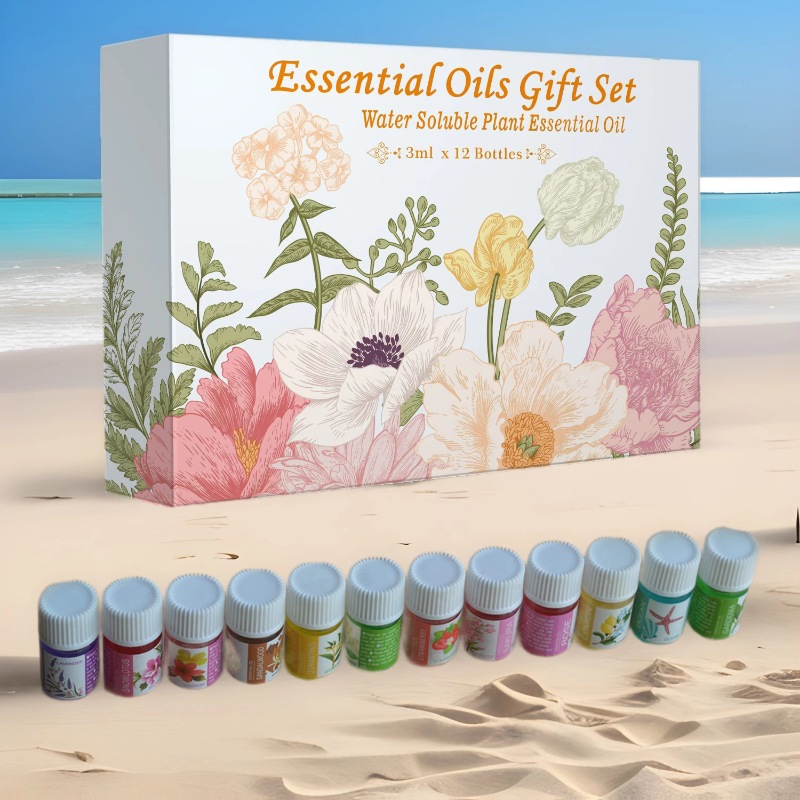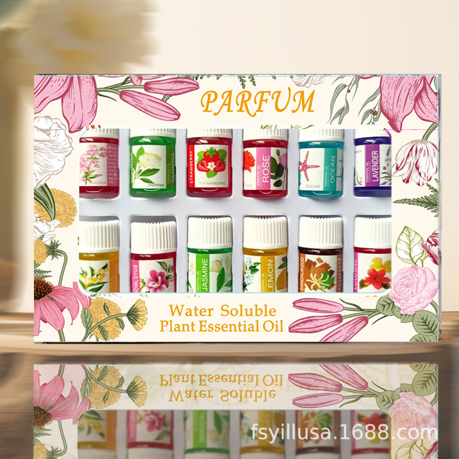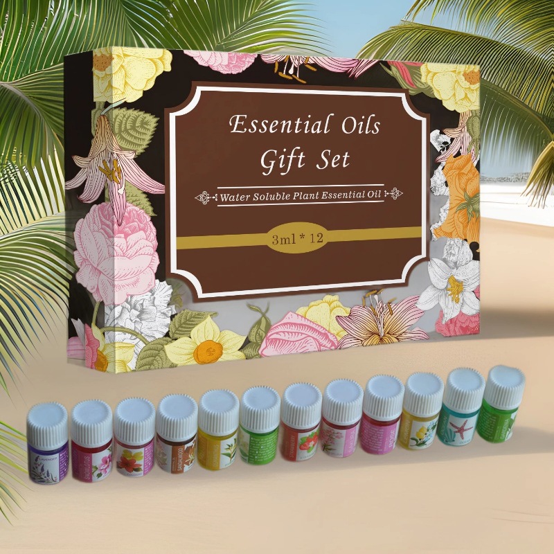 12瓶一盒装3ml(0.101fl.oz)迷你型小瓶装水溶香薰香氛精油套盒