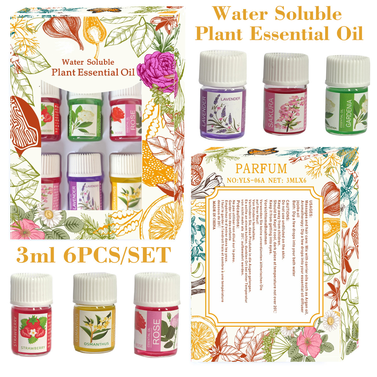 伊露莎3ml6瓶加湿器精油香薰水溶精油车载香薰室内散香精油无火薰