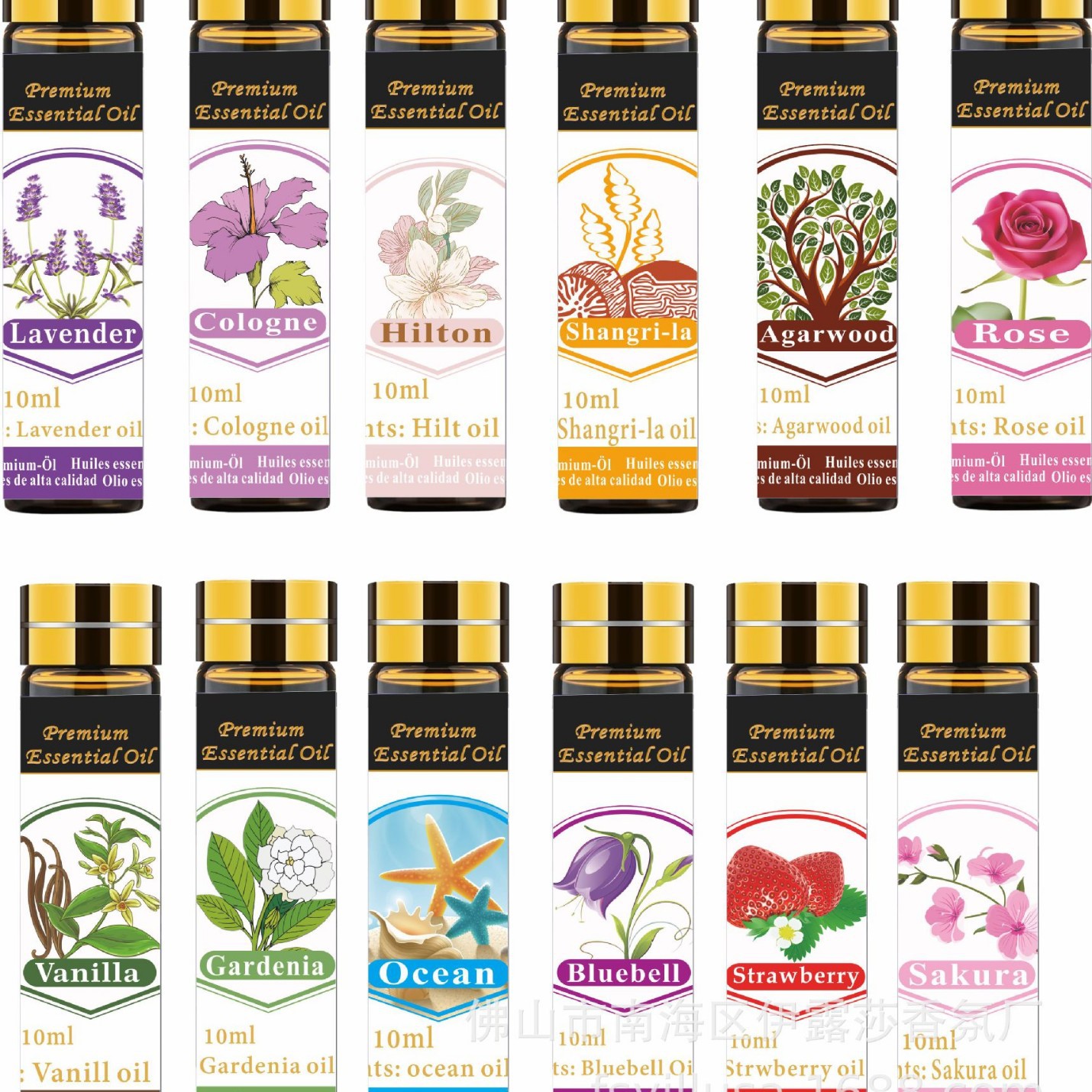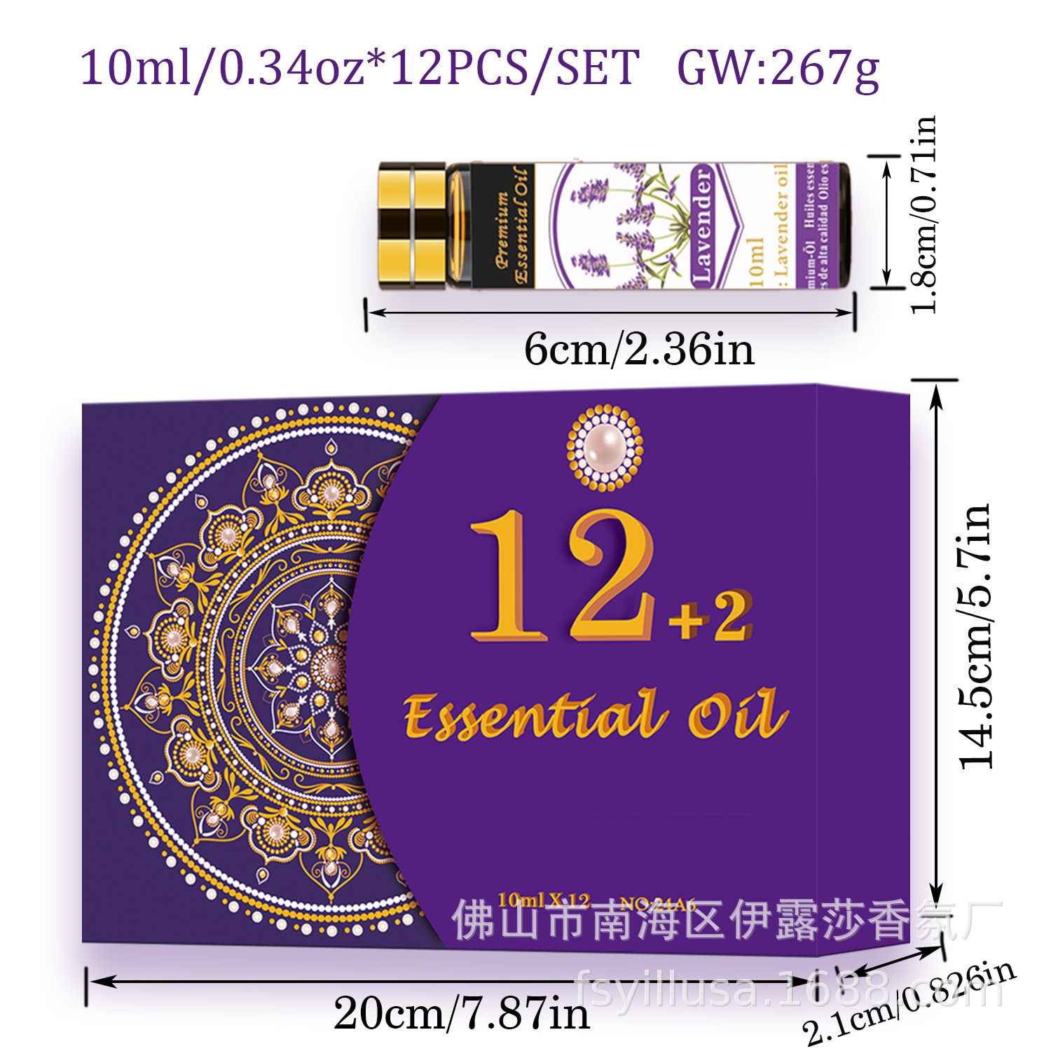 跨境精油单方香薰精油套装薰衣草玫瑰1oML12瓶一盒套盒加湿器香氛
