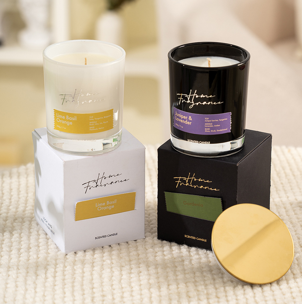 新款外贸热销高级内喷色烫银镜面金属盖大豆蜡精致伴手礼香薰蜡烛