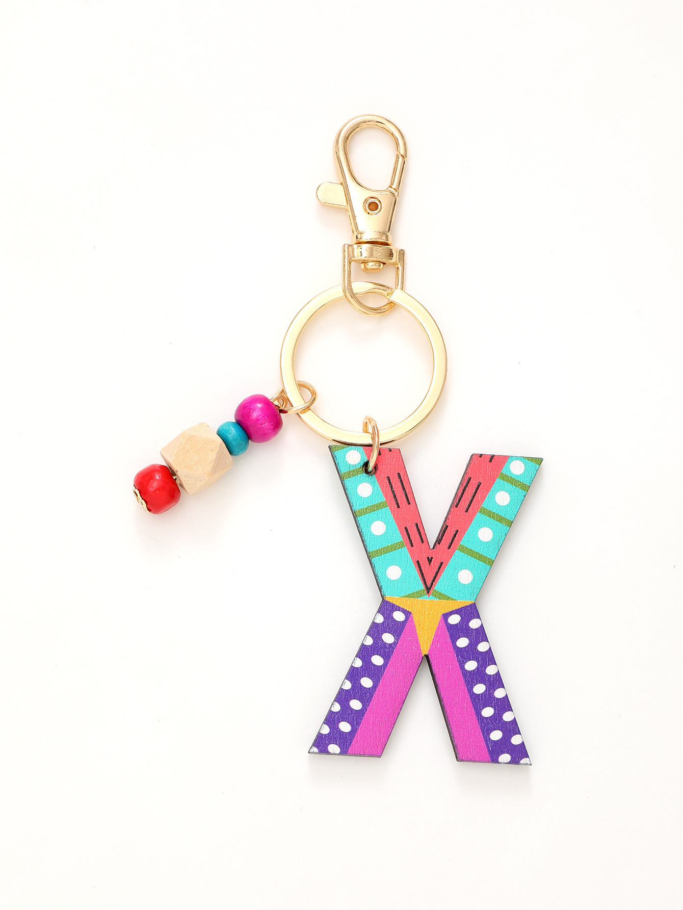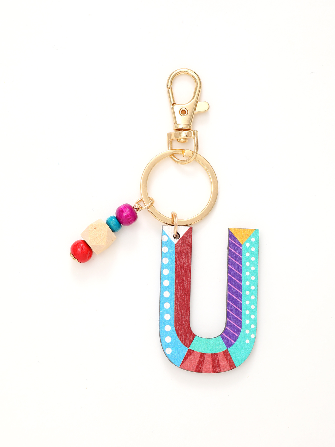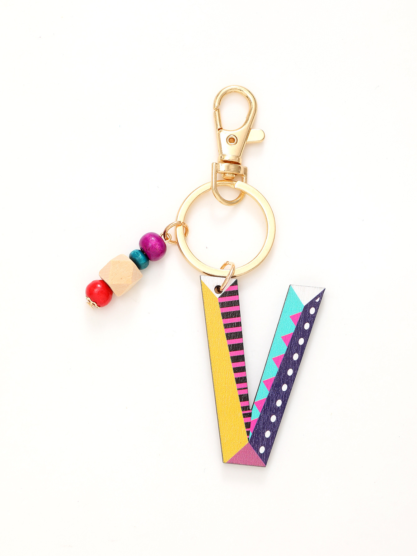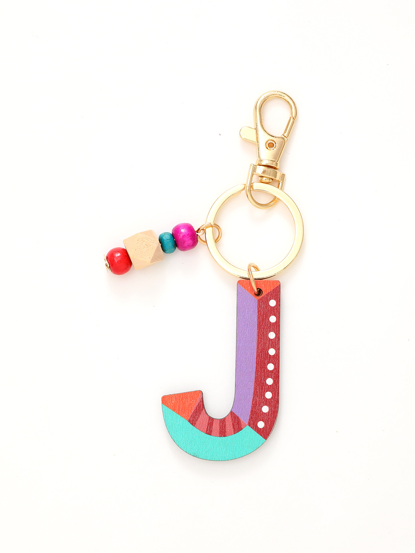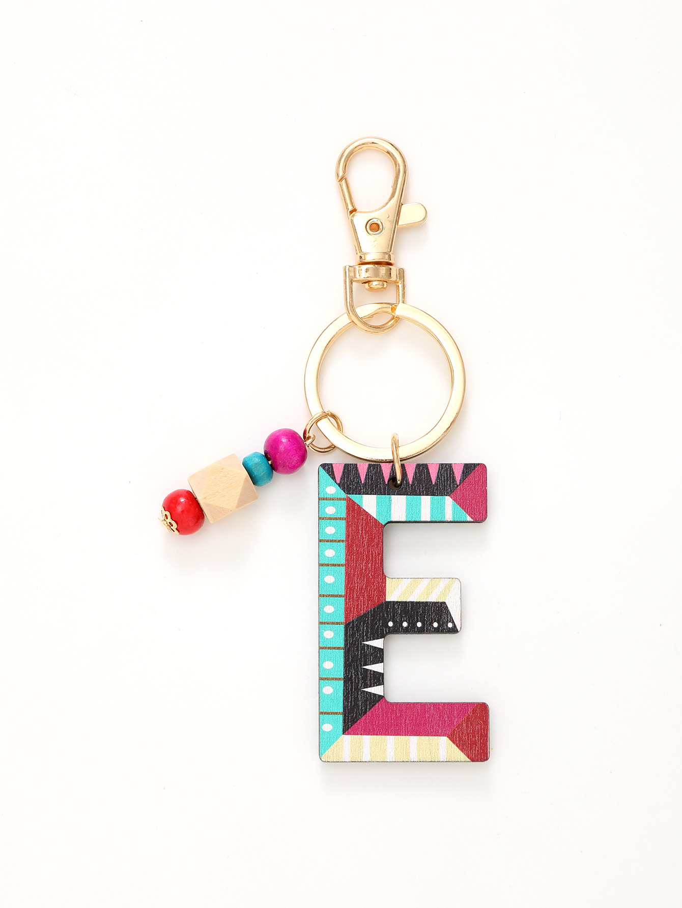 新款度假风彩色木质木珠26字母钥匙扣钥匙链包挂配饰跨境亚马逊
