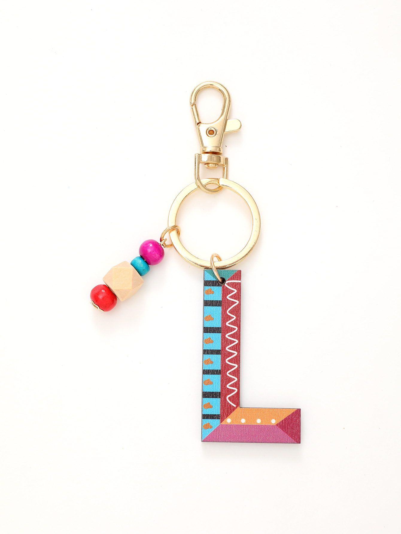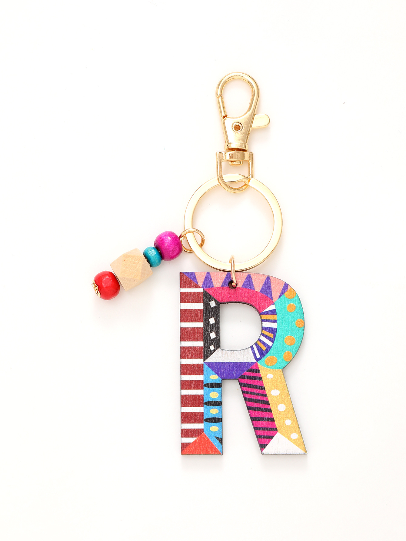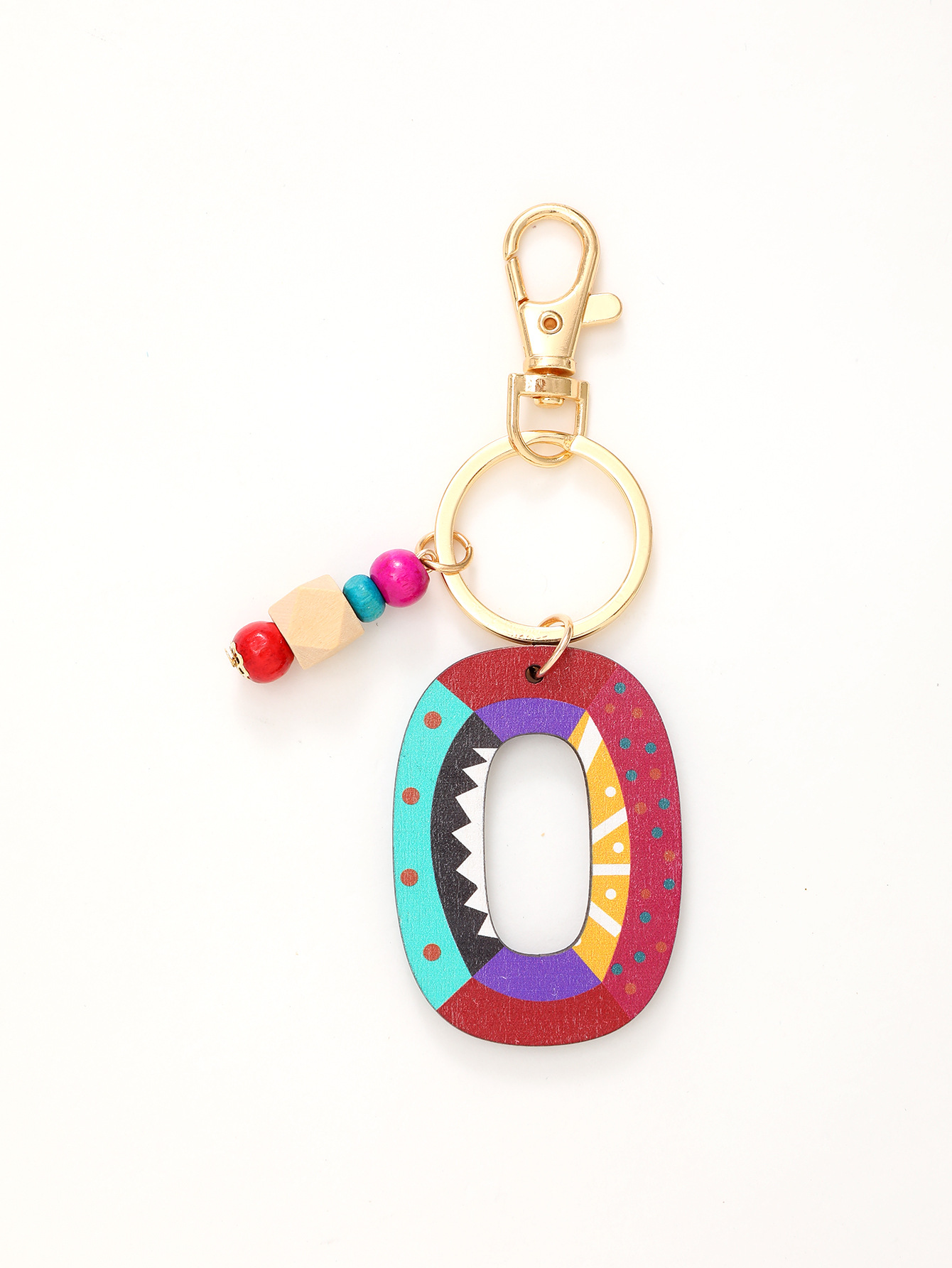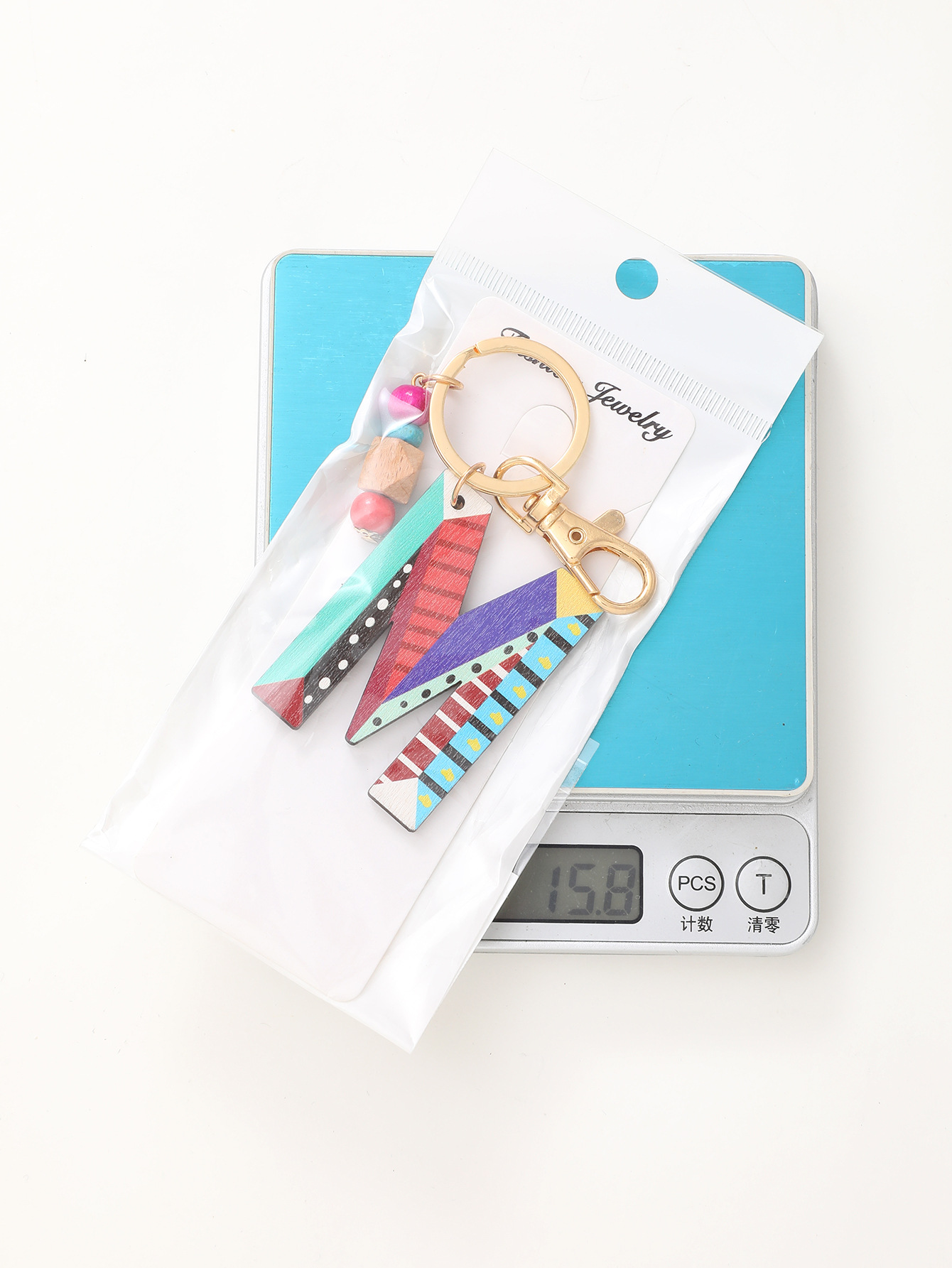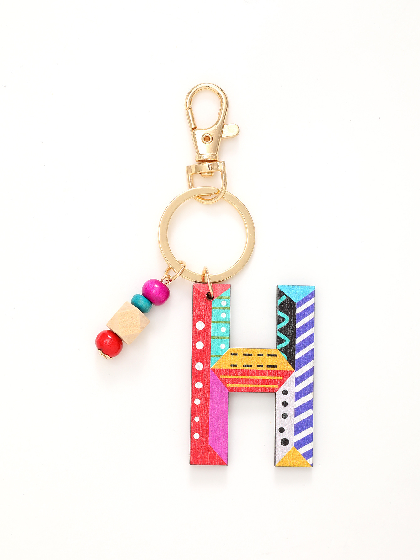 新款度假风彩色木质木珠26字母钥匙扣钥匙链包挂配饰跨境亚马逊