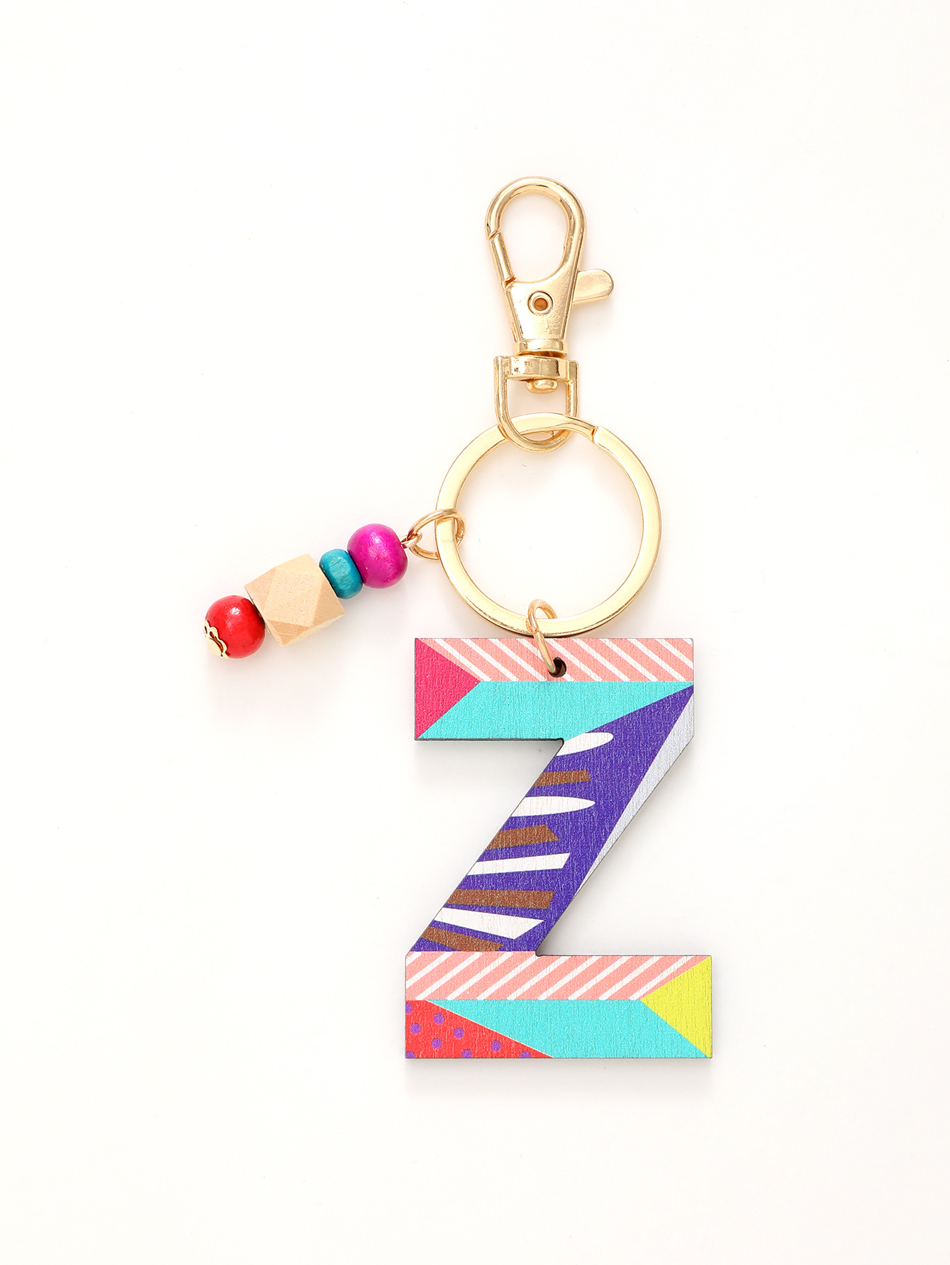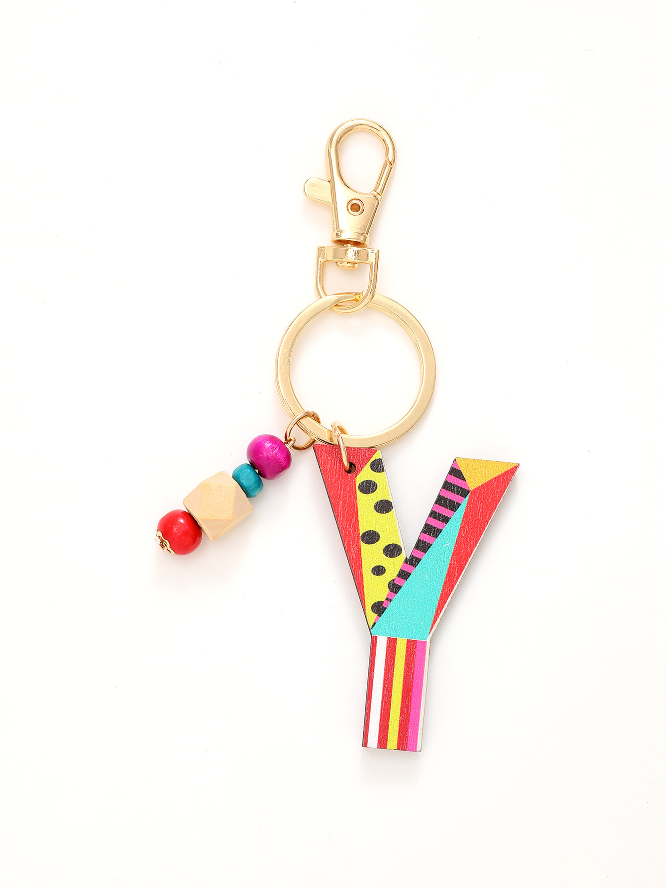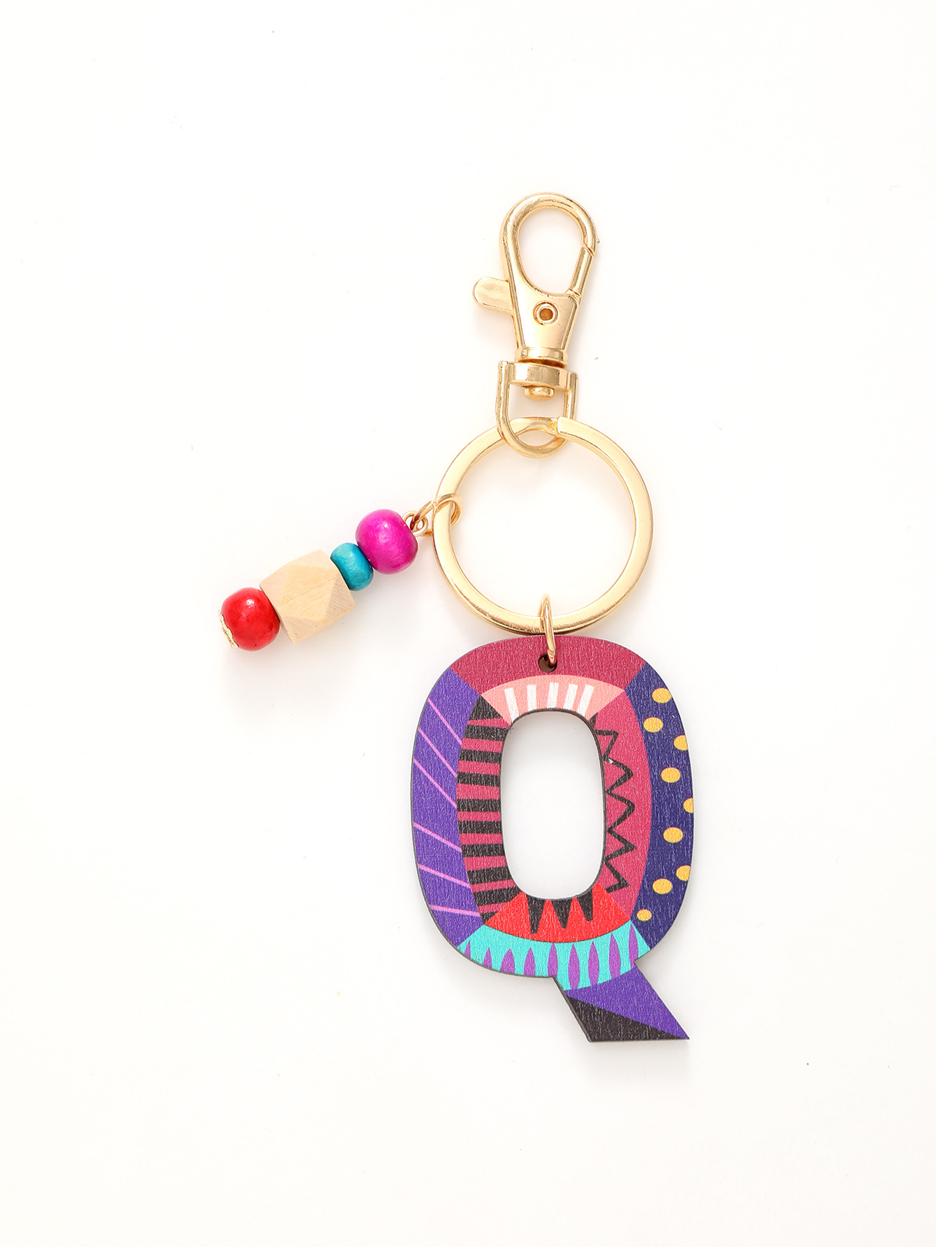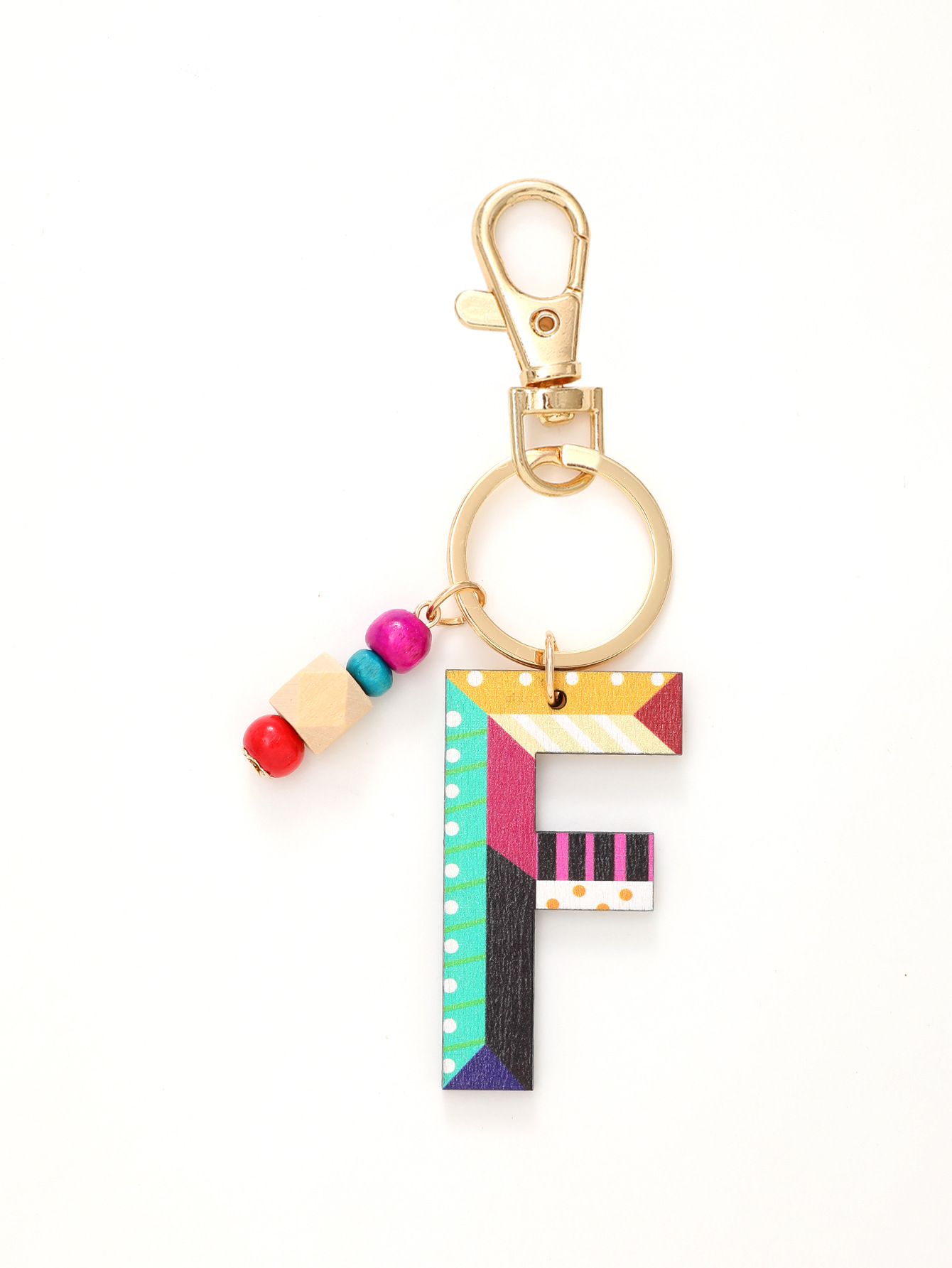 新款度假风彩色木质木珠26字母钥匙扣钥匙链包挂配饰跨境亚马逊