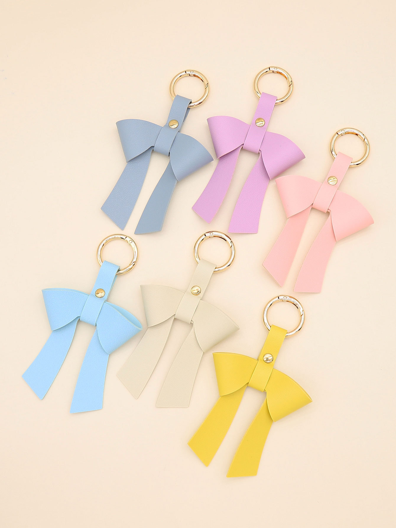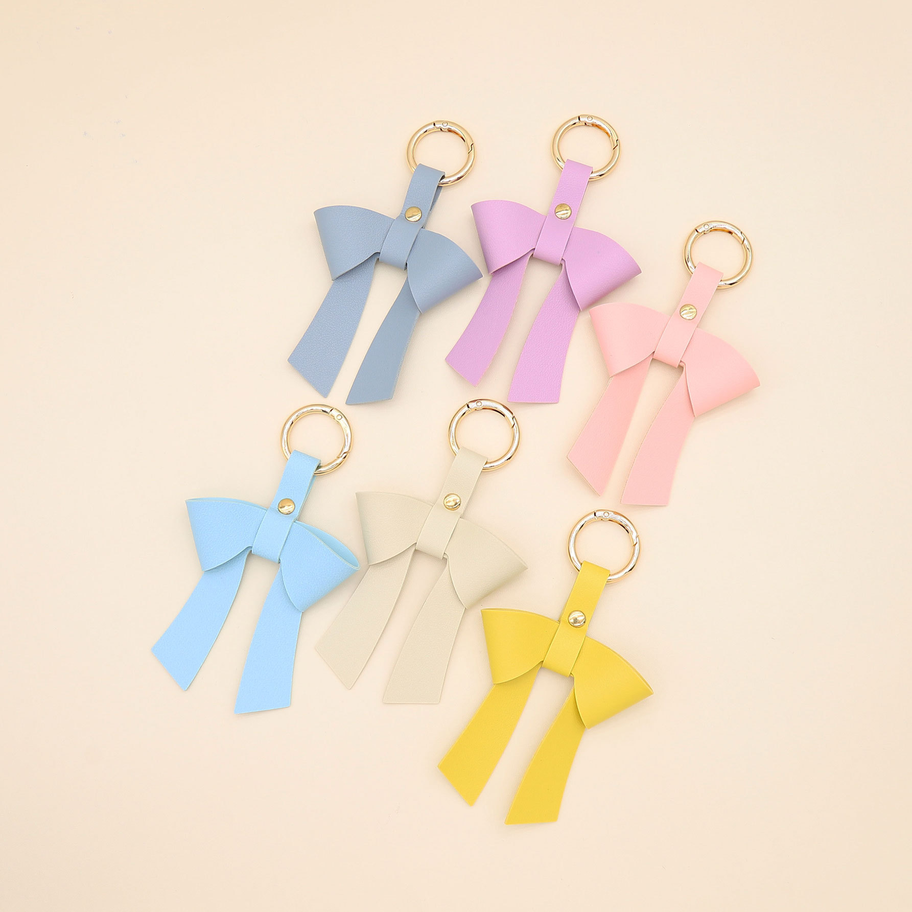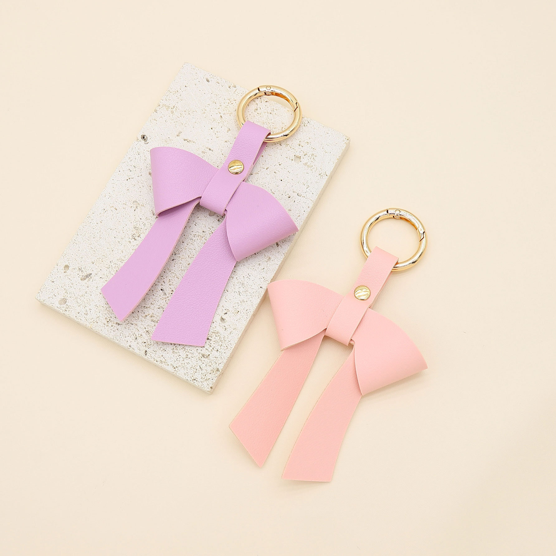 新款多巴胺PU皮革蝴蝶结钥匙扣挂件挂饰汽车钥匙扣配饰跨境亚马逊