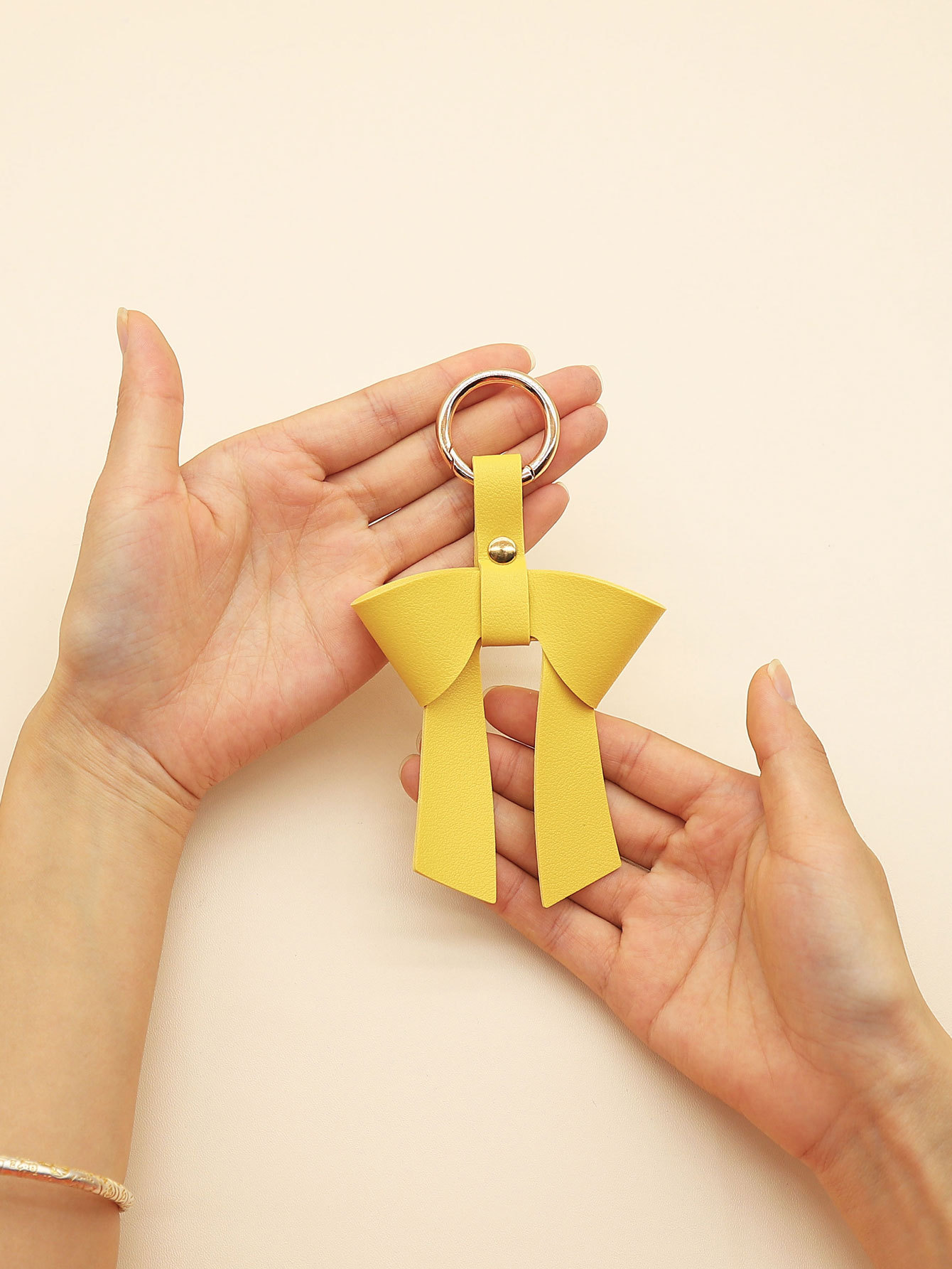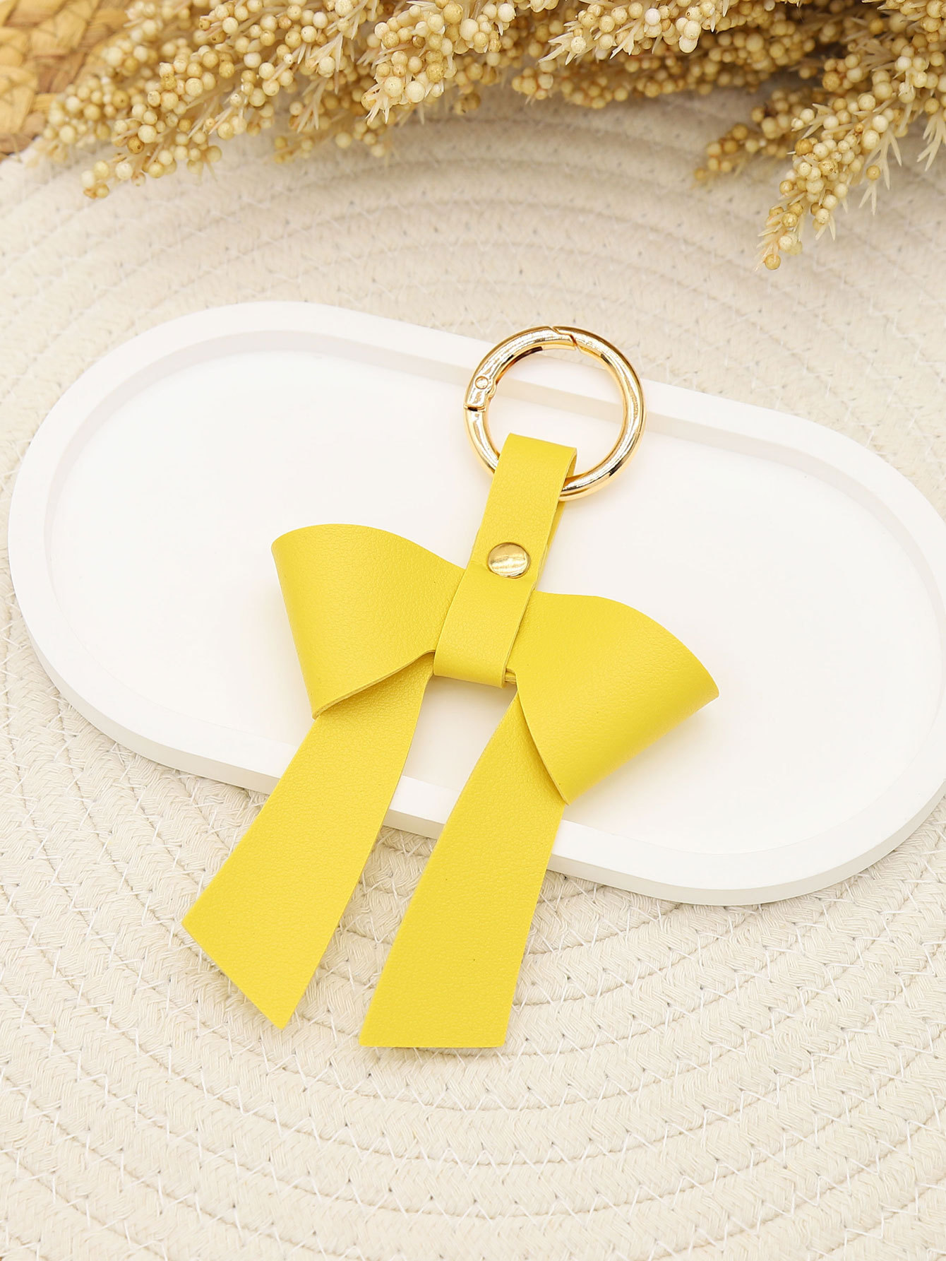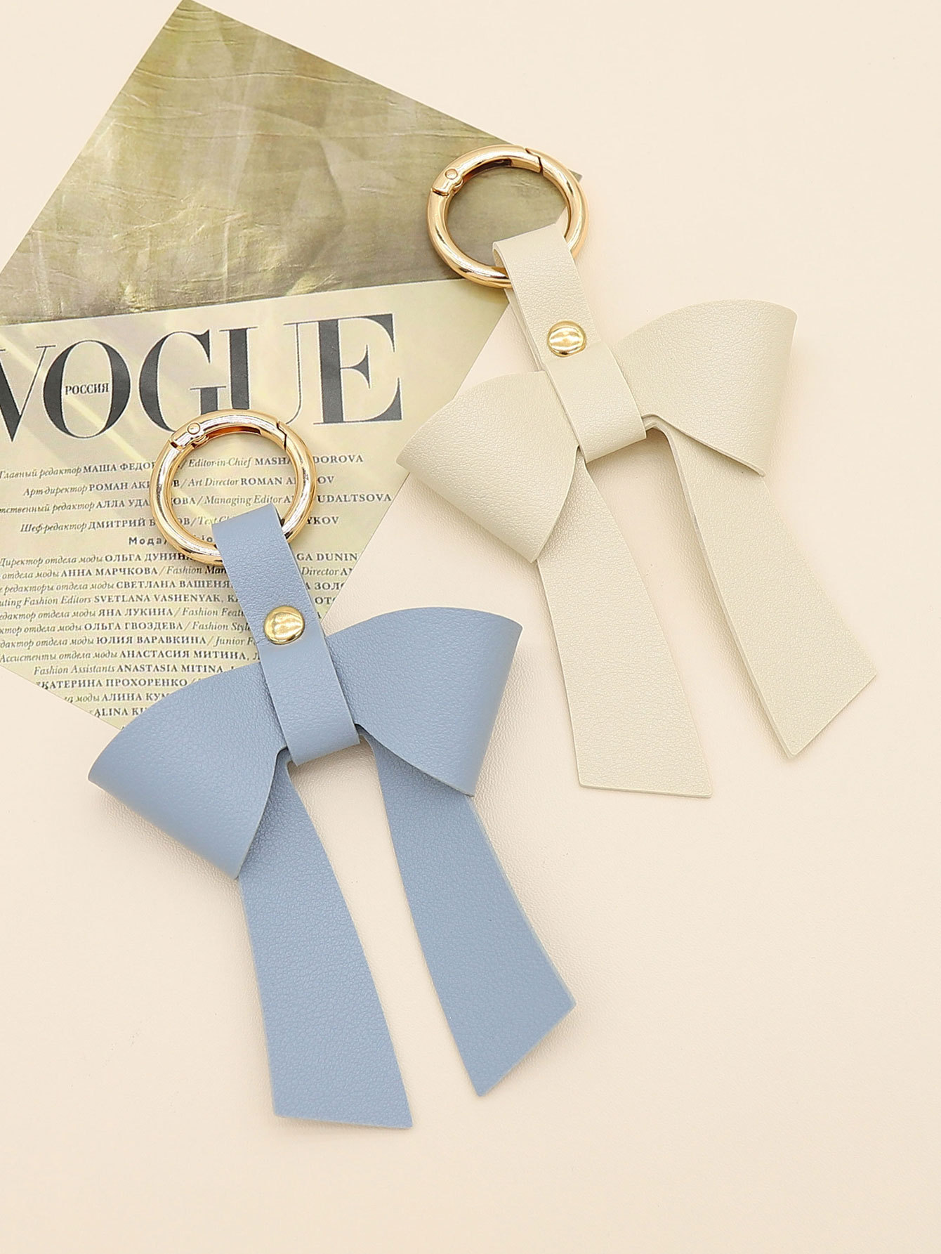 新款多巴胺PU皮革蝴蝶结钥匙扣挂件挂饰汽车钥匙扣配饰跨境亚马逊