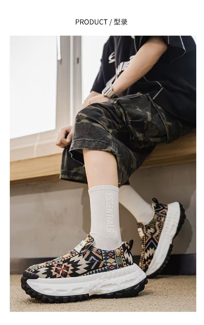 运动鞋春夏厚底增高男鞋懒人一脚蹬休闲运动鞋防滑耐磨透气鞋子