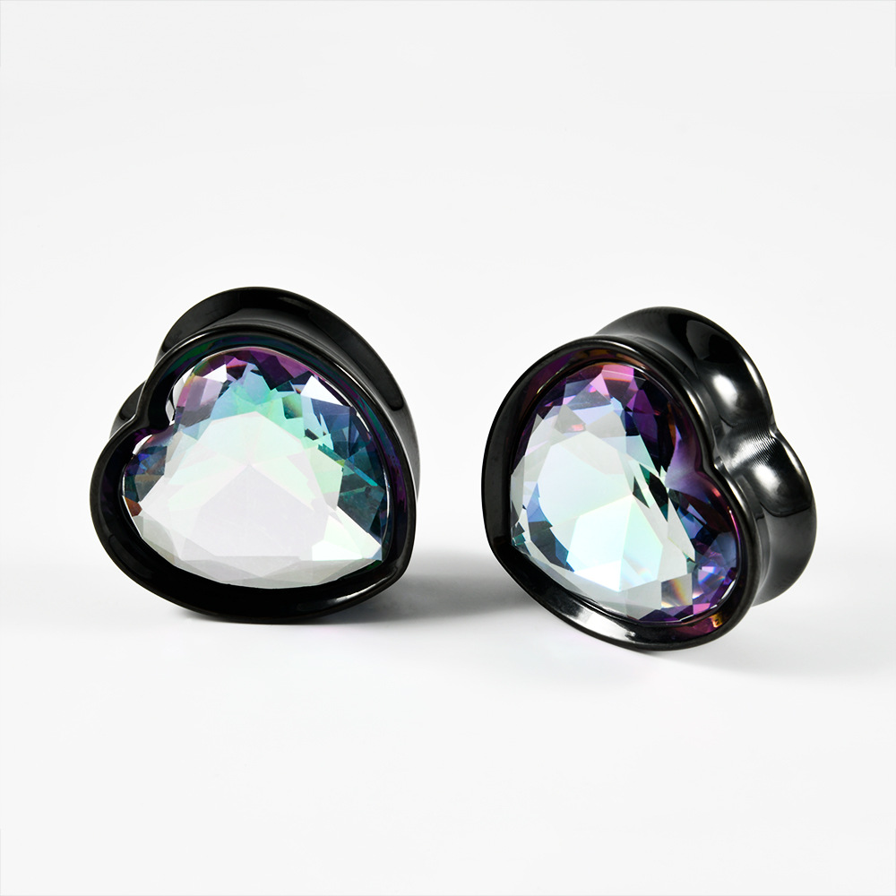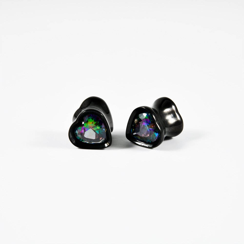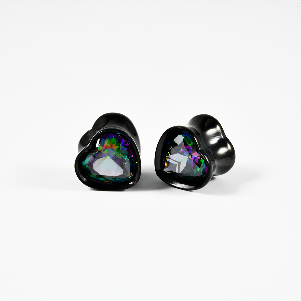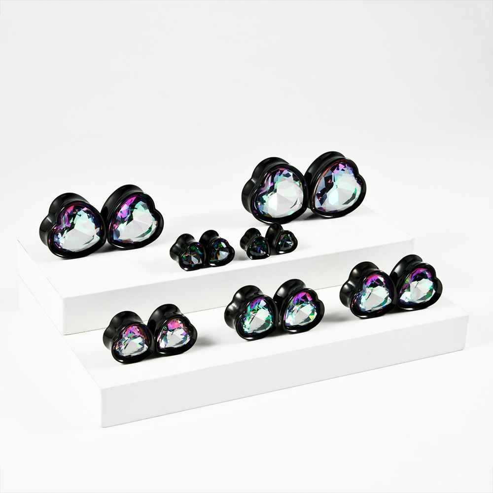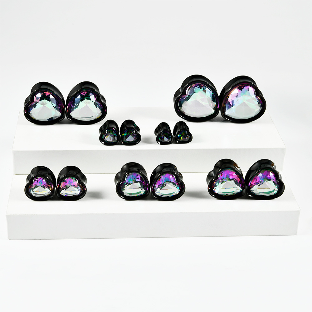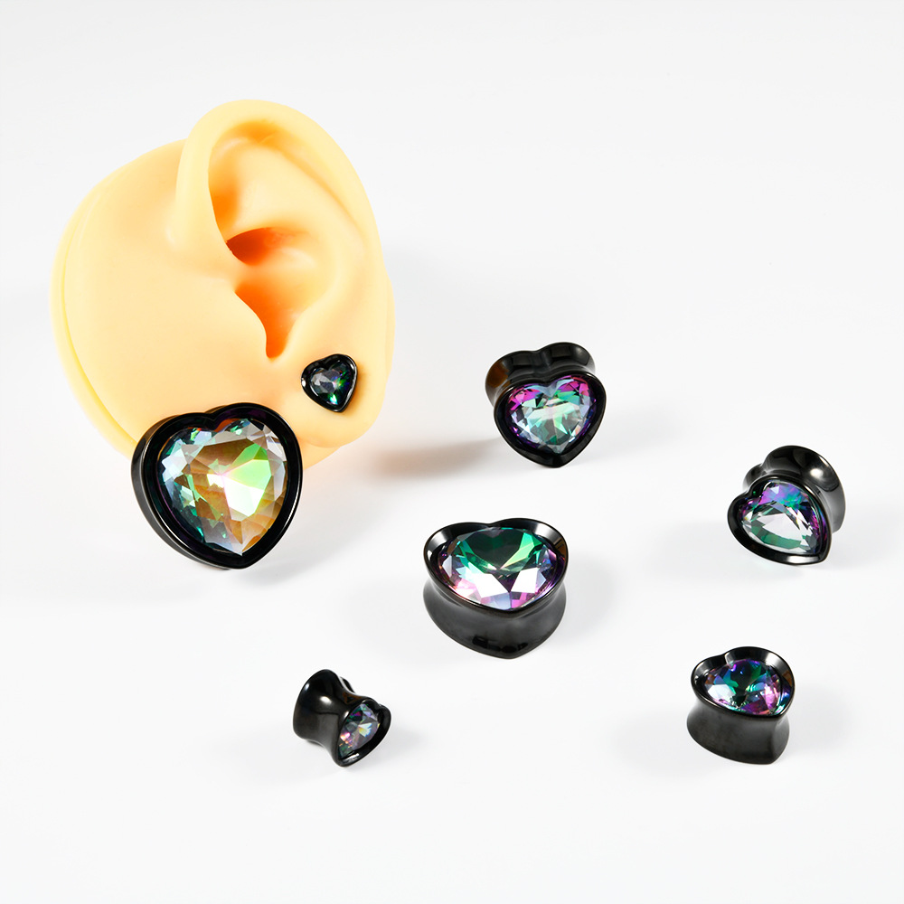跨境不锈钢一体心形喇叭耳廓时尚黑色爱心彩锆耳扩穿刺扩耳器饰品