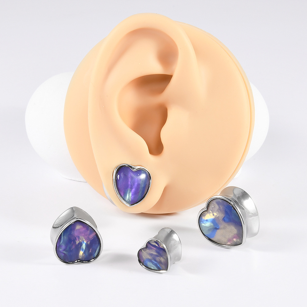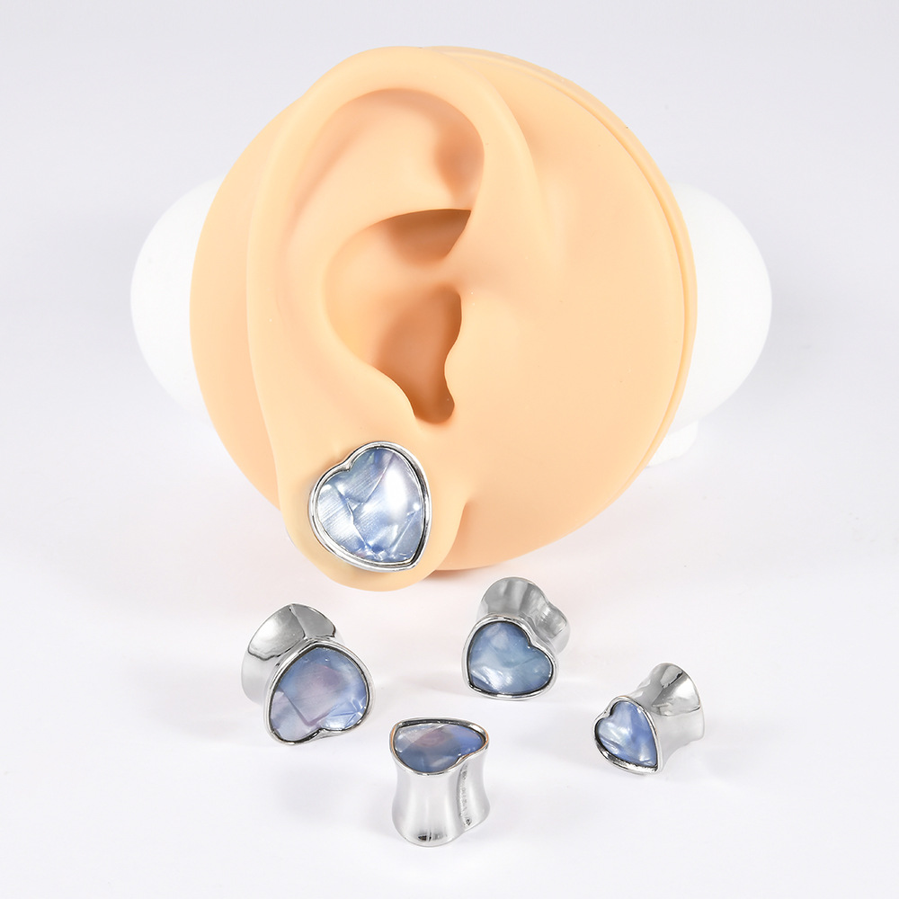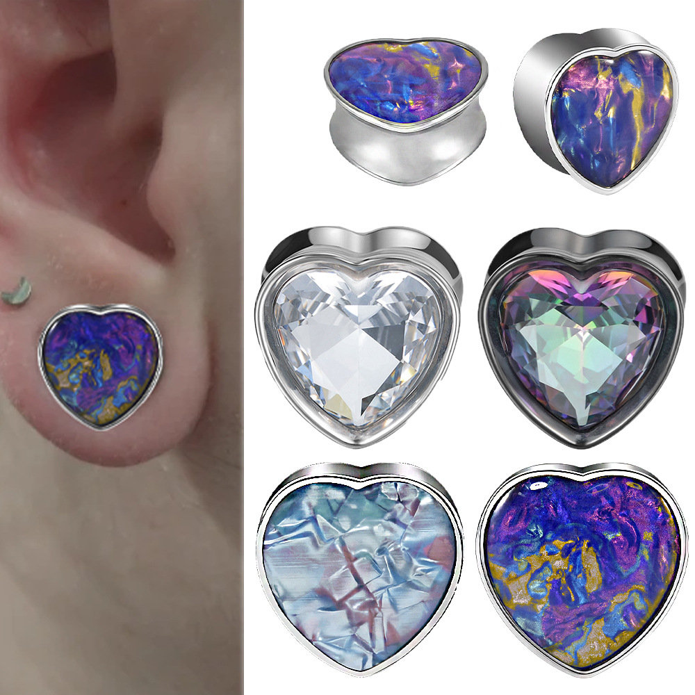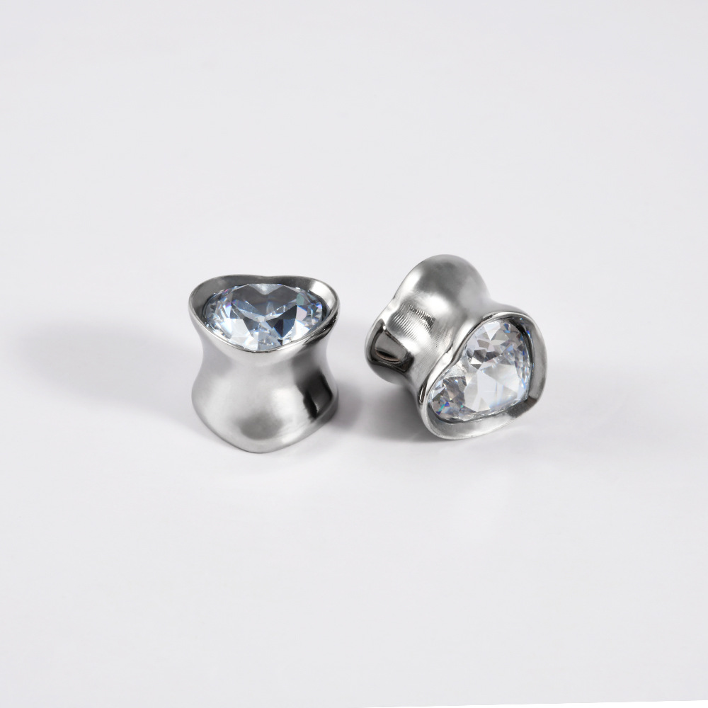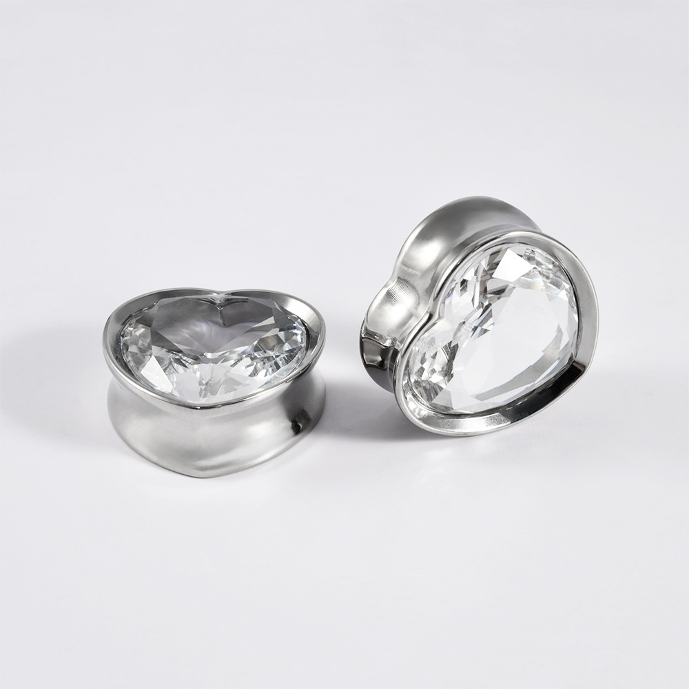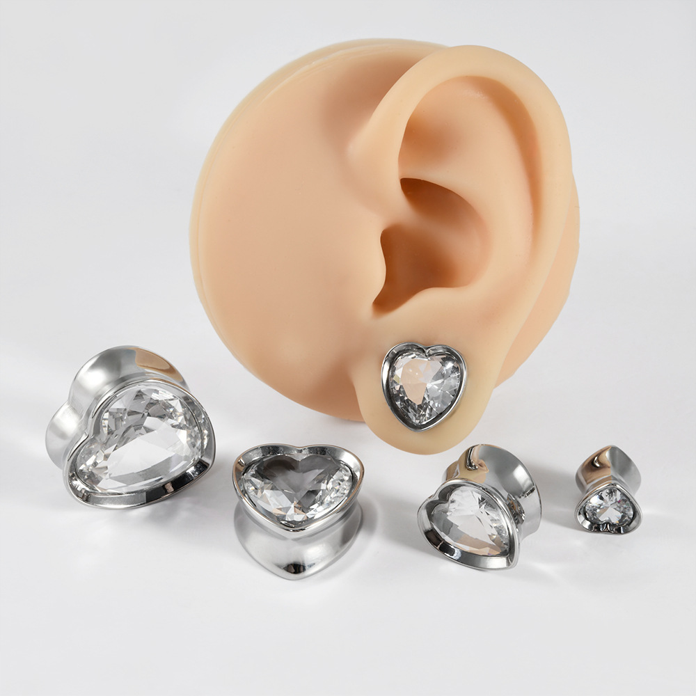 .名称:跨境新款不锈钢一体心形喇叭耳廓时尚爱心锆石耳扩穿刺扩耳器饰品