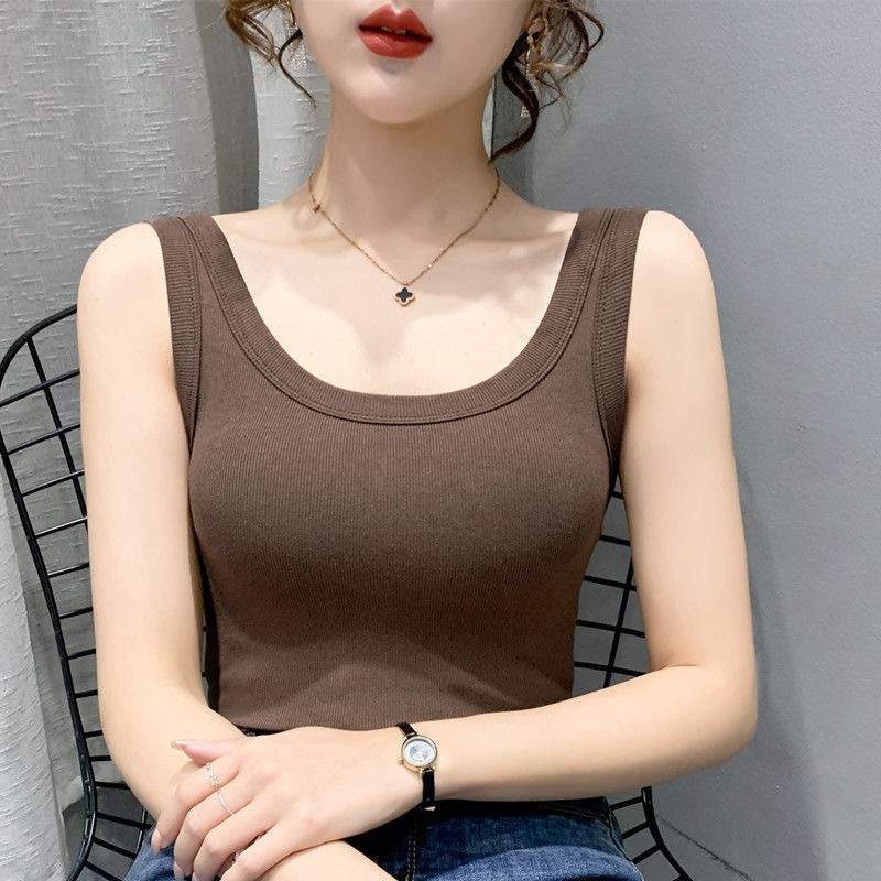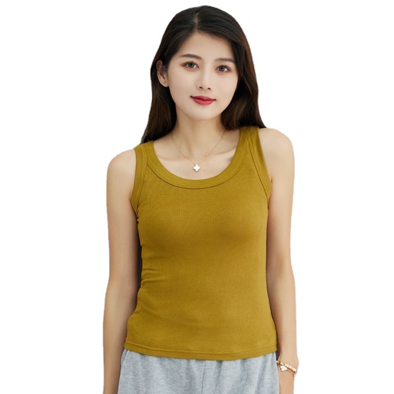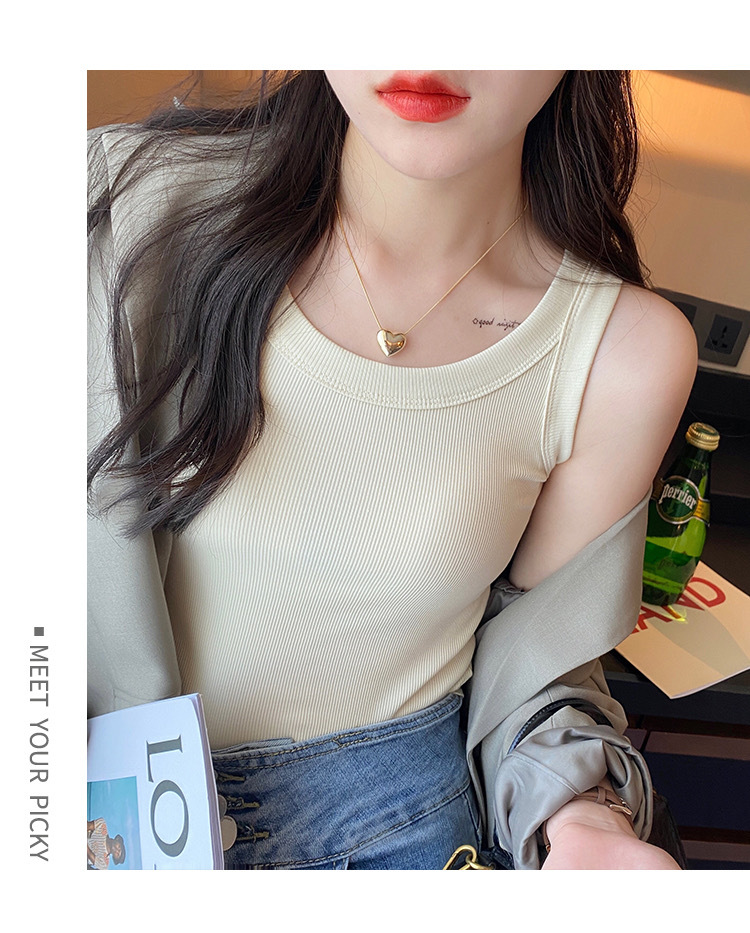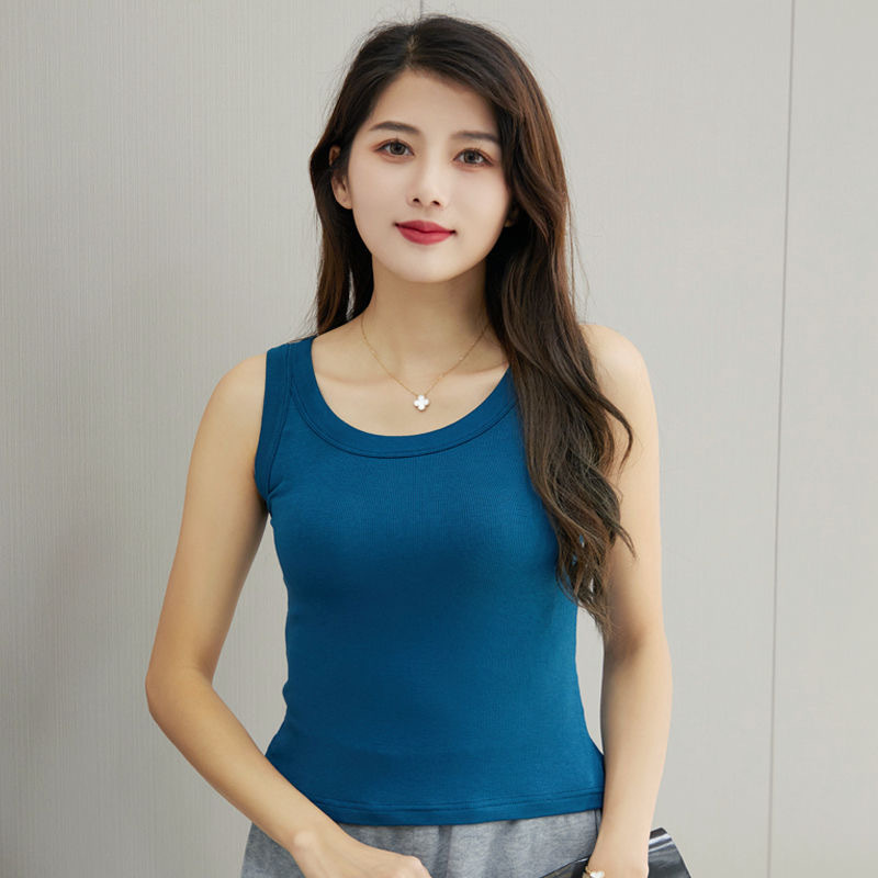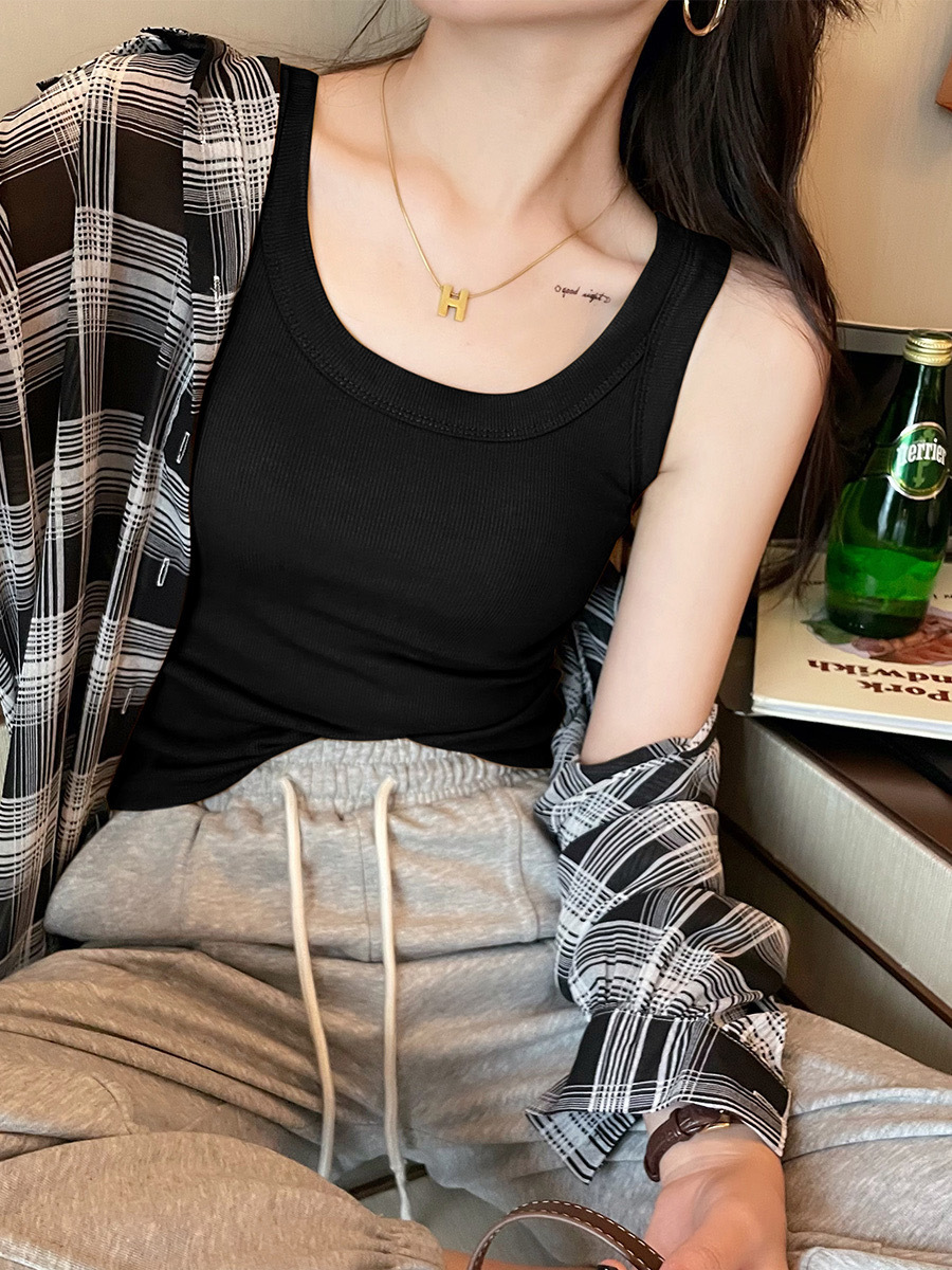 夏季女背心纯色螺纹内穿打底防走光U领弹力无袖吊带上衣一件代发