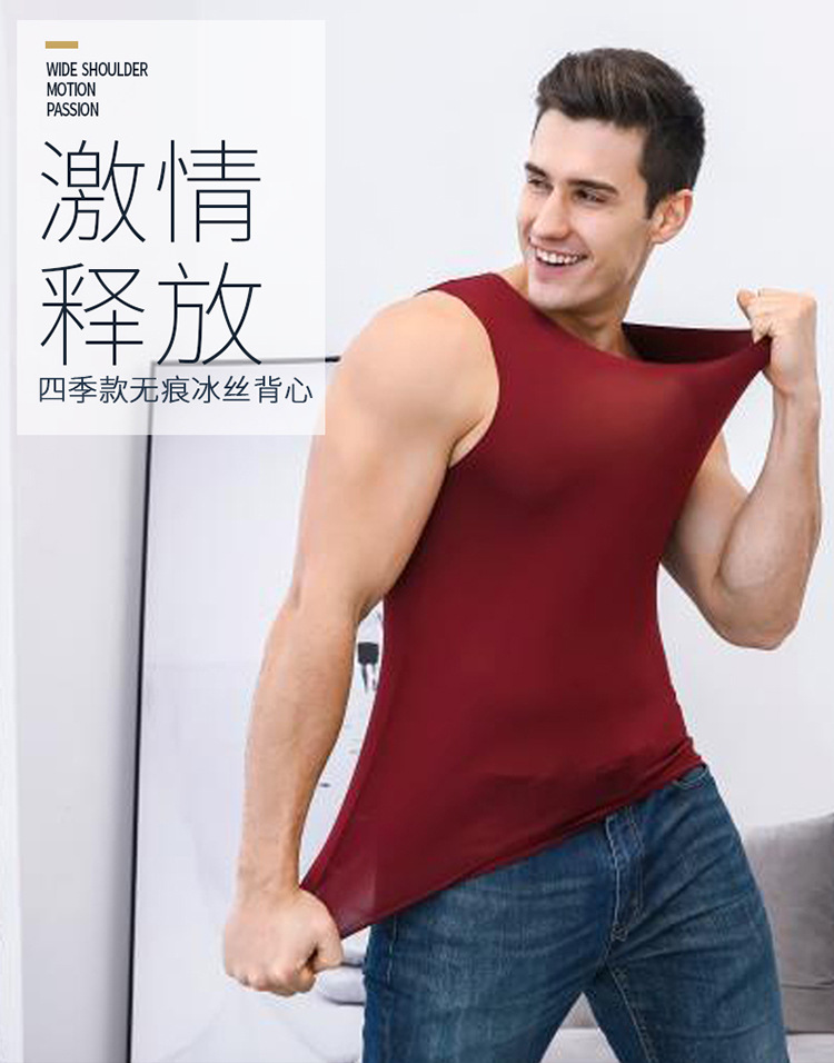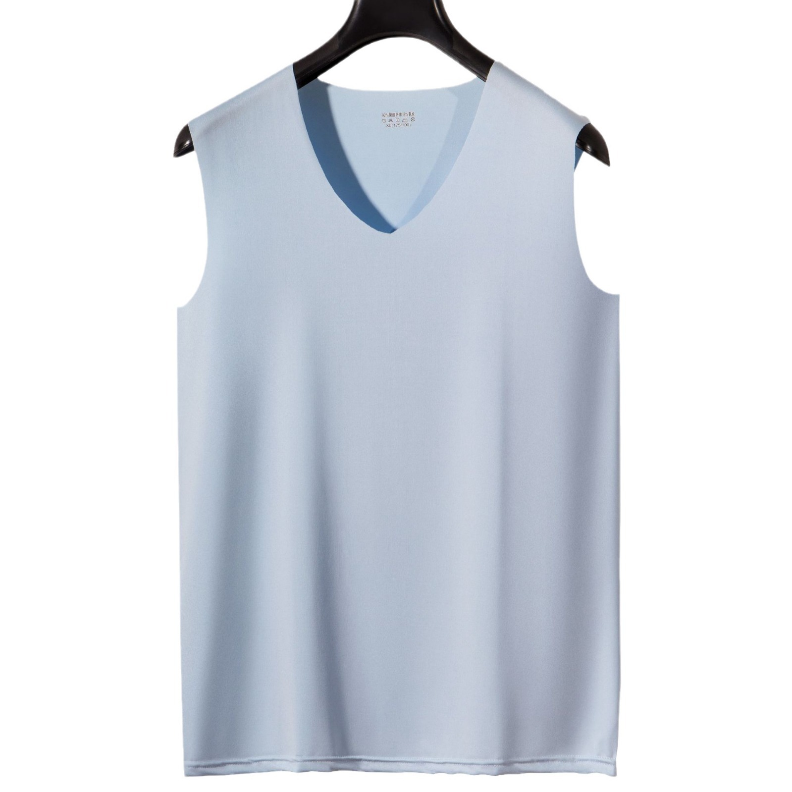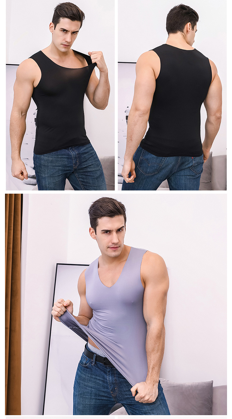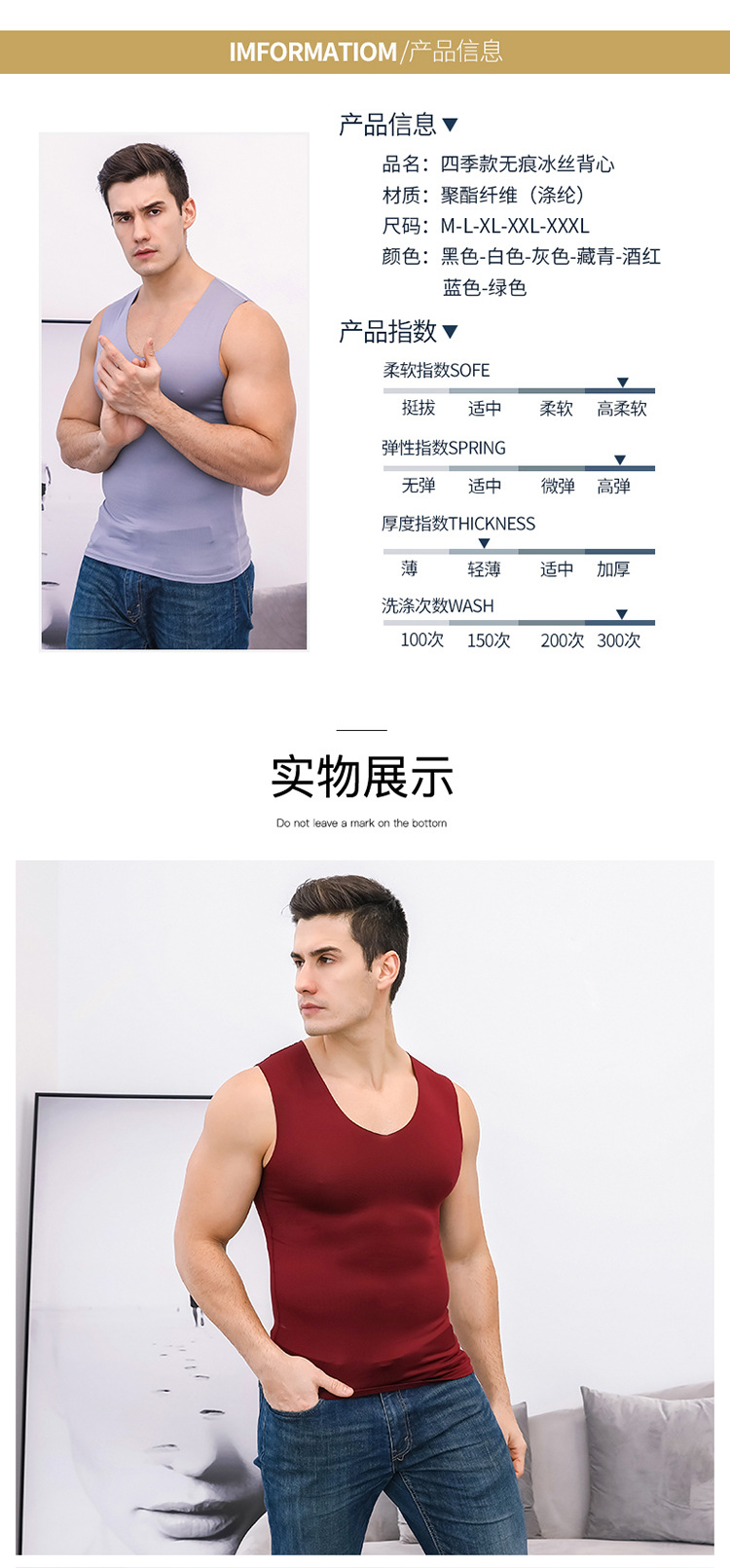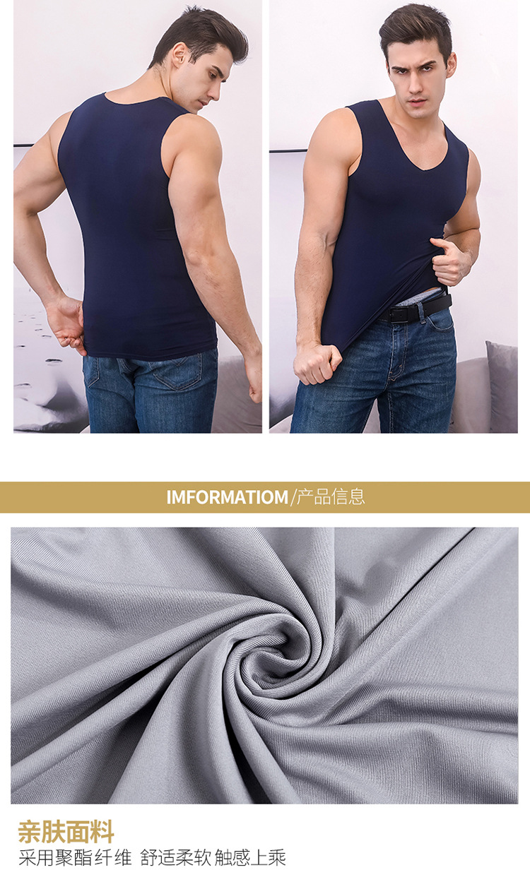 新款速干牛奶丝夏季无痕男士V领背心内穿打底睡衣跑步运动打底衫