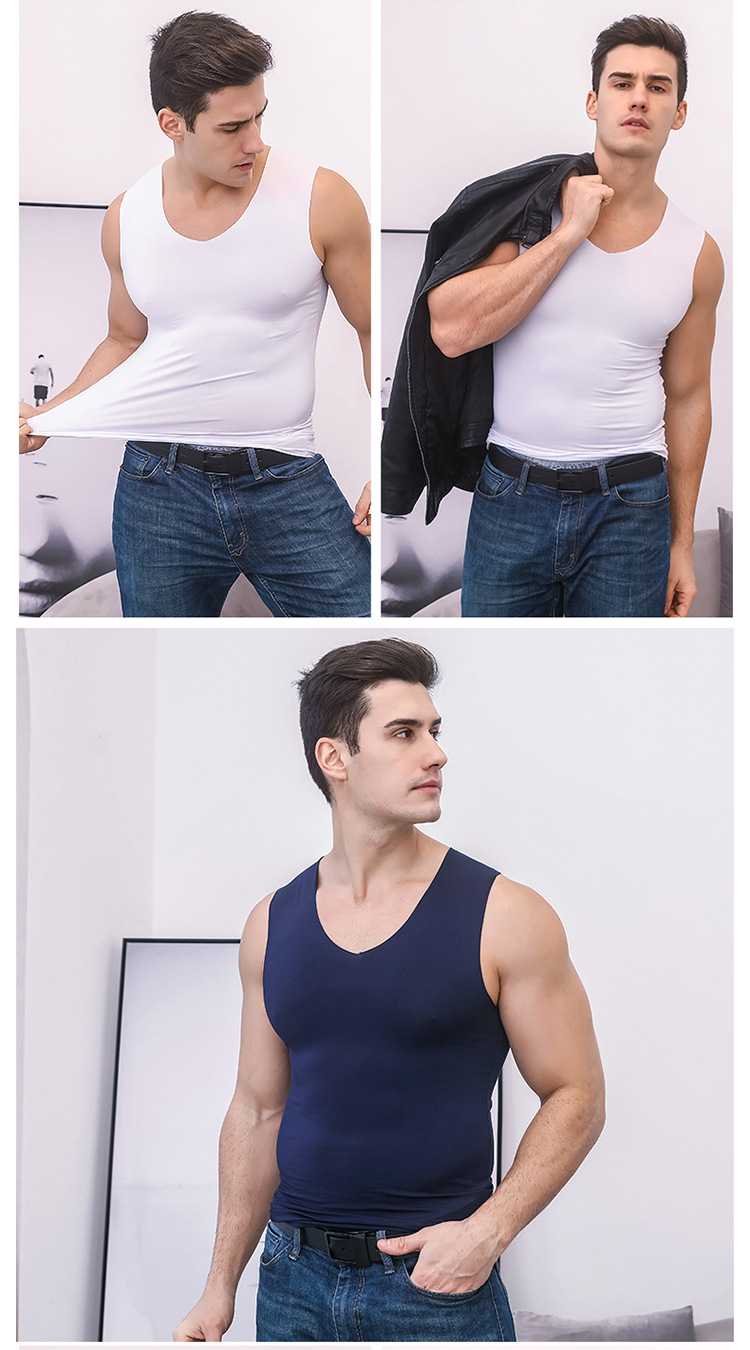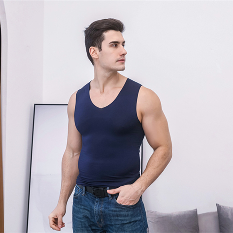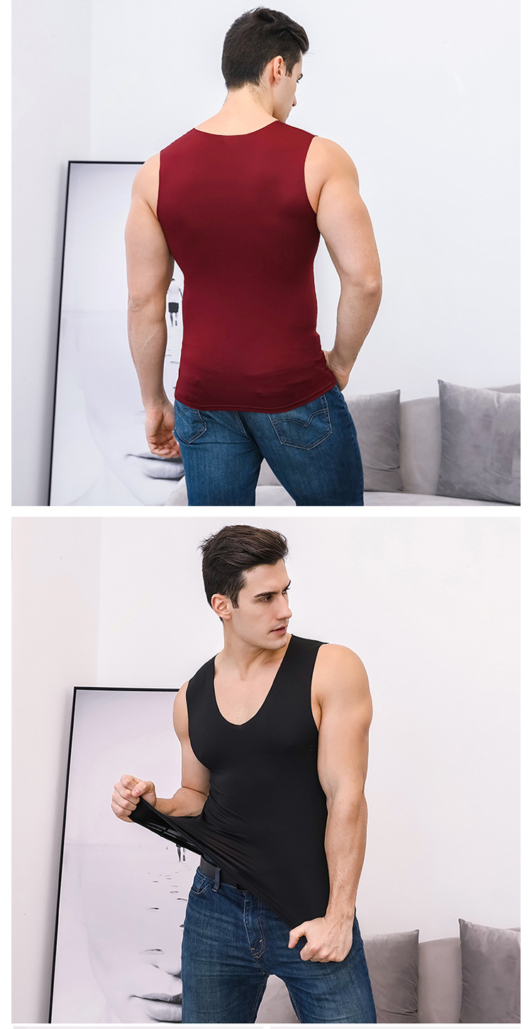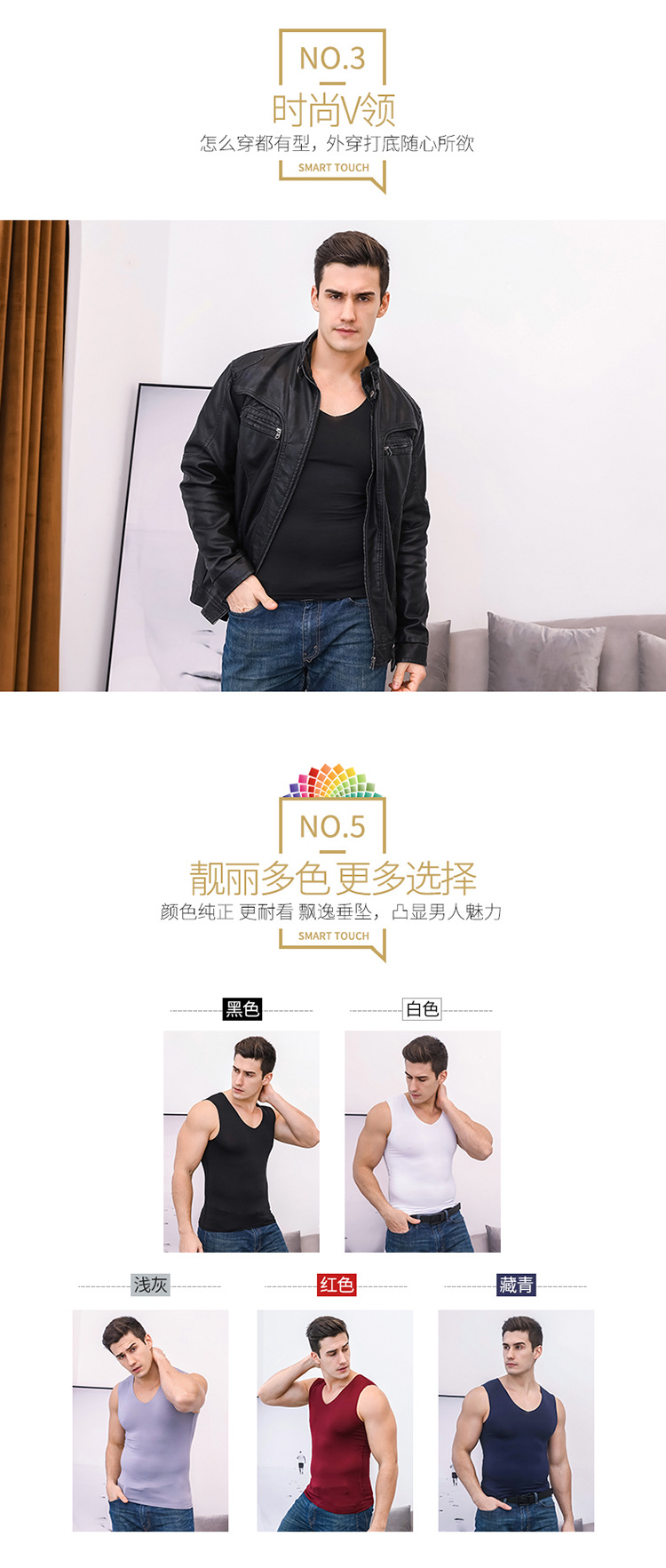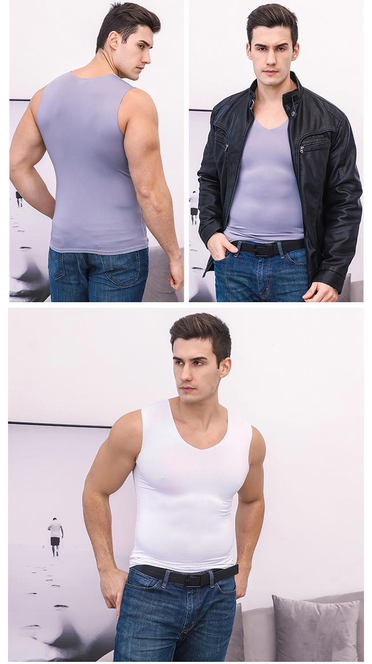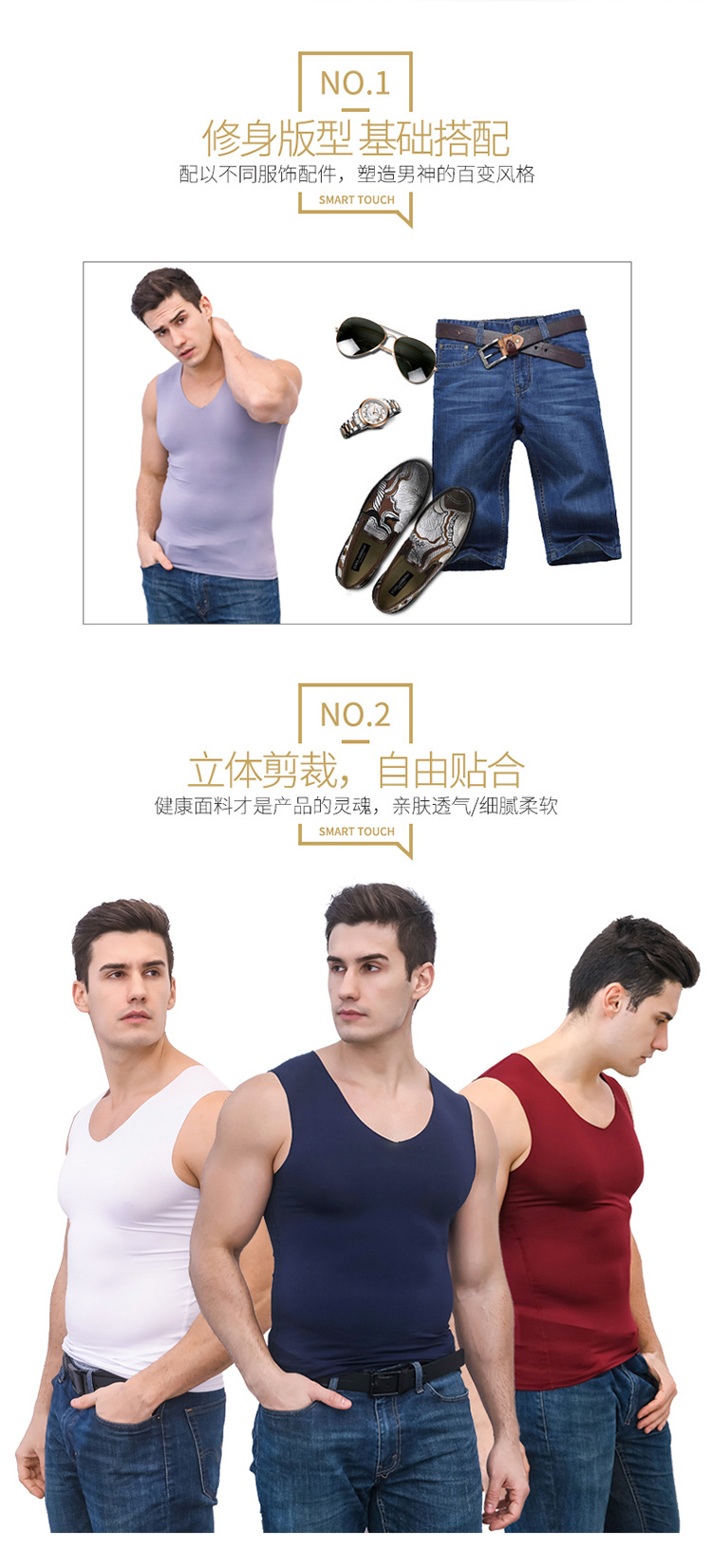 新款速干牛奶丝夏季无痕男士V领背心内穿打底睡衣跑步运动打底衫